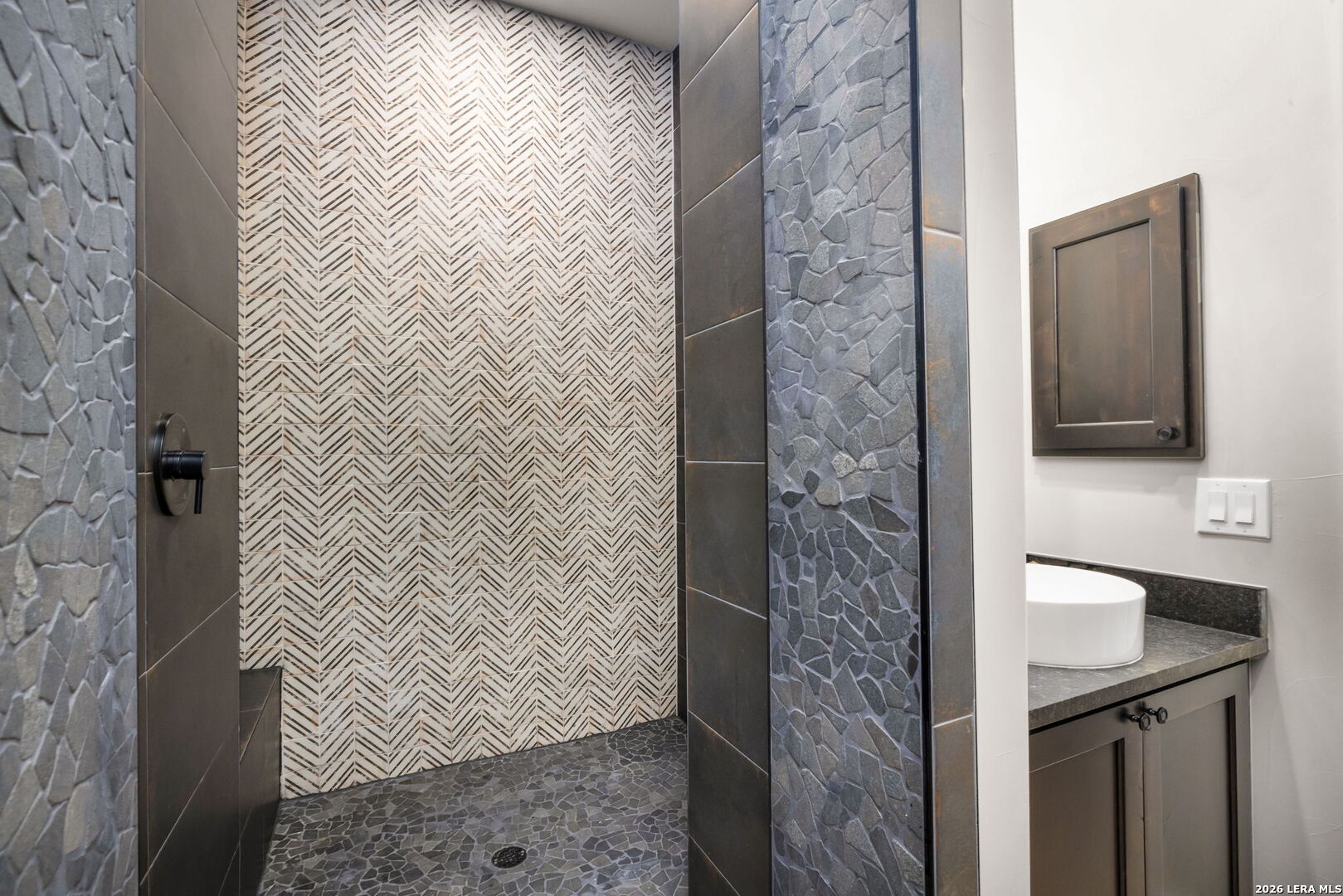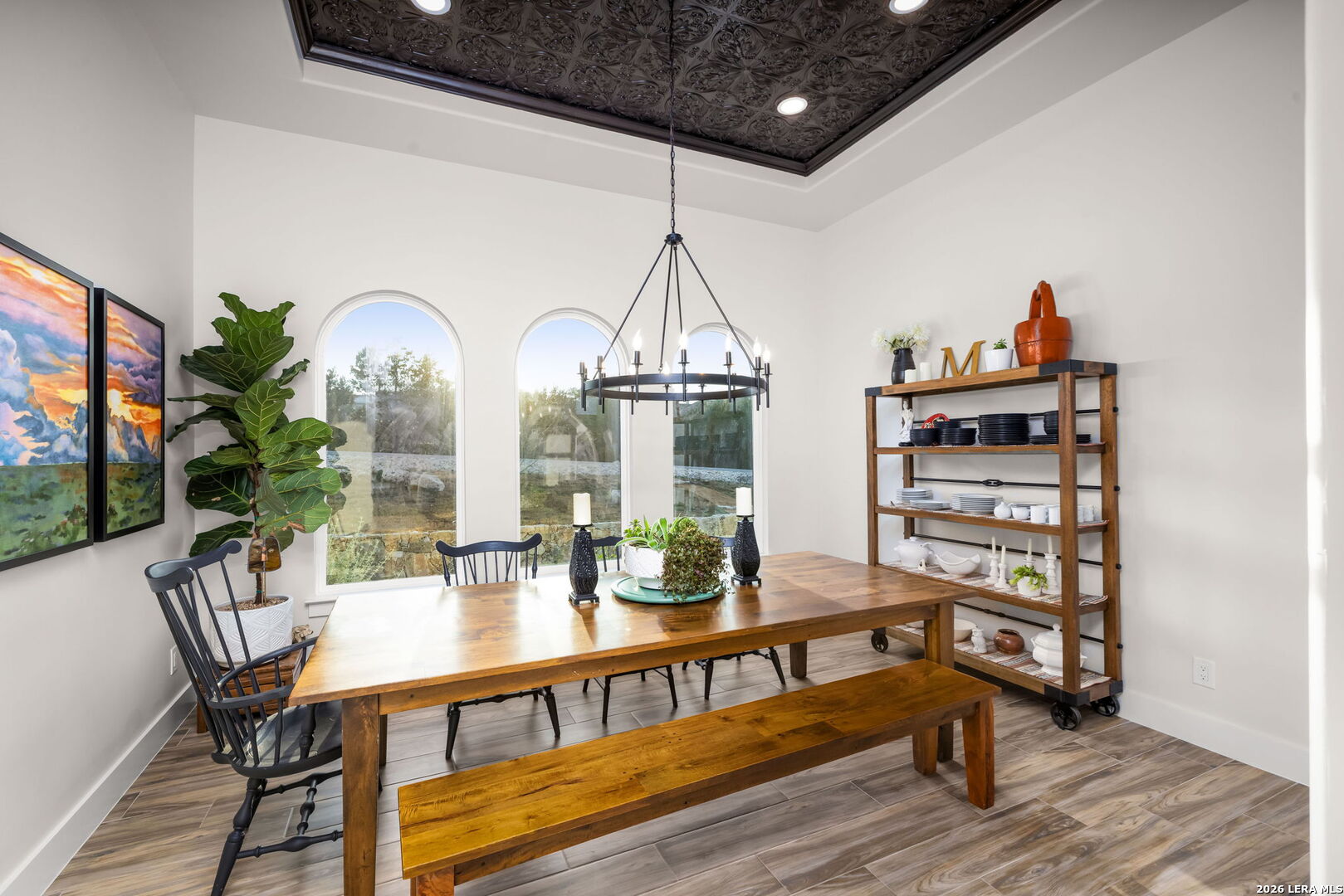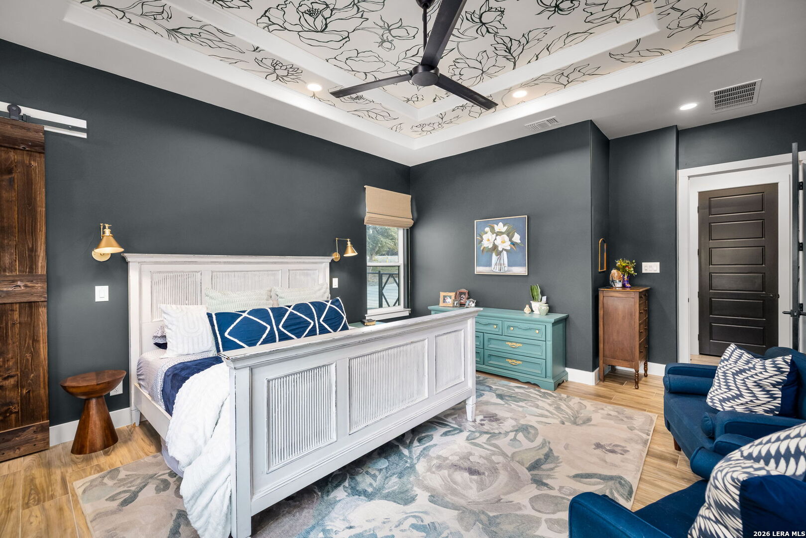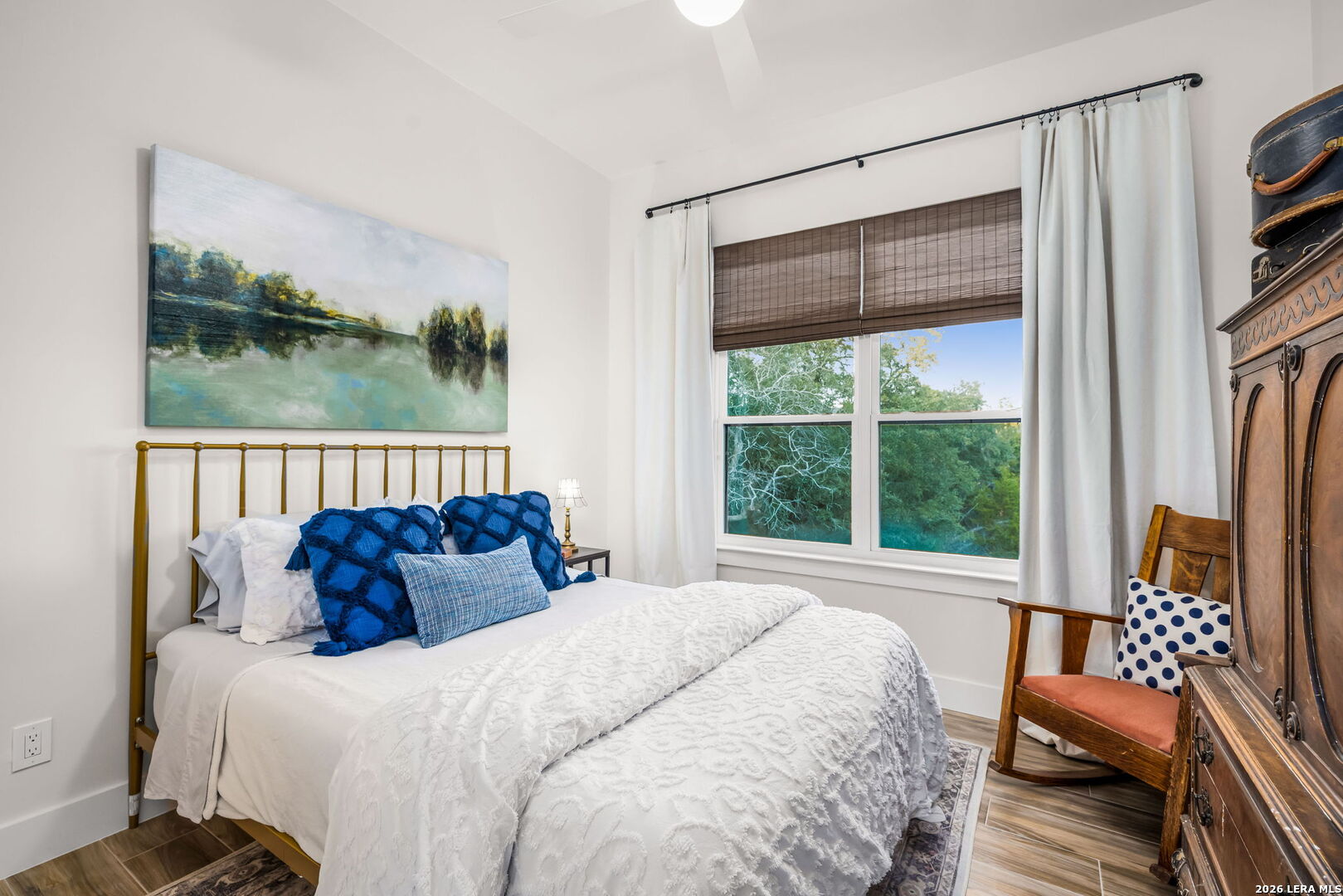 Experience refined Texas Hill Country living in this stunning 2023 KC Custom Home, located in the prestigious Vintage Oaks at the Vineyards. Offering 3,356 square feet, 4 bedrooms, and 3 bathrooms, this one-of-a-kind residence blends artisan craftsmanship with modern luxury on a beautifully landscaped, private lot. From the moment you enter, the home impresses with its Level 5 hand-troweled stucco interior walls, expansive windows, and an open-concept design flooded with natural light. The chef's kitchen is the heart of the home, featuring a GE Cafe gas range with pot filler, two dishwashers, custom cabinetry, stone countertops, a walk-in pantry, breakfast bar, and a charming breakfast nook with built-in banquette seating-perfect for both entertaining and everyday living. The living room showcases dramatic windows on two walls and a gas fireplace, creating a warm yet striking centerpiece for gatherings. The primary suite is a true retreat, highlighted by a hand-painted ceiling mural, spa-style bath with separate soaking tub and walk-in shower, and an expansive walk-in closet. Two thoughtfully designed home offices provide flexibility for work or study, including a hidden office concealed behind a custom bookcase for privacy and security. A media room offers the perfect space for movie nights or game days, while the laundry room with dog wash station and dog door leads directly to a dedicated outdoor dog run for ultimate convenience. Outdoor living is elevated with a large, covered patio surrounded by lush vegetation for exceptional privacy. A spiral staircase leads to a second-story outdoor "nest", ideal for enjoying peaceful mornings and sweeping Hill Country views. Completing the property is an oversized two-car garage plus a dedicated golf cart bay, perfect for taking full advantage of the community. Located within Vintage Oaks, residents enjoy world-class amenities including resort-style pools, clubhouse, fitness center, miles of hiking trails, sports courts, and vibrant social activities-all just minutes from New Braunfels, wineries, dining, and shopping. This extraordinary home offers a rare combination of custom design, luxury finishes, privacy, and Hill Country charm-a true statement property in one of the area's most sought-after communities.