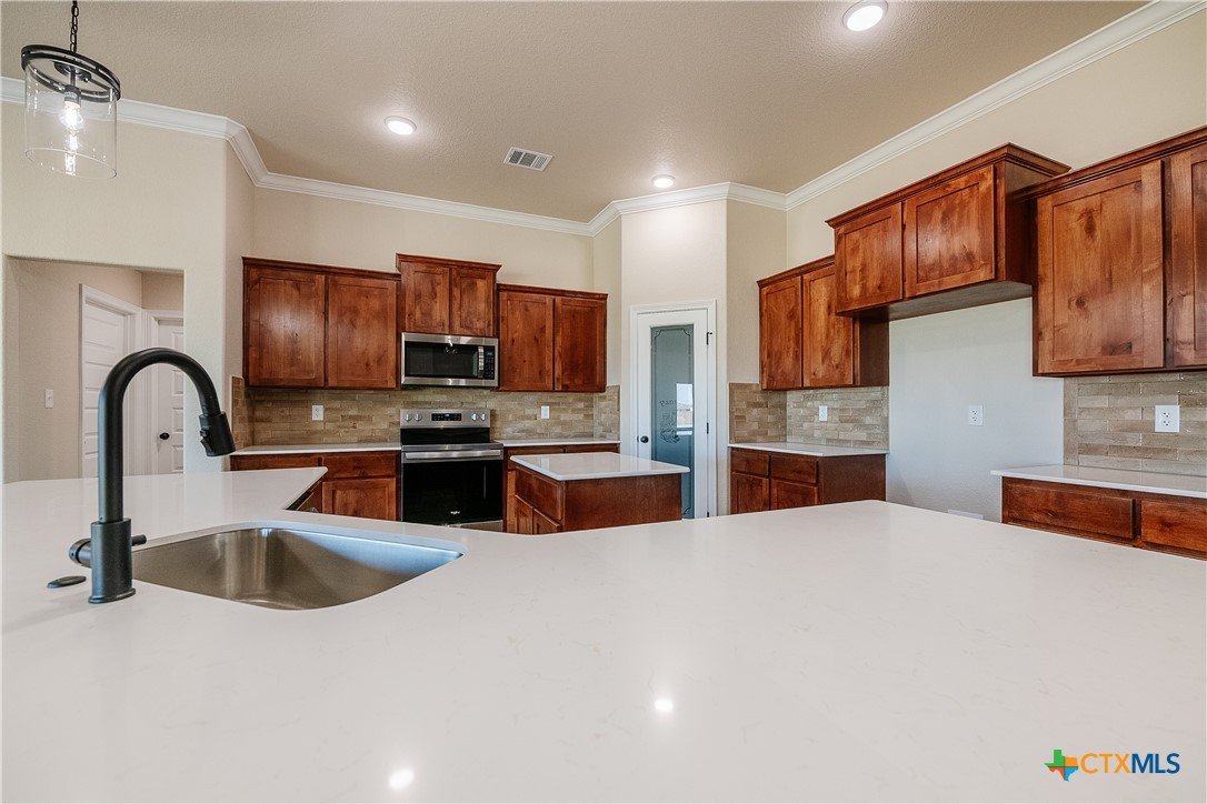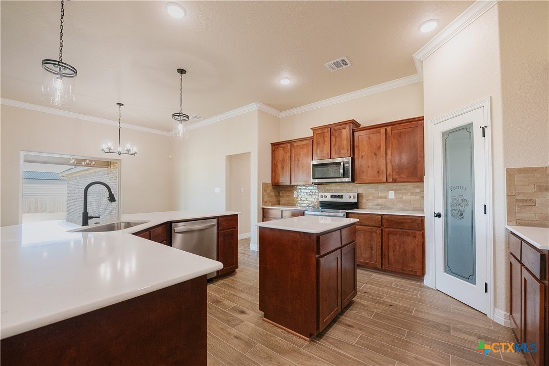 The Cozumel plan positioned on a half acre corner homesite offers a welcoming 2,500 sq ft of thoughtfully designed space. This 4BR/2.5BA home is perfect for families who cherish intimate settings and refined elegance. The inviting living area features a majestic stone fireplace that creates a warm ambiance, while a large picture window offers tranquil views of the fenced backyard. The gourmet kitchen, a centerpiece of the home, is equipped with modern appliances and exquisite cabinetry, providing a perfect space for culinary adventures and gatherings. The dining area opens to a covered patio, ideal for alfresco dining. The owner’s suite serves as a serene retreat with a luxurious bath featuring a garden tub, a separate tile shower, and a generous walk-in closet. Smalley Homes has positioned the dollar/per square foot for this home to offer the most features, quality, functionality for price. Custom-style home in Salado, TX on just over a half acre homesite!!!