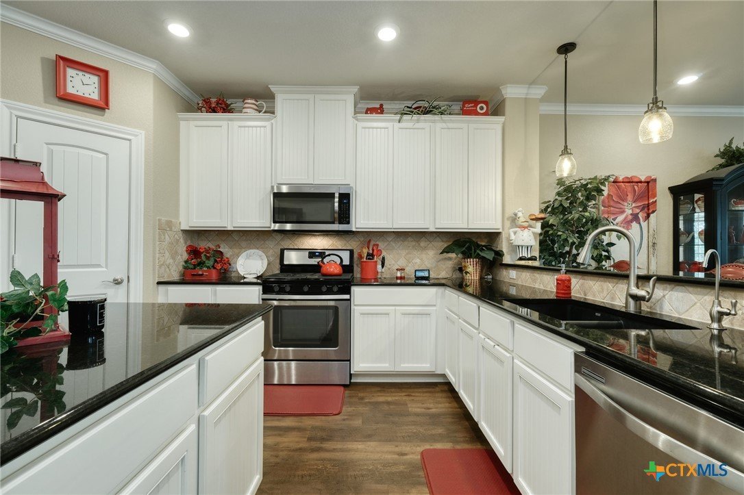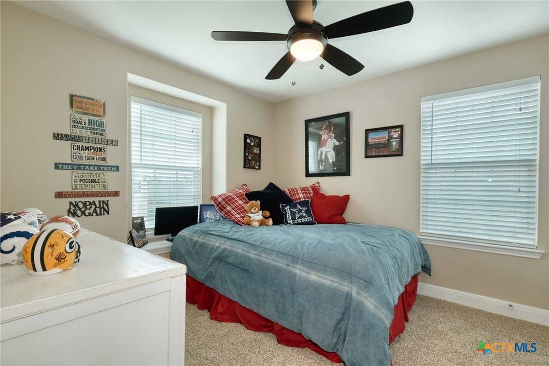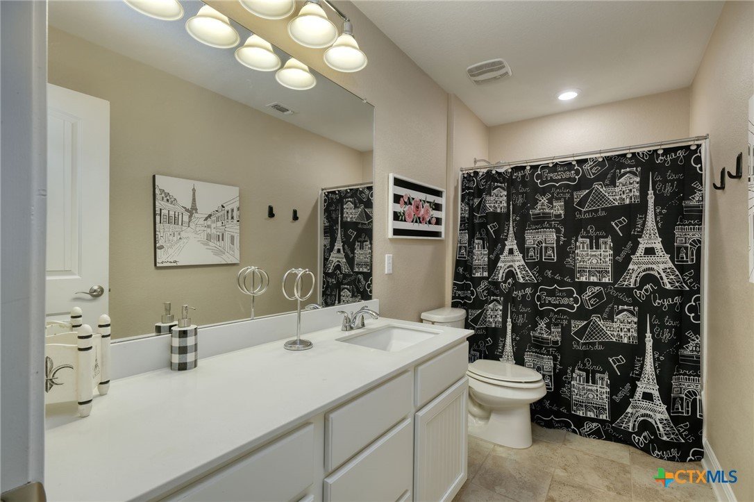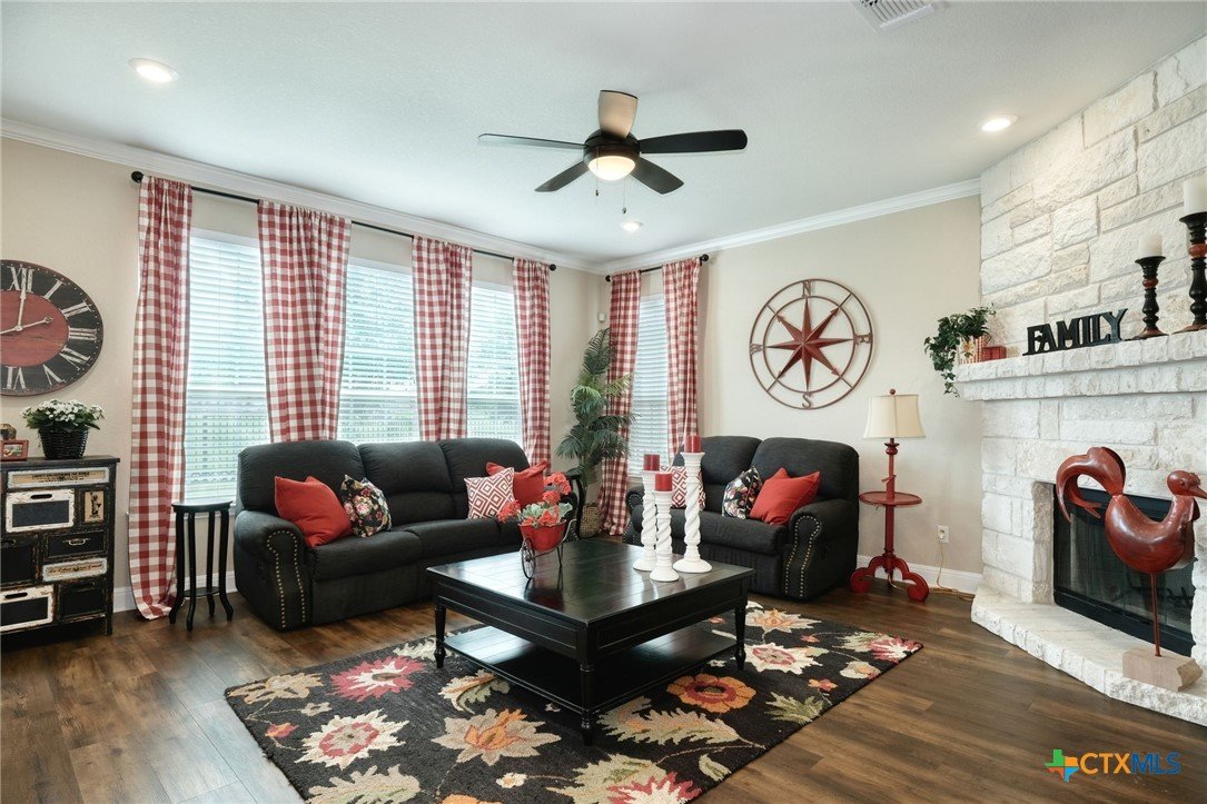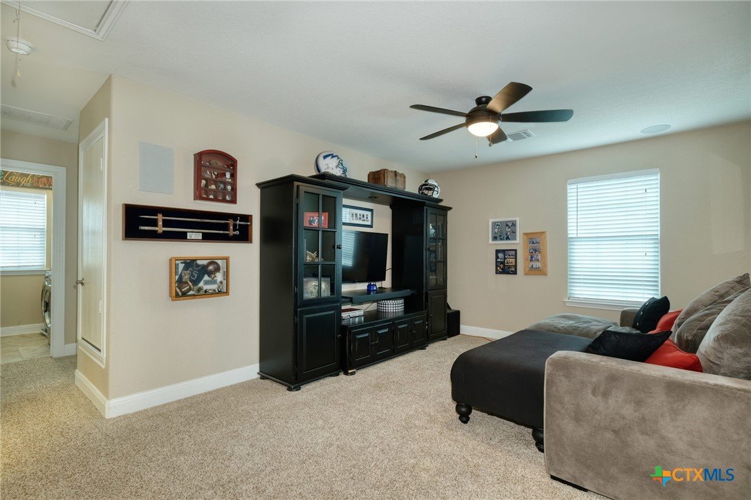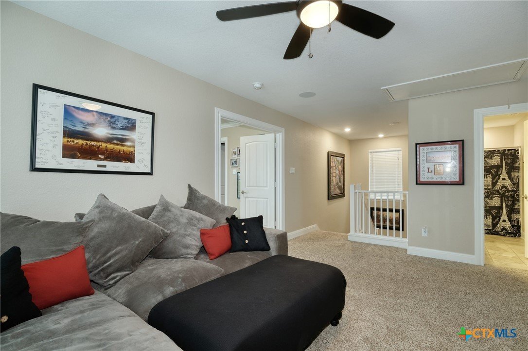 Welcome to your dream home nestled in the heart of the prestigious Star Ranch community! This beautifully maintained 4-bedroom, 3-bathroom home offers 2,577 sqft of thoughtfully designed living space, sitting directly on the scenic Star Ranch Golf Course with unbeatable views. Enjoy the perfect blend of comfort and functionality with an open-concept floor plan ideal for entertaining and everyday living. The spacious living room features a striking natural gas stone fireplace, creating a warm and inviting atmosphere. The kitchen is a chef’s delight, boasting gleaming granite countertops, stainless steel appliances, white cabinetry, and a large breakfast bar for casual dining. The upstairs master suite is a private retreat with elegant French door entry, a generous walk-in closet, and a luxurious en-suite bath complete with a double vanity, garden tub, and separate shower. Also upstairs, you'll find a versatile game room, two additional bedrooms, a full bath, and a convenient laundry room. The fourth bedroom and third full bath are located downstairs, offering a perfect setup for a guest suite or in-law plan. A two-car garage provides ample storage and parking. Step outside and take in the breathtaking golf course views from your backyard—an ideal spot for relaxing or hosting friends and family. Located just 2 minutes from H-E-B, with quick access to the 130 Toll Road for easy commutes to the airport, downtown Austin, and major tech campuses. Plus, you're only 8 minutes from the Stone Hill Shopping Center for all your retail and dining needs. Don’t miss this rare opportunity to own a slice of golf course paradise in one of the area's most desirable neighborhoods!