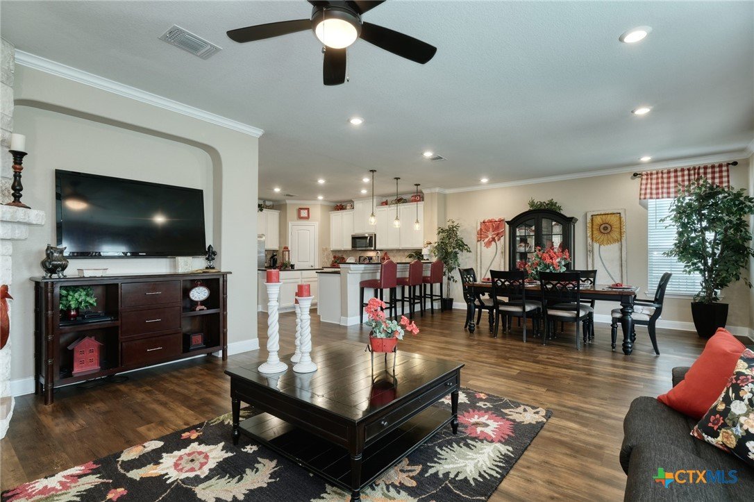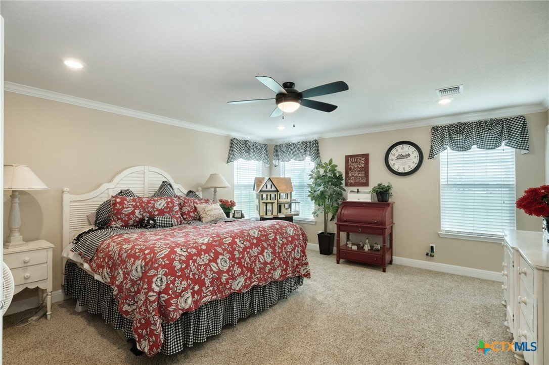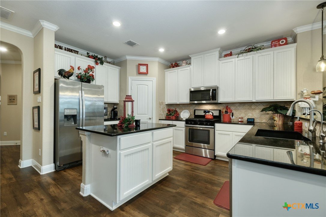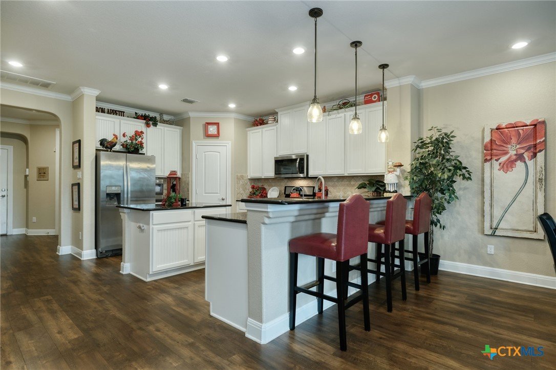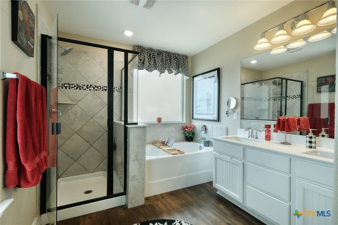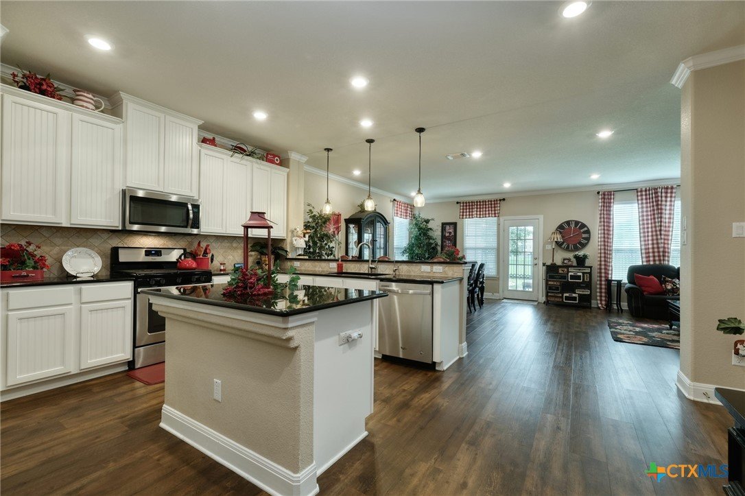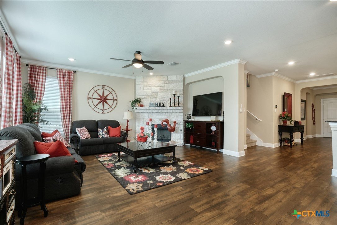 Welcome to your dream home nestled in the heart of the prestigious Star Ranch community! This beautifully maintained 4-bedroom, 3-bathroom home offers 2,577 sqft of thoughtfully designed living space, sitting directly on the scenic Star Ranch Golf Course with unbeatable views. Enjoy the perfect blend of comfort and functionality with an open-concept floor plan ideal for entertaining and everyday living. The spacious living room features a striking natural gas stone fireplace, creating a warm and inviting atmosphere. The kitchen is a chef’s delight, boasting gleaming granite countertops, stainless steel appliances, white cabinetry, and a large breakfast bar for casual dining. The upstairs master suite is a private retreat with elegant French door entry, a generous walk-in closet, and a luxurious en-suite bath complete with a double vanity, garden tub, and separate shower. Also upstairs, you'll find a versatile game room, two additional bedrooms, a full bath, and a convenient laundry room. The fourth bedroom and third full bath are located downstairs, offering a perfect setup for a guest suite or in-law plan. A two-car garage provides ample storage and parking. Step outside and take in the breathtaking golf course views from your backyard—an ideal spot for relaxing or hosting friends and family. Located just 2 minutes from H-E-B, with quick access to the 130 Toll Road for easy commutes to the airport, downtown Austin, and major tech campuses. Plus, you're only 8 minutes from the Stone Hill Shopping Center for all your retail and dining needs. Don’t miss this rare opportunity to own a slice of golf course paradise in one of the area's most desirable neighborhoods!
