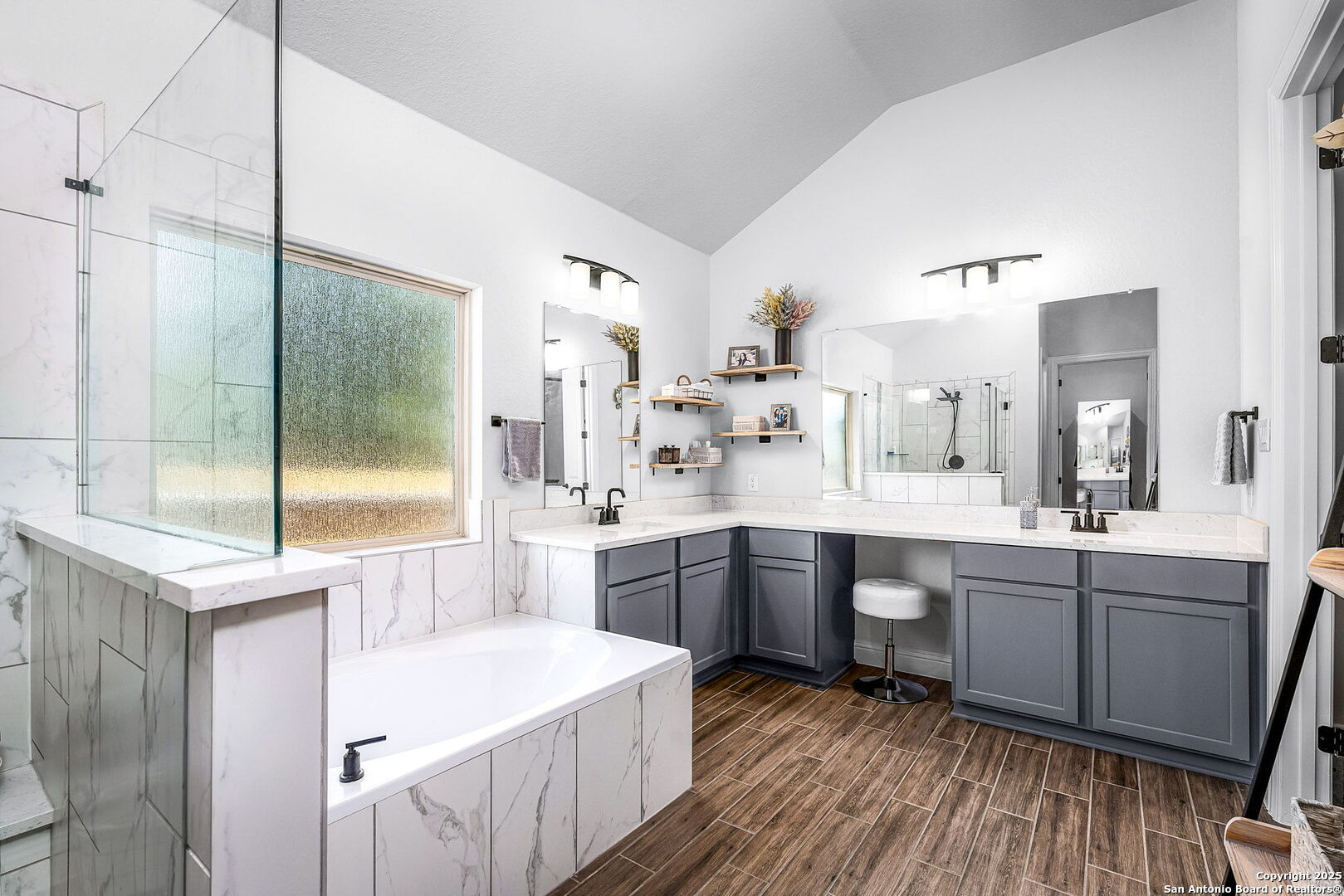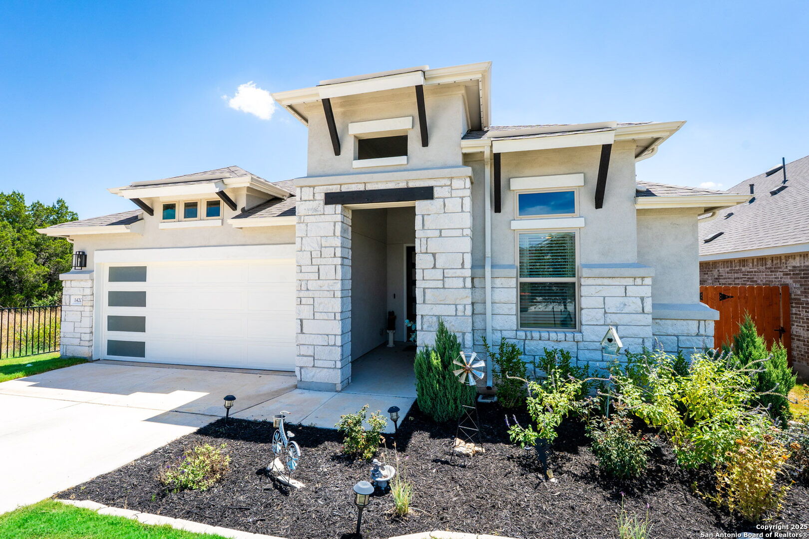 Enjoy enhanced privacy with just one neighboring property! This meticulously crafted home features 3 bedrooms, 3 bathrooms, and a dedicated office space, all thoughtfully designed to provide private sanctuaries within. The heart of this home showcases dramatic 12-foot ceilings and $65,000 in premium finishes throughout. A chef's kitchen, complete with a professional GAS cooktop, flows seamlessly into an expansive living area - perfect for both entertaining and daily living. Custom permanent exterior lighting creates an enchanting ambiance while highlighting the home's architectural beauty. The primary suite stands as a testament to luxury, boasting an expanded en-suite and an exceptional walk-in closet featuring a floor to ceiling system to accommodate ALL THE THINGS. Modern country design elements blend seamlessly with contemporary amenities, while the nearby location provides easy access to the nearby pool and fitness studio/gym. This remarkable property delivers the perfect balance of hill country tranquility and sophisticated living.