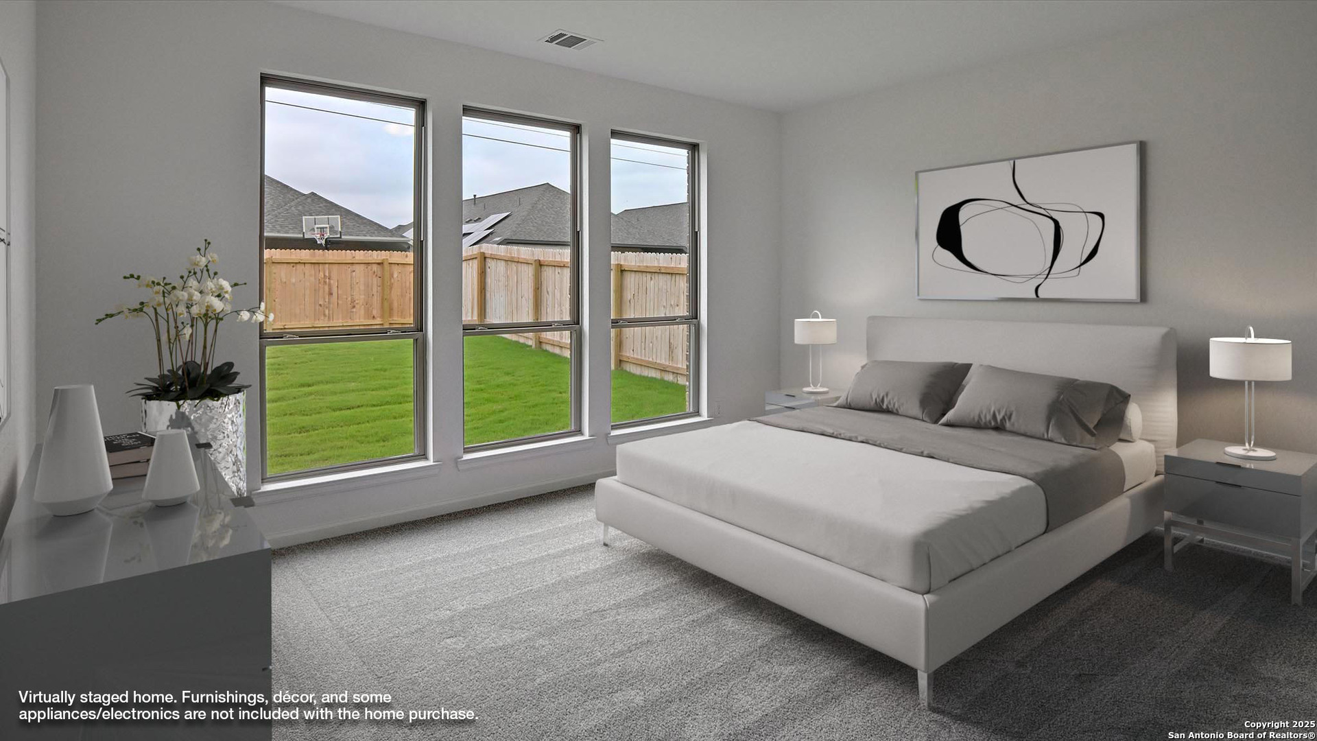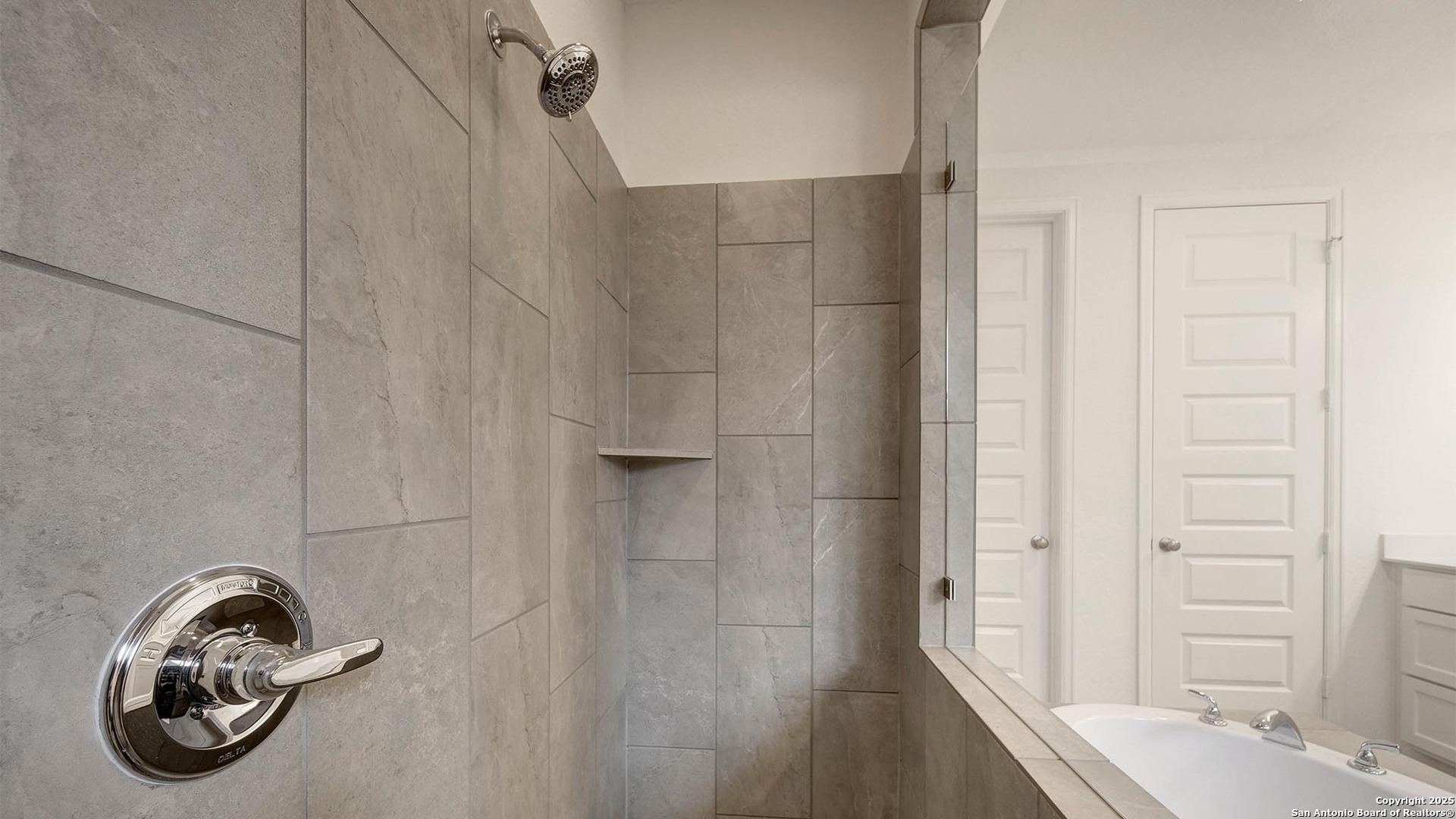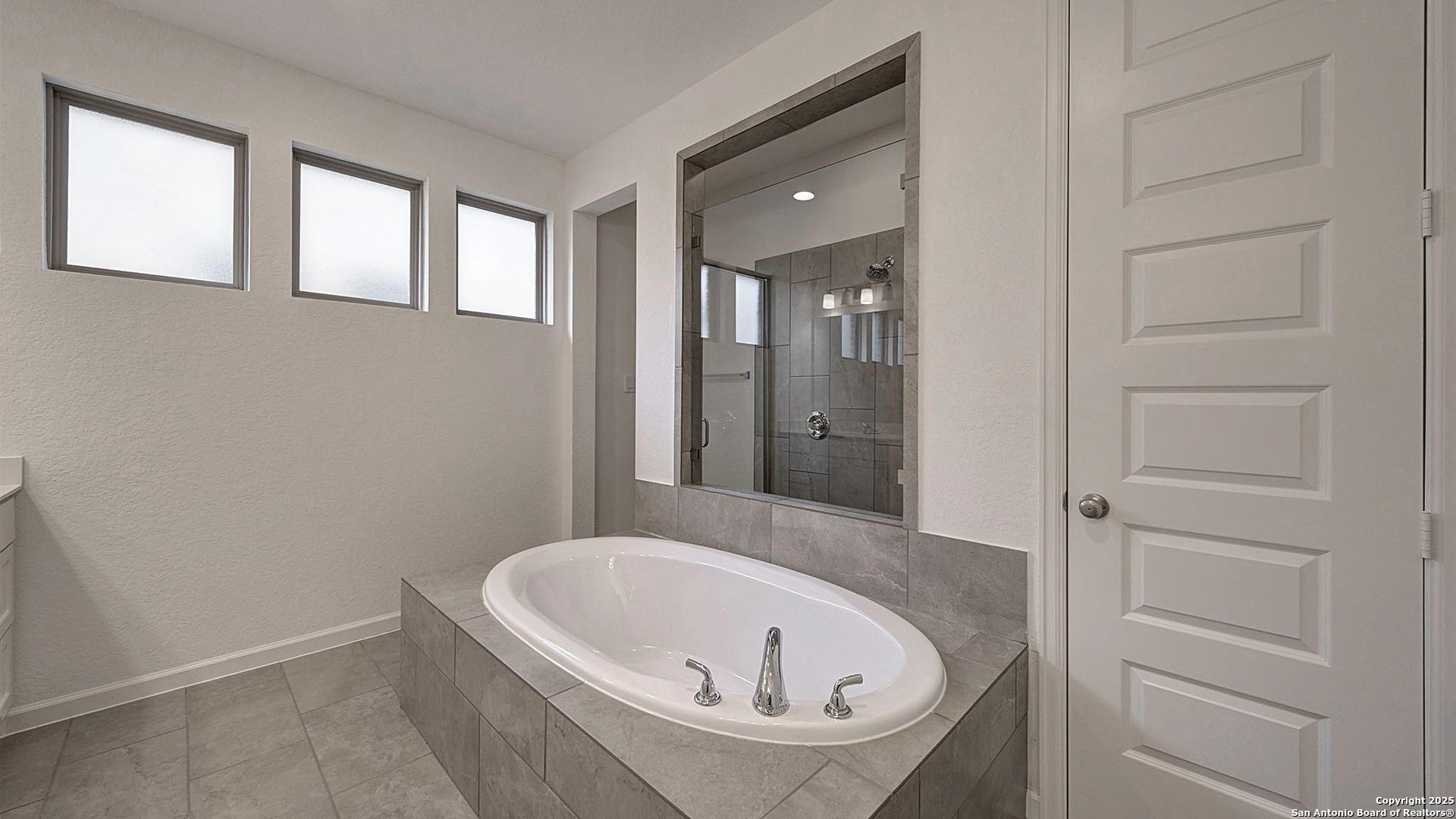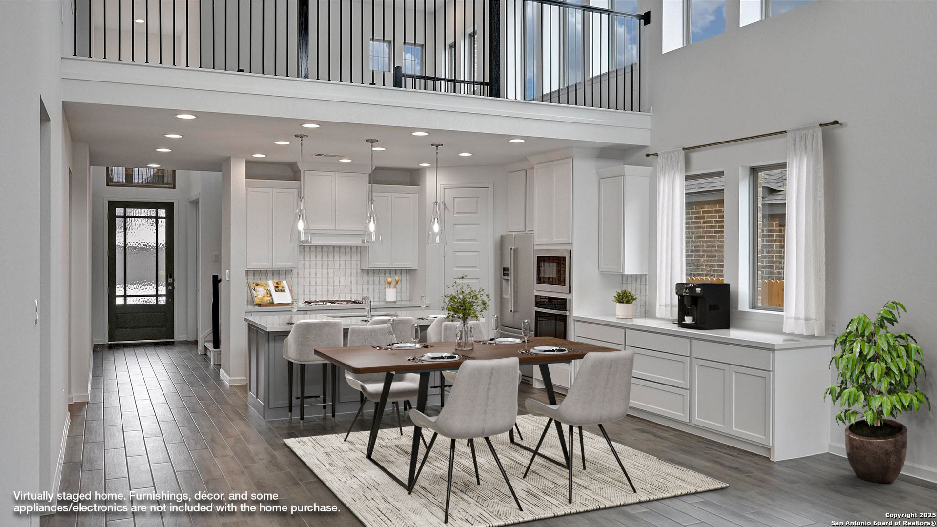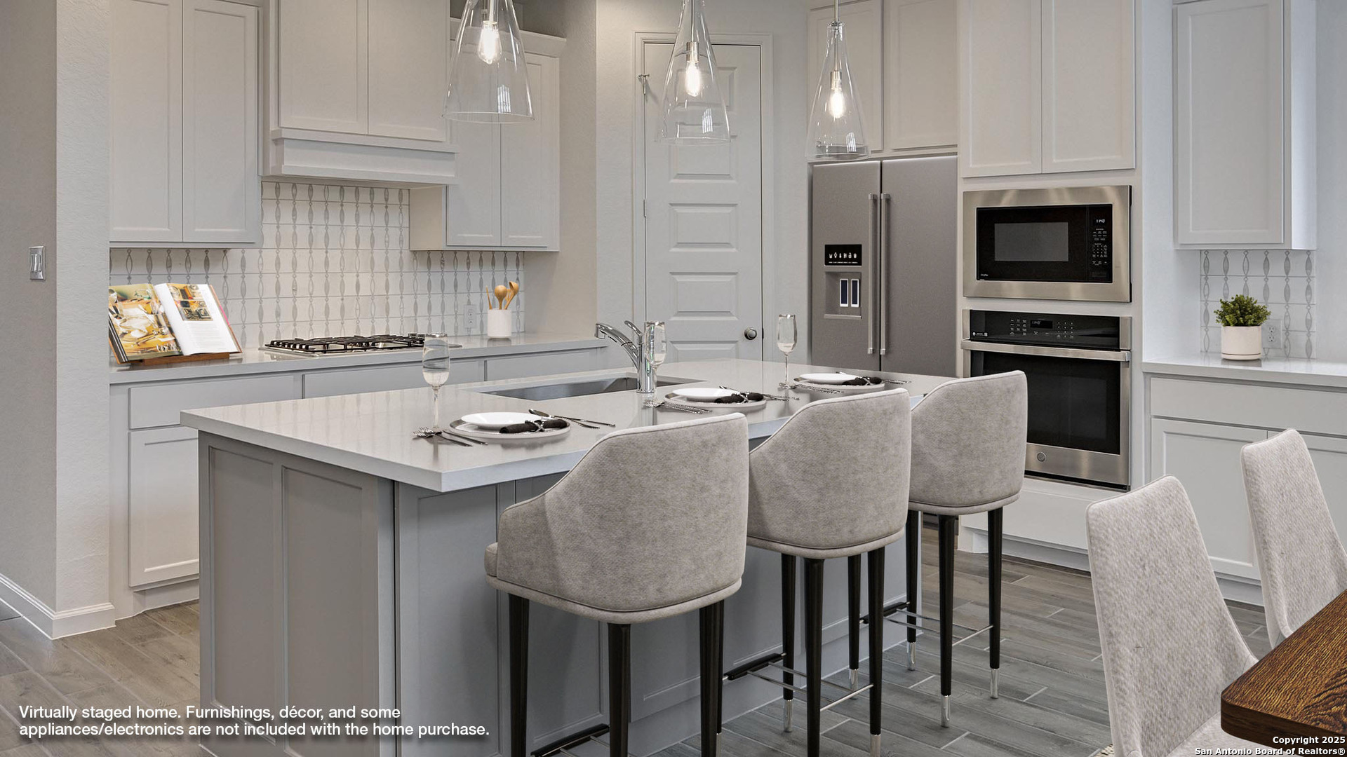 READY FOR MOVE-IN! Home office with French doors set at two-story entry. Open kitchen offers deep walk-in pantry and generous island with built-in seating space. Dining area opens to two-story family room with wall of windows. Primary suite with 10-foot ceiling. Dual vanities, garden tub, separate glass-enclosed shower and large walk-in closet in primary bath. A second bedroom is downstairs. A game room and secondary bedrooms are upstairs. Covered backyard patio and 5-zone sprinkler system. Mud room off two-car garage.