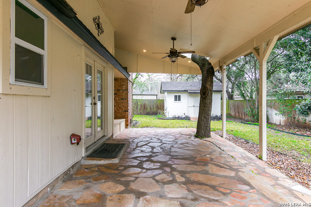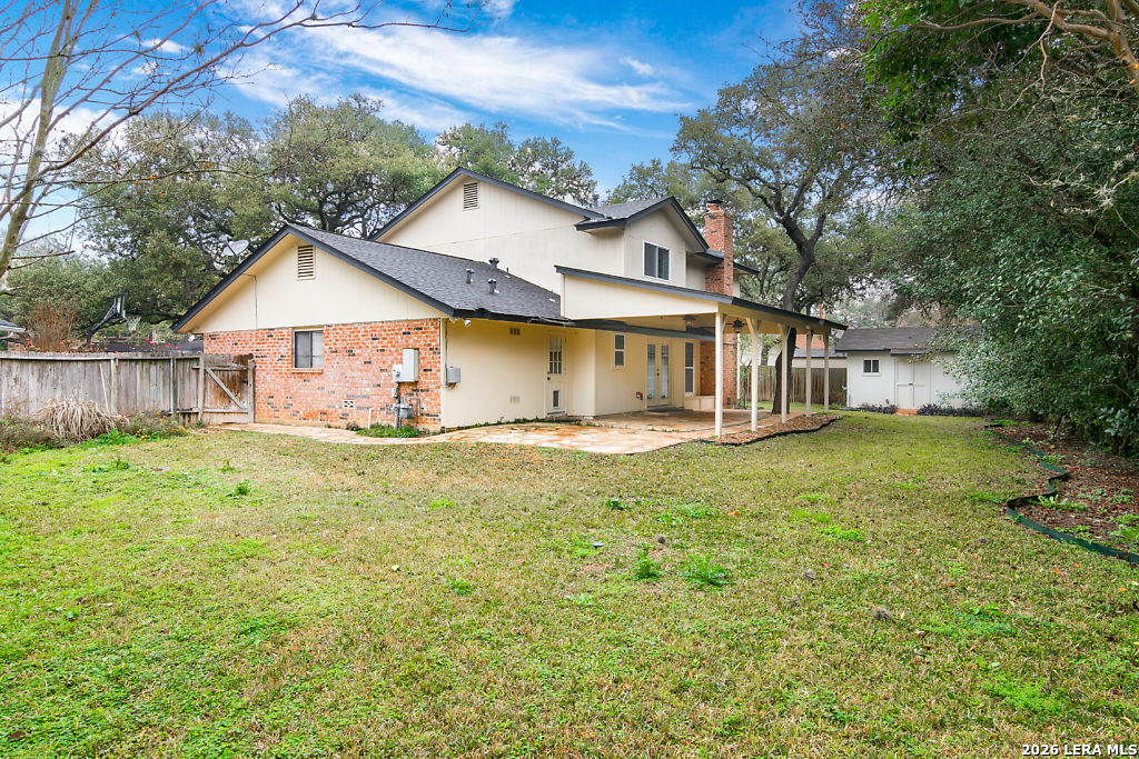 Great location, excellent schools, lots of updates in this beautiful 4/2.5 home sitting in a cul de sac in Oak Meadow neighborhood.Easy access to shopping and restaurants inside loop 1604. Home features study/office, family room, separate dining room with chandelier and great kitchen with breakfast nook, and energy efficient windows. Stainless steel Samsung 3 door refrigerator included. All bedrooms upstairs. Outdoor patio perfect for entertaining and outdoor shed for extra storage or workshop. Neighborhood amenities include park, pool and tennis courts.