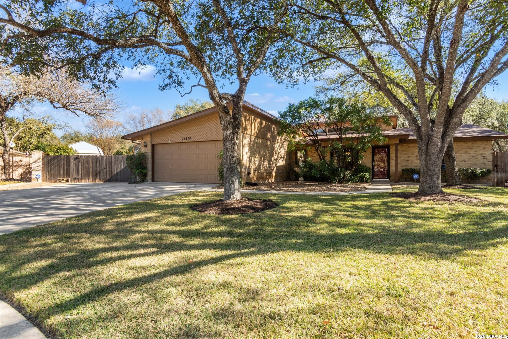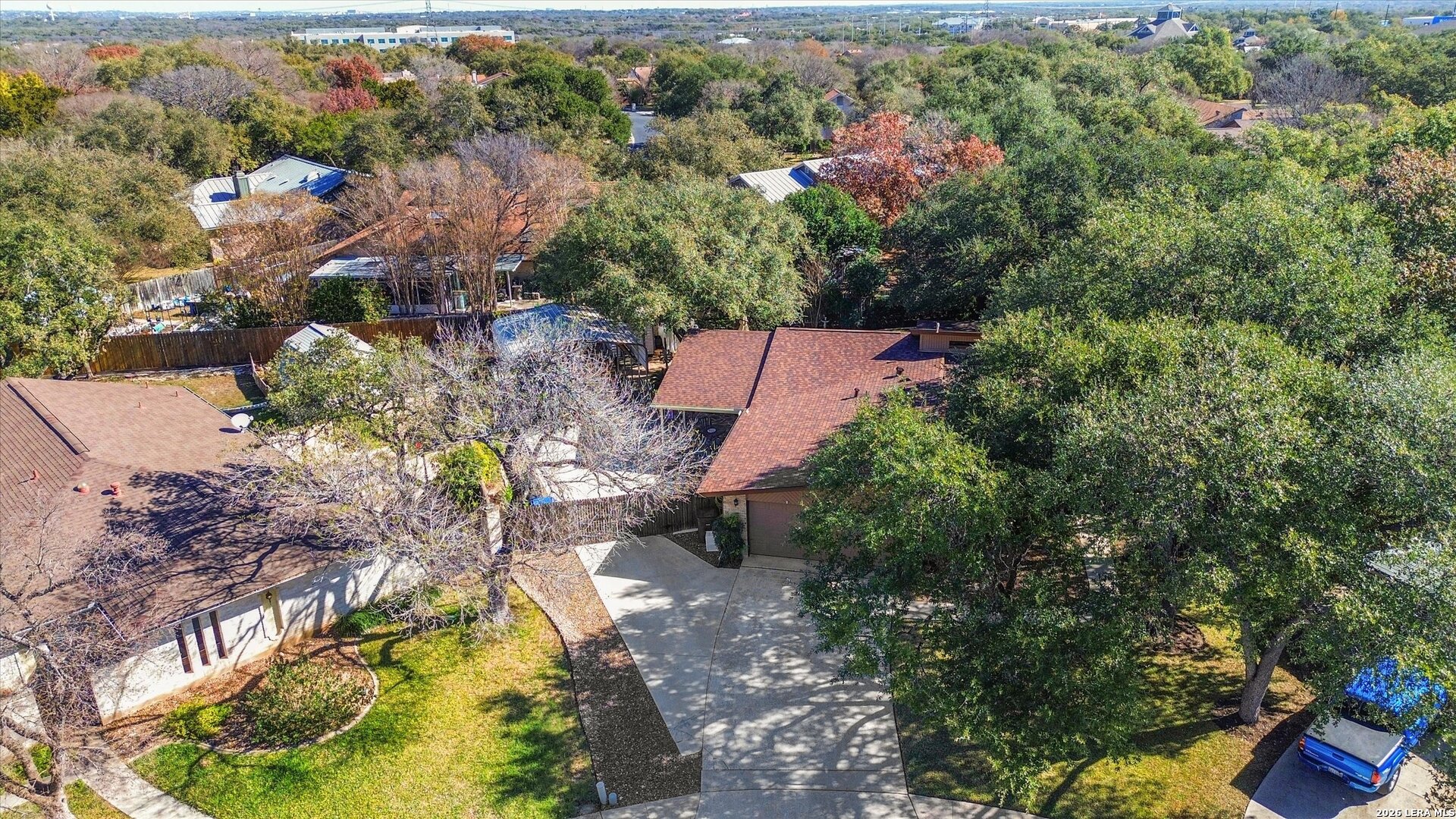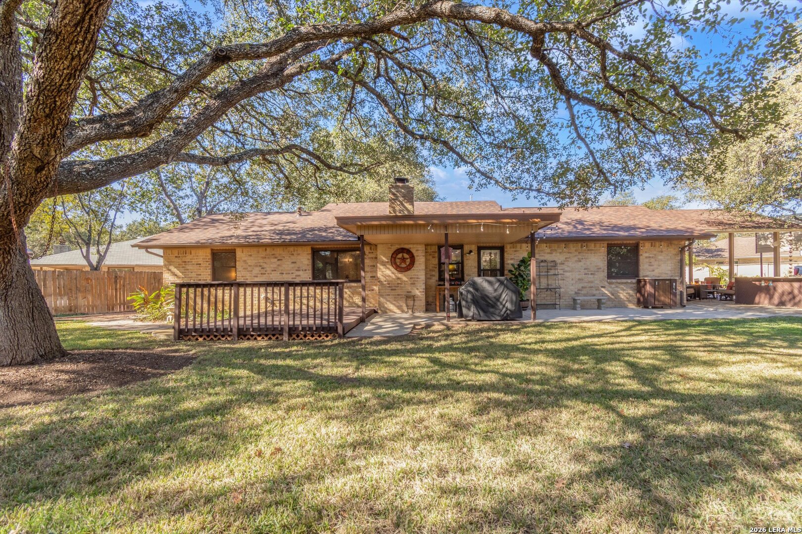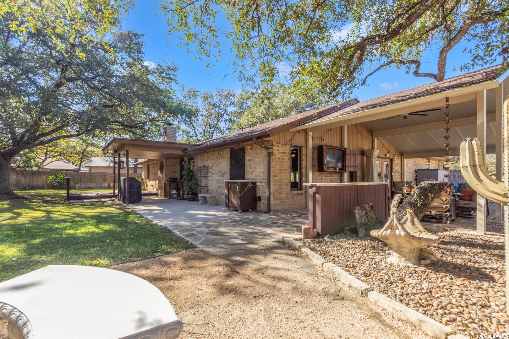 Stunning Single-Story Home on Oversized Cul-de-Sac Lot in Woods of Shavano! Welcome to this beautifully updated single story, 3-bedroom, 2 bath home nestled on a generous .3-acre homesite in a quiet cul-de-sac surrounded by mature trees. Combining privacy, space, and modern comfort, this home checks every box today's buyers are searching for. Inside, enjoy easy care tile & engineered hardwood flooring throughout. No carpet, custom window coverings and an abundance of natural light from new Andersen windows. The inviting living room is anchored by a cozy fireplace, creating the perfect gathering space. The chef's kitchen is the heart of the home, showcasing Monogram SMART appliances, drawer microwave, soft close cabinetry with slide out drawers, solid countertops, and a coveted pot filler perfect for everyday living and entertaining. Additional upgrades include pre plumbing for a water softener, full sprinkler system, recently cleaned a/c ducts, and new bathroom exhaust fans, offering peace of mind and efficiency. Step outside to your private backyard retreat featuring a covered patio, deck, tiki bar, greenhouse, and two storage sheds. It is ideal for entertaining, hobbies, or relaxation. Outdoor enthusiasts and RV owners will love the covered RV parking with electricity. Additionally, it has a green house. Located in a quiet cul de sac with generous outdoor space, this move-in ready home offers comfort, versatility and lifestyle. Schedule your private showing today.