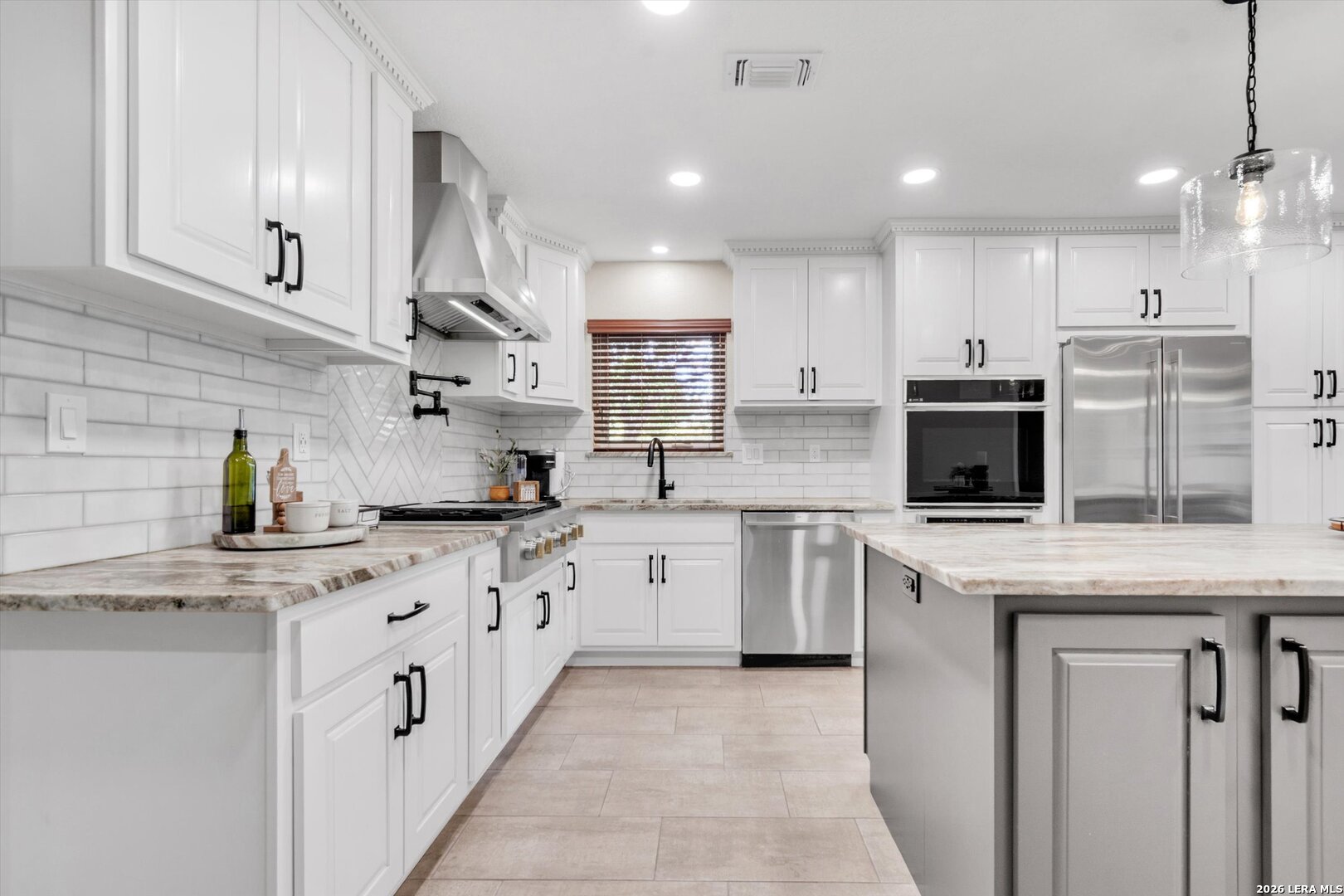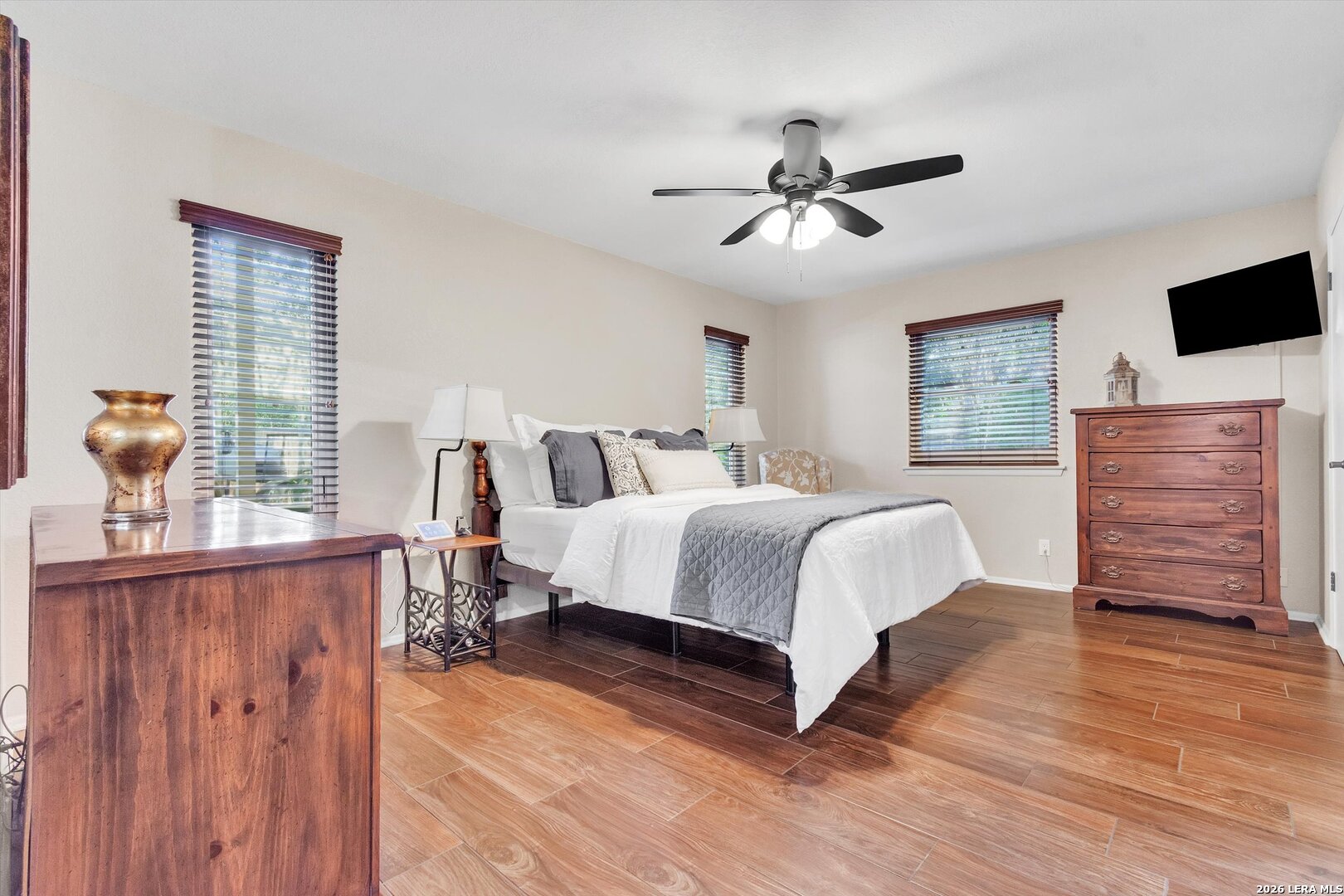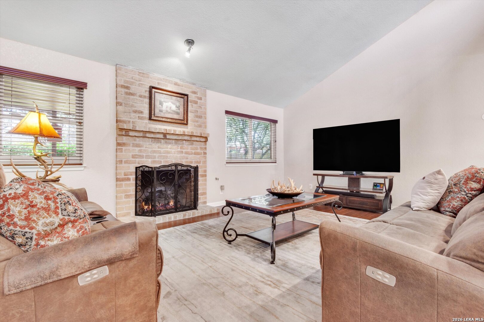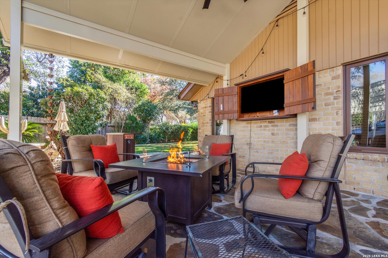 Stunning Single-Story Home on Oversized Cul-de-Sac Lot in Woods of Shavano! Welcome to this beautifully updated single story, 3-bedroom, 2 bath home nestled on a generous .3-acre homesite in a quiet cul-de-sac surrounded by mature trees. Combining privacy, space, and modern comfort, this home checks every box today's buyers are searching for. Inside, enjoy easy care tile & engineered hardwood flooring throughout. No carpet, custom window coverings and an abundance of natural light from new Andersen windows. The inviting living room is anchored by a cozy fireplace, creating the perfect gathering space. The chef's kitchen is the heart of the home, showcasing Monogram SMART appliances, drawer microwave, soft close cabinetry with slide out drawers, solid countertops, and a coveted pot filler perfect for everyday living and entertaining. Additional upgrades include pre plumbing for a water softener, full sprinkler system, recently cleaned a/c ducts, and new bathroom exhaust fans, offering peace of mind and efficiency. Step outside to your private backyard retreat featuring a covered patio, deck, tiki bar, greenhouse, and two storage sheds. It is ideal for entertaining, hobbies, or relaxation. Outdoor enthusiasts and RV owners will love the covered RV parking with electricity. Additionally, it has a green house. Located in a quiet cul de sac with generous outdoor space, this move-in ready home offers comfort, versatility and lifestyle. Schedule your private showing today.