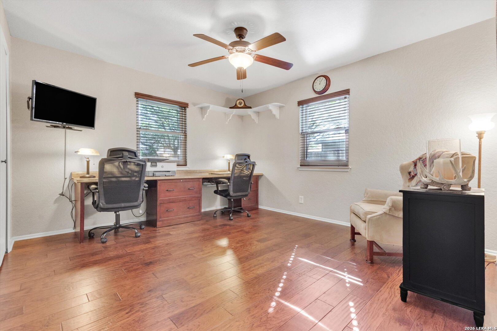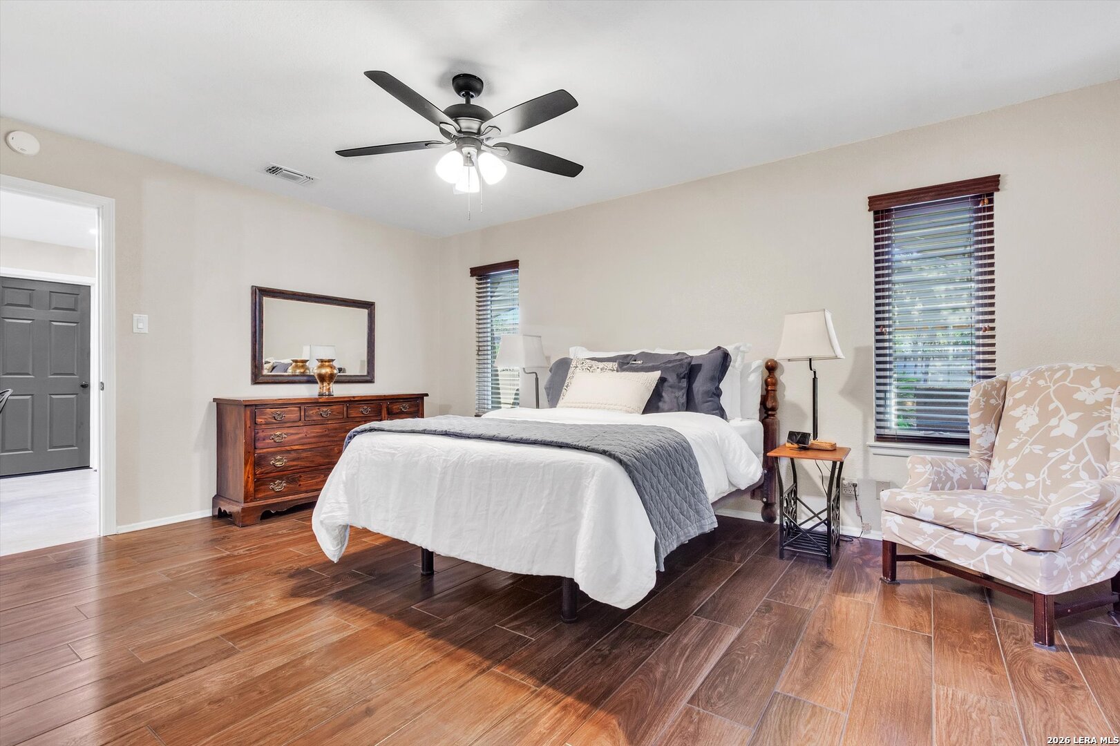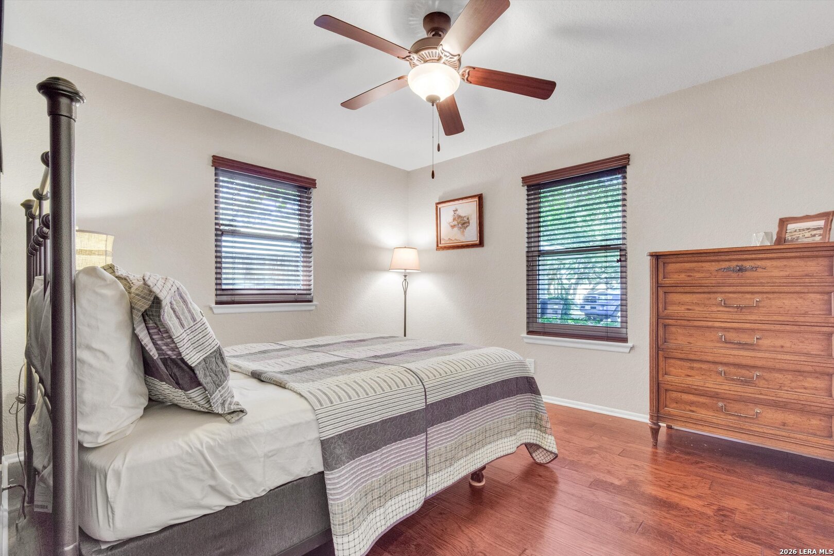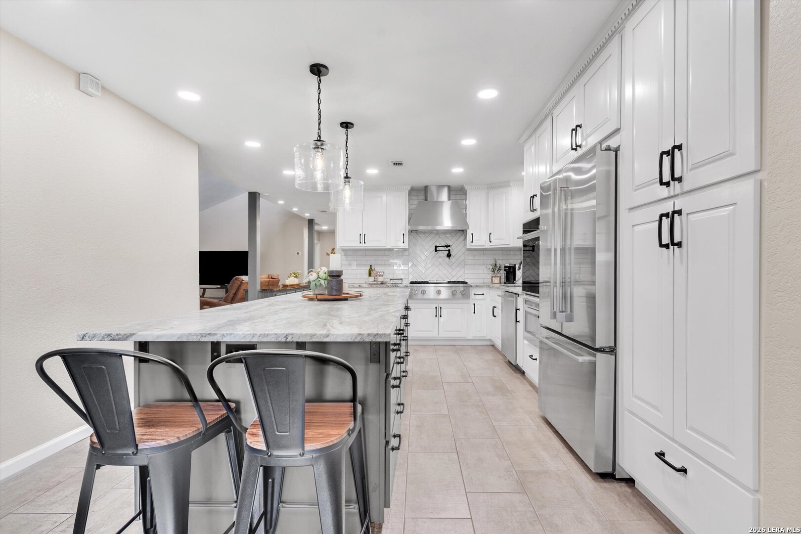 Stunning Single-Story Home on Oversized Cul-de-Sac Lot in Woods of Shavano! Welcome to this beautifully updated single story, 3-bedroom, 2 bath home nestled on a generous .3-acre homesite in a quiet cul-de-sac surrounded by mature trees. Combining privacy, space, and modern comfort, this home checks every box today's buyers are searching for. Inside, enjoy easy care tile & engineered hardwood flooring throughout. No carpet, custom window coverings and an abundance of natural light from new Andersen windows. The inviting living room is anchored by a cozy fireplace, creating the perfect gathering space. The chef's kitchen is the heart of the home, showcasing Monogram SMART appliances, drawer microwave, soft close cabinetry with slide out drawers, solid countertops, and a coveted pot filler perfect for everyday living and entertaining. Additional upgrades include pre plumbing for a water softener, full sprinkler system, recently cleaned a/c ducts, and new bathroom exhaust fans, offering peace of mind and efficiency. Step outside to your private backyard retreat featuring a covered patio, deck, tiki bar, greenhouse, and two storage sheds. It is ideal for entertaining, hobbies, or relaxation. Outdoor enthusiasts and RV owners will love the covered RV parking with electricity. Additionally, it has a green house. Located in a quiet cul de sac with generous outdoor space, this move-in ready home offers comfort, versatility and lifestyle. Schedule your private showing today.