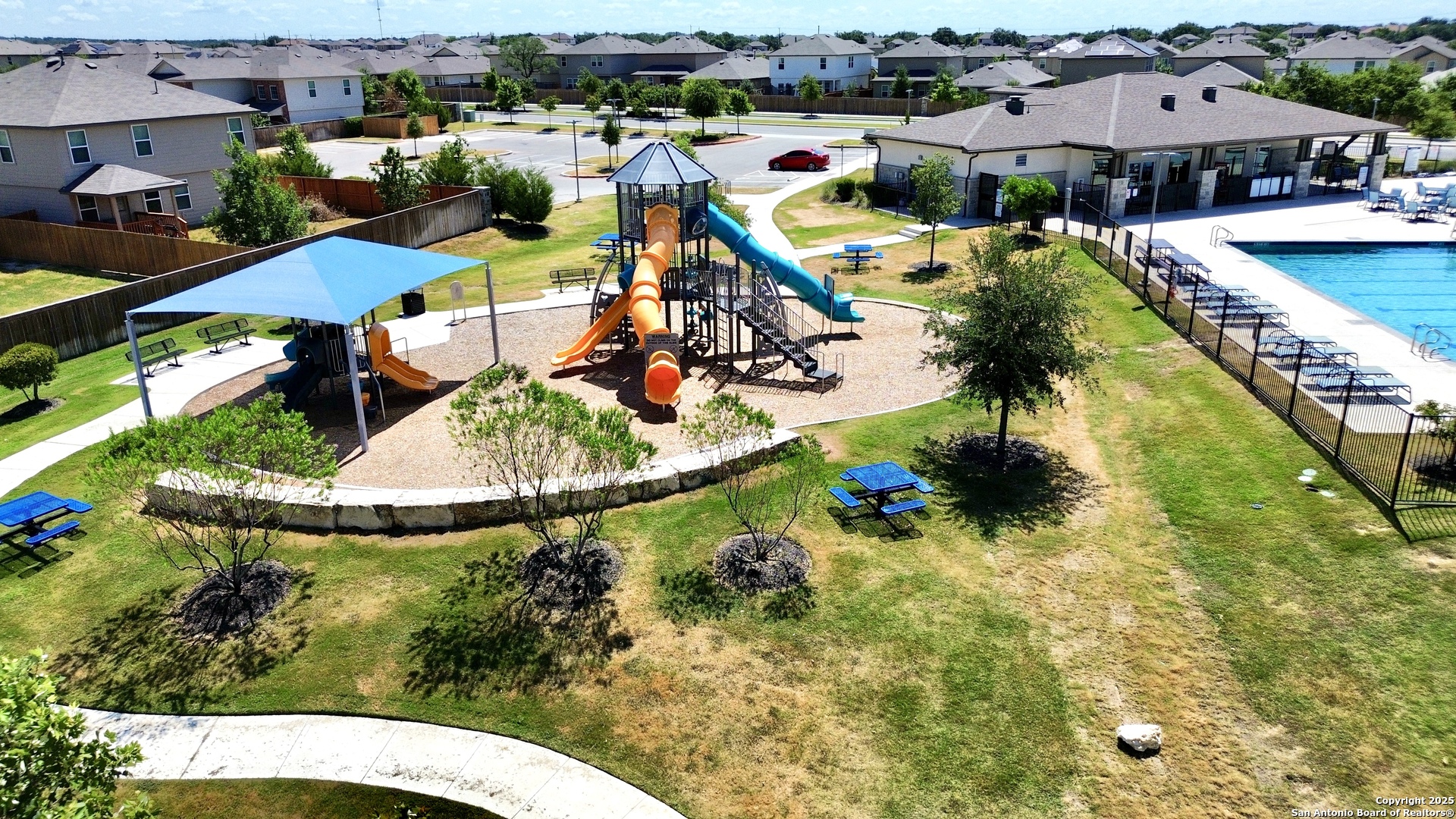 4-bedroom, 2.5-bathroom home in the Riverstone at Westpointe subd. in San Antonio, TX provides comfortable living with many upgrades. The kitchen has a gas stove, yard has sprinklers & the Washer/Dryer is included. The primary bedroom is downstairs while all other bedrooms are located upstairs. An upstairs game room has a fireplace & offers additional living space. The home features a water softener, a covered backyard patio, and a combination of carpet and tile flooring. Community amenities are included which include pools with slides, shaded parks, basketball & tennis courts, jogging trails, and party rooms. Zoned to NISD. Residents will appreciate the abundance of dining and shopping choices available nearby. Just minutes away from Baptist Westover Hospital, SeaWorld, and Randolph AFB. Schedule a showing quickly.