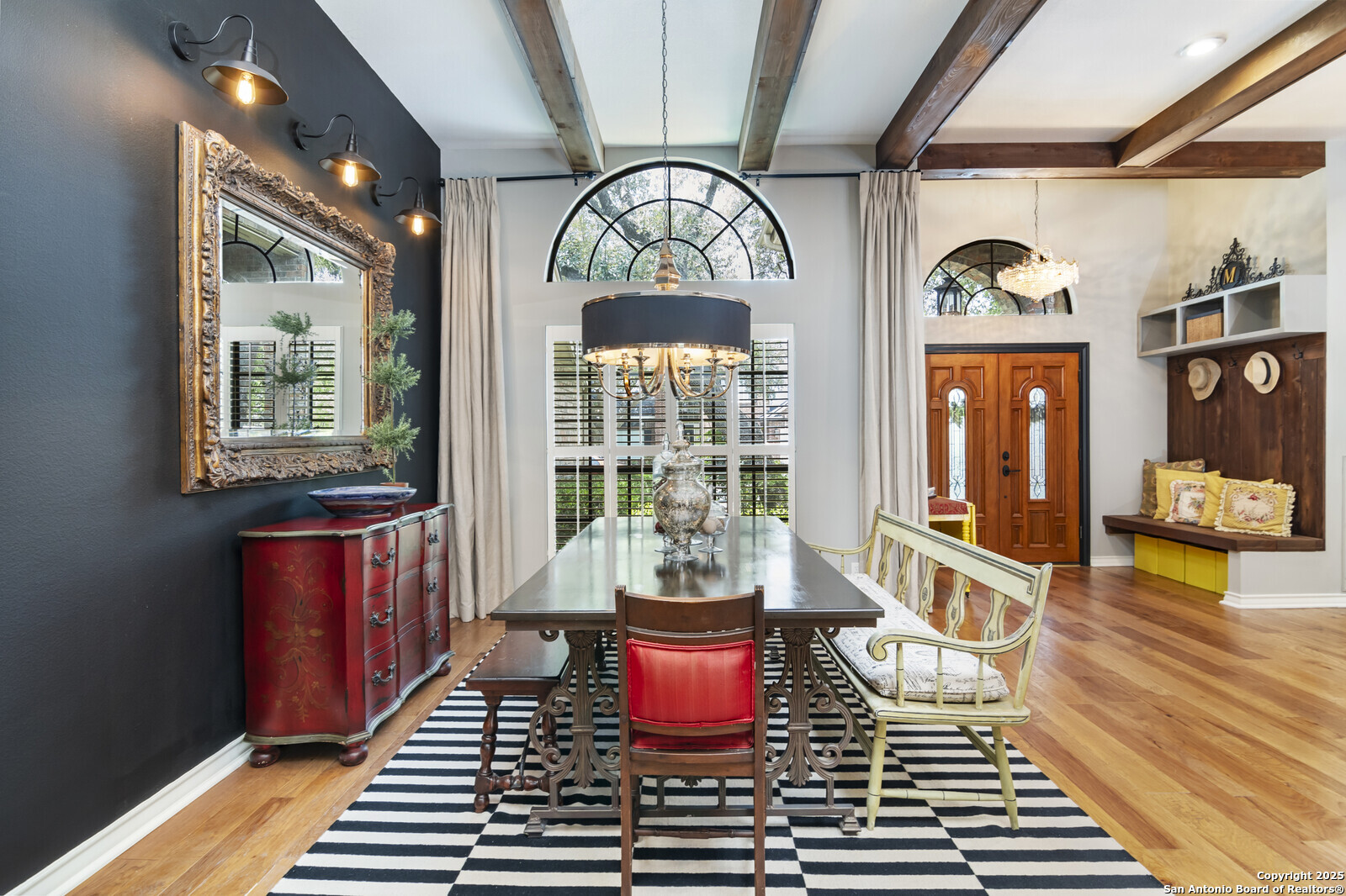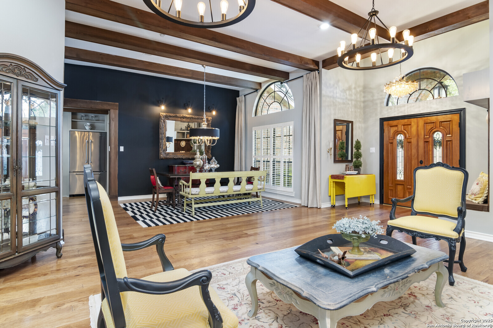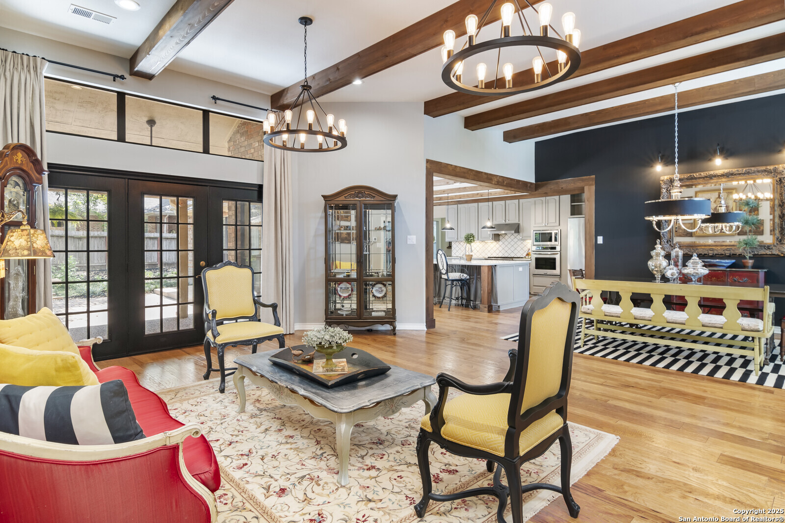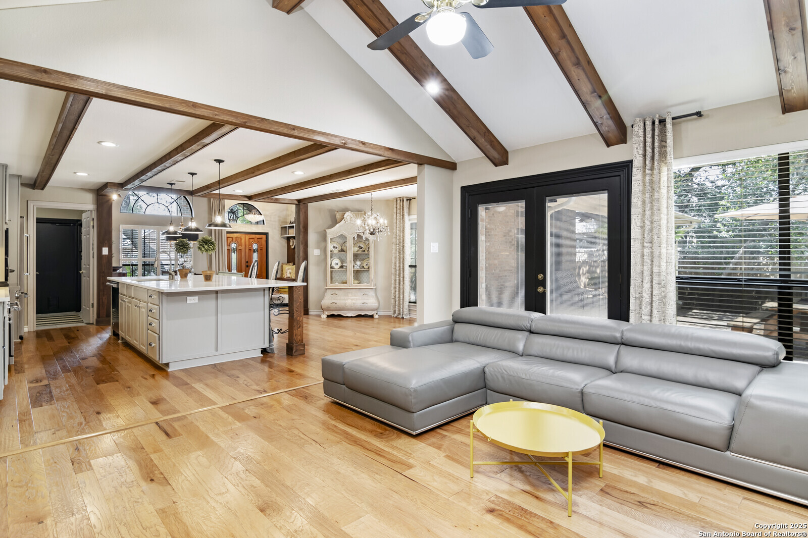 Spectacular One-Story in Deerfield Welcome to 1422 Hawks Meadow, a beautifully updated one-story home in the heart of the coveted Deerfield community. Offering 2,684 square feet of refined living space, this 4-bedroom, 3-bath residence has been thoughtfully renovated with elevated style and attention to detail. Inside, you'll find a wide open floor plan with soaring ceilings and custom beam treatments that add warmth and architectural interest. Rich wood flooring flows throughout the main living areas, complementing the fresh lighting, updated fixtures, and transitional design elements. At the heart of the home is an enormous island kitchen outfitted with professional-grade appliances, custom cabinetry, and designer touches-perfect for everyday living and effortless entertaining. The spacious primary suite features a beautifully updated bath with high-end finishes and a spa-like feel. Generously sized secondary bedrooms and flexible spaces make this home as functional as it is stunning. Located in one of North Central San Antonio's most established and sought-after communities, this home offers exceptional walkability, top-rated schools, and access to Deerfield's amenities-including a pool, tennis courts, park, and 24-hour security patrol. Truly a rare opportunity to own a move-in ready, designer-inspired home in Deerfield.