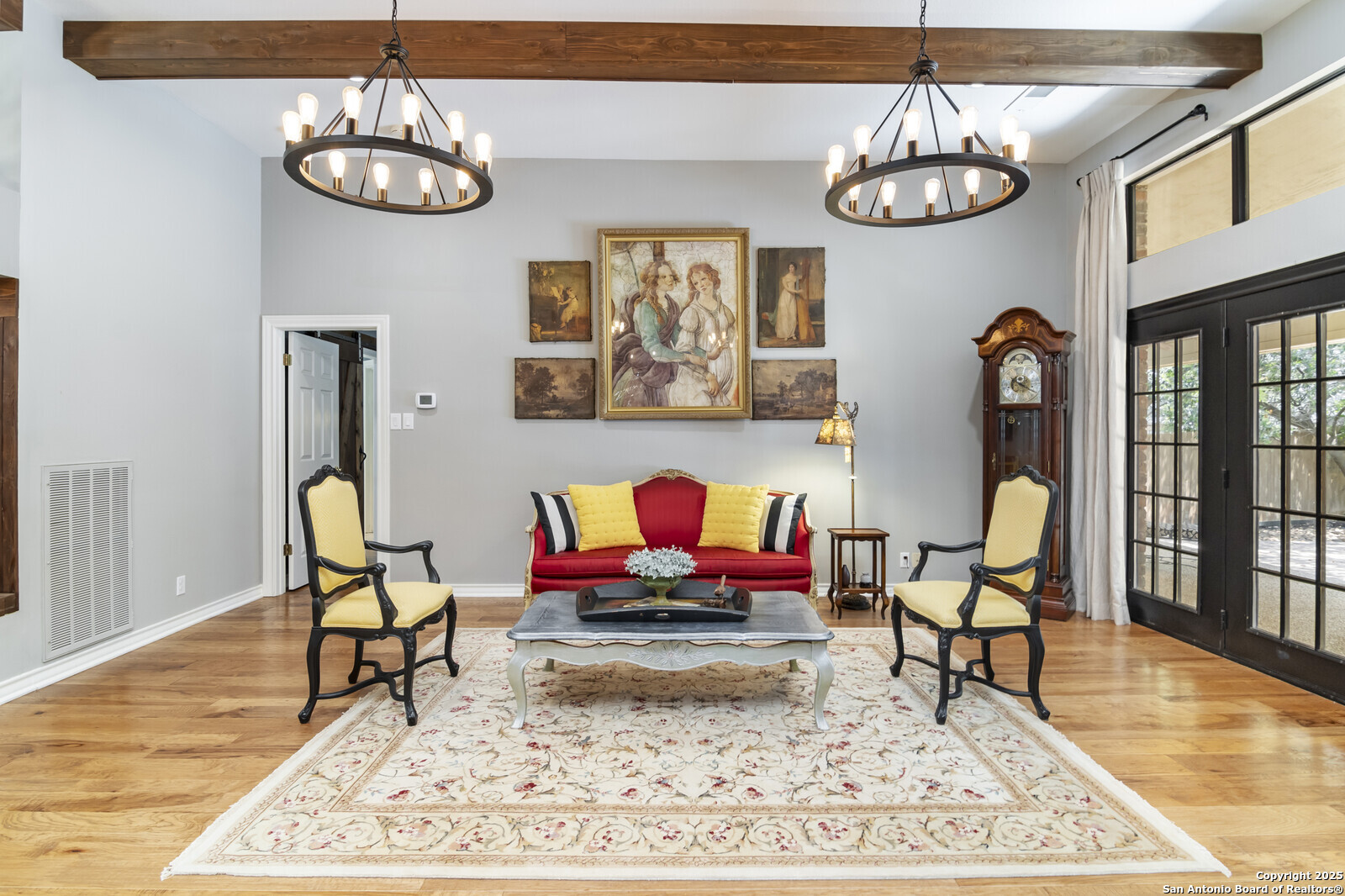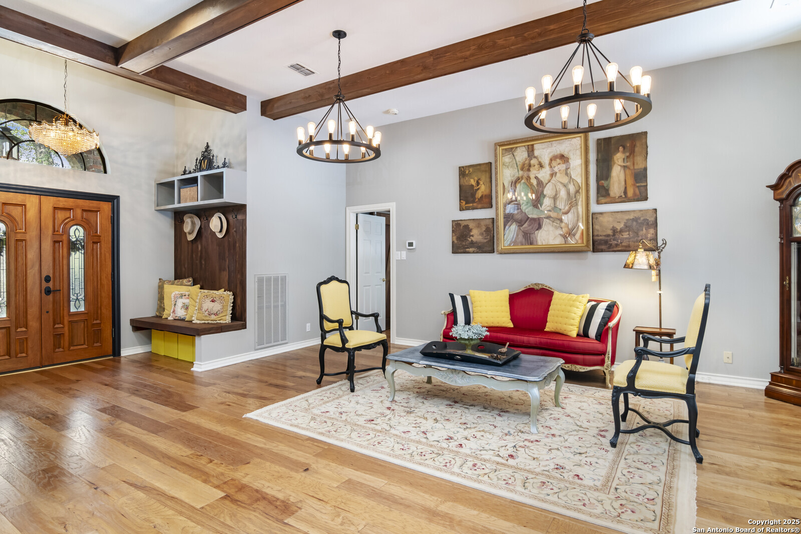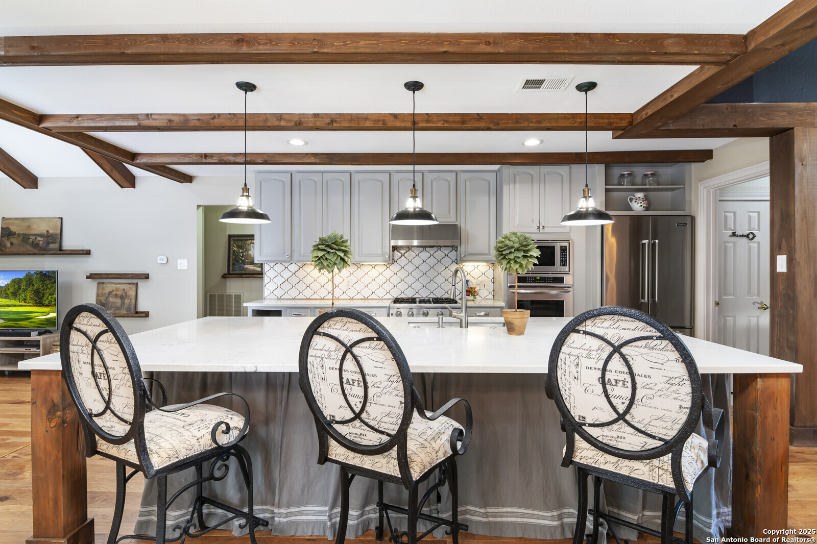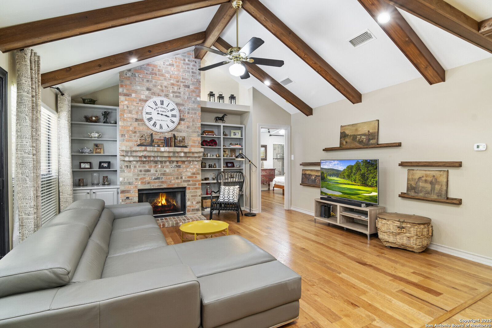 Spectacular One-Story in Deerfield Welcome to 1422 Hawks Meadow, a beautifully updated one-story home in the heart of the coveted Deerfield community. Offering 2,684 square feet of refined living space, this 4-bedroom, 3-bath residence has been thoughtfully renovated with elevated style and attention to detail. Inside, you'll find a wide open floor plan with soaring ceilings and custom beam treatments that add warmth and architectural interest. Rich wood flooring flows throughout the main living areas, complementing the fresh lighting, updated fixtures, and transitional design elements. At the heart of the home is an enormous island kitchen outfitted with professional-grade appliances, custom cabinetry, and designer touches-perfect for everyday living and effortless entertaining. The spacious primary suite features a beautifully updated bath with high-end finishes and a spa-like feel. Generously sized secondary bedrooms and flexible spaces make this home as functional as it is stunning. Located in one of North Central San Antonio's most established and sought-after communities, this home offers exceptional walkability, top-rated schools, and access to Deerfield's amenities-including a pool, tennis courts, park, and 24-hour security patrol. Truly a rare opportunity to own a move-in ready, designer-inspired home in Deerfield.