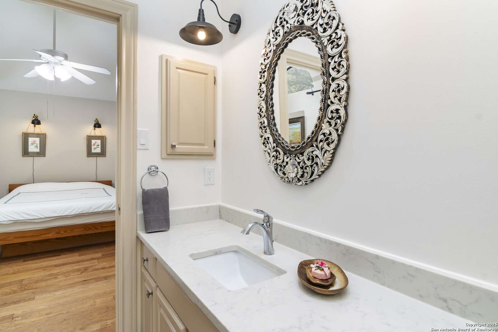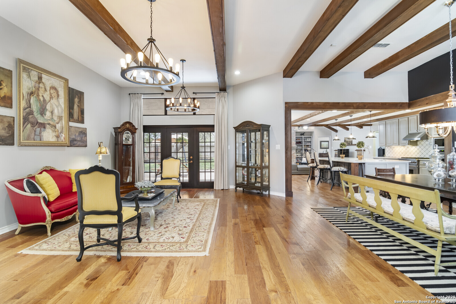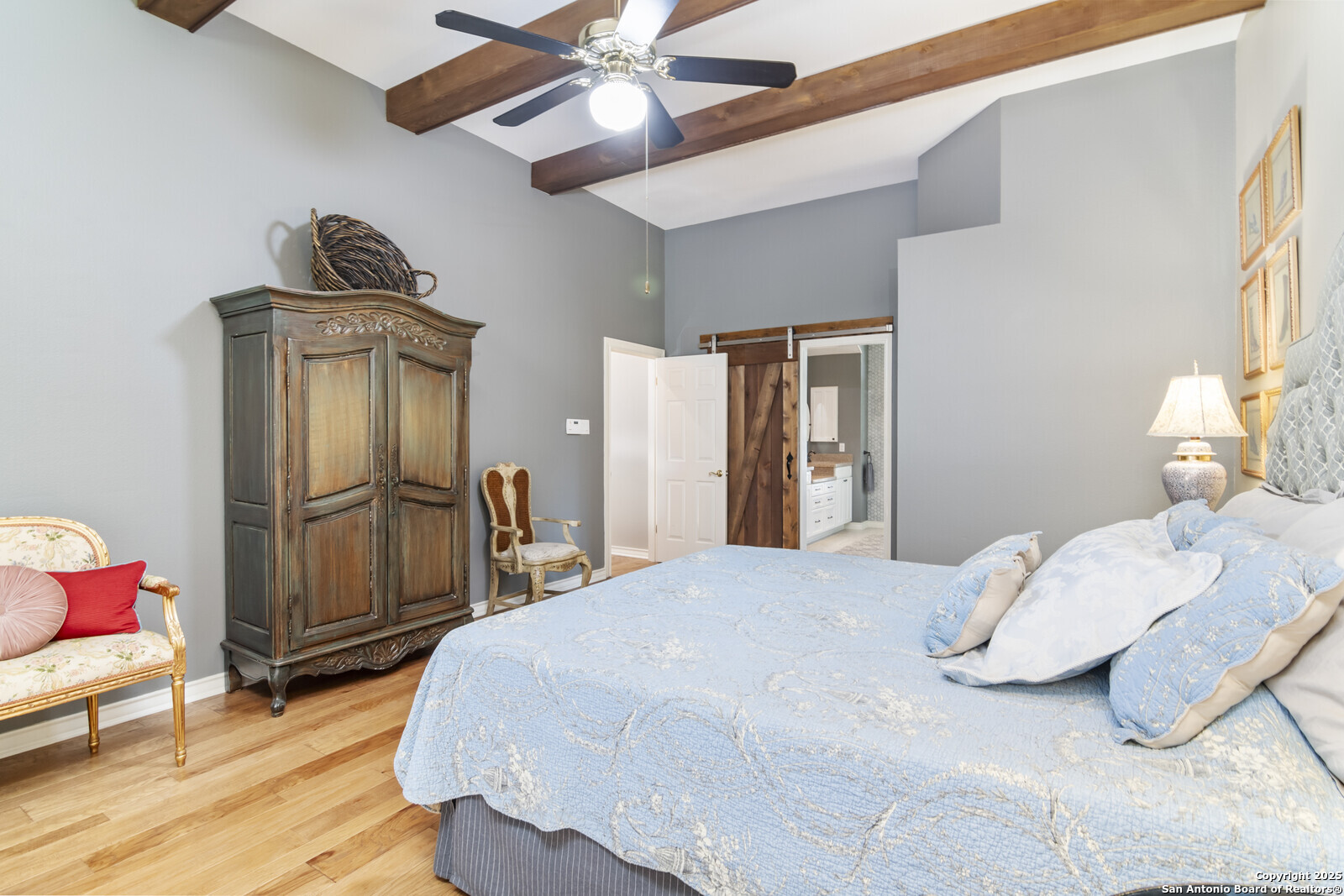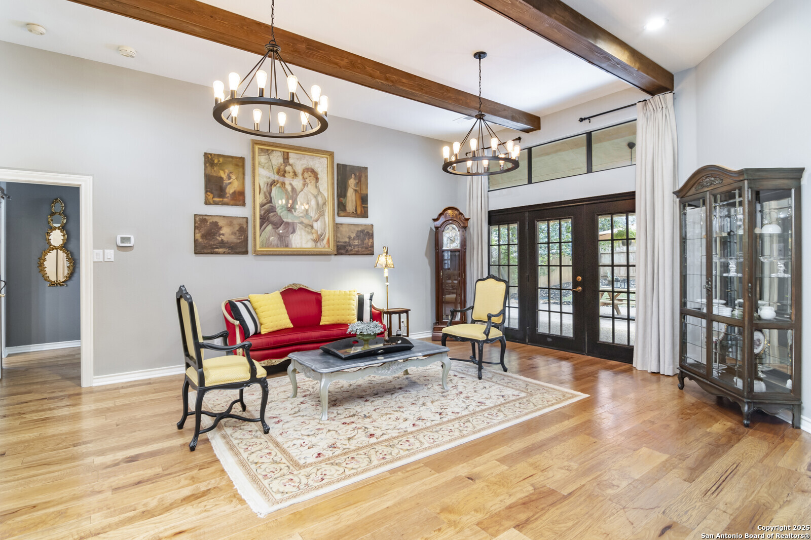 Spectacular One-Story in Deerfield Welcome to 1422 Hawks Meadow, a beautifully updated one-story home in the heart of the coveted Deerfield community. Offering 2,684 square feet of refined living space, this 4-bedroom, 3-bath residence has been thoughtfully renovated with elevated style and attention to detail. Inside, you'll find a wide open floor plan with soaring ceilings and custom beam treatments that add warmth and architectural interest. Rich wood flooring flows throughout the main living areas, complementing the fresh lighting, updated fixtures, and transitional design elements. At the heart of the home is an enormous island kitchen outfitted with professional-grade appliances, custom cabinetry, and designer touches-perfect for everyday living and effortless entertaining. The spacious primary suite features a beautifully updated bath with high-end finishes and a spa-like feel. Generously sized secondary bedrooms and flexible spaces make this home as functional as it is stunning. Located in one of North Central San Antonio's most established and sought-after communities, this home offers exceptional walkability, top-rated schools, and access to Deerfield's amenities-including a pool, tennis courts, park, and 24-hour security patrol. Truly a rare opportunity to own a move-in ready, designer-inspired home in Deerfield.