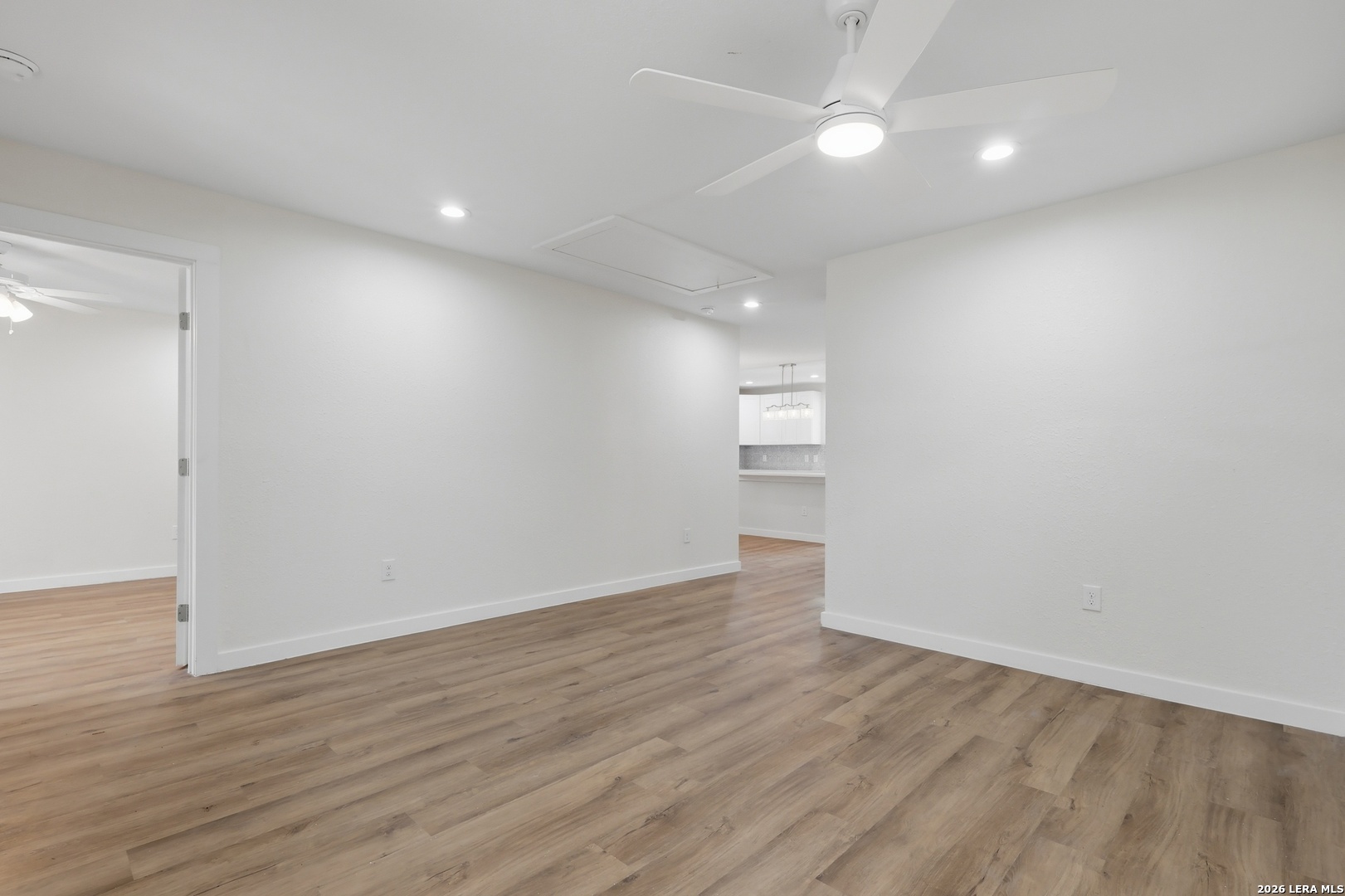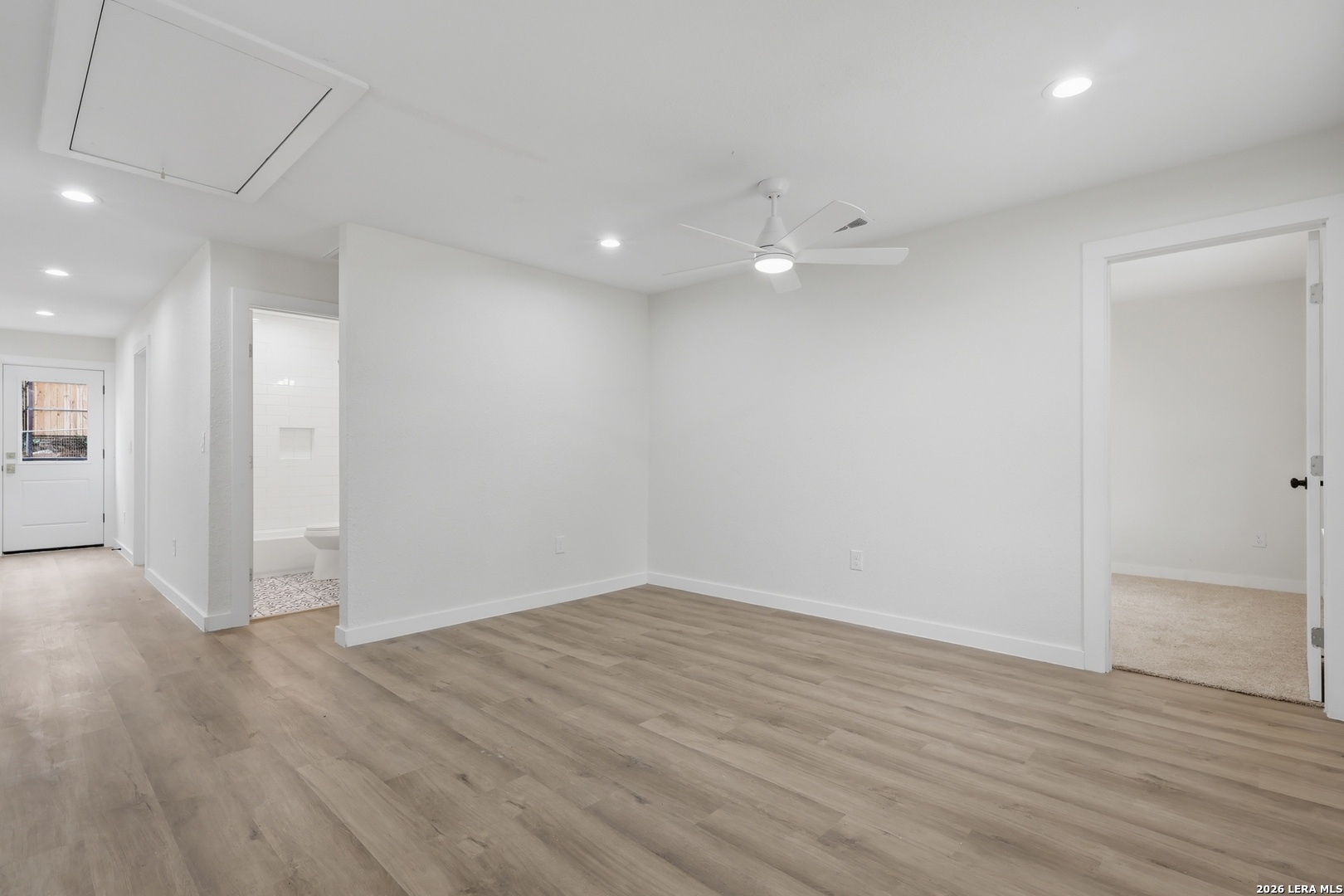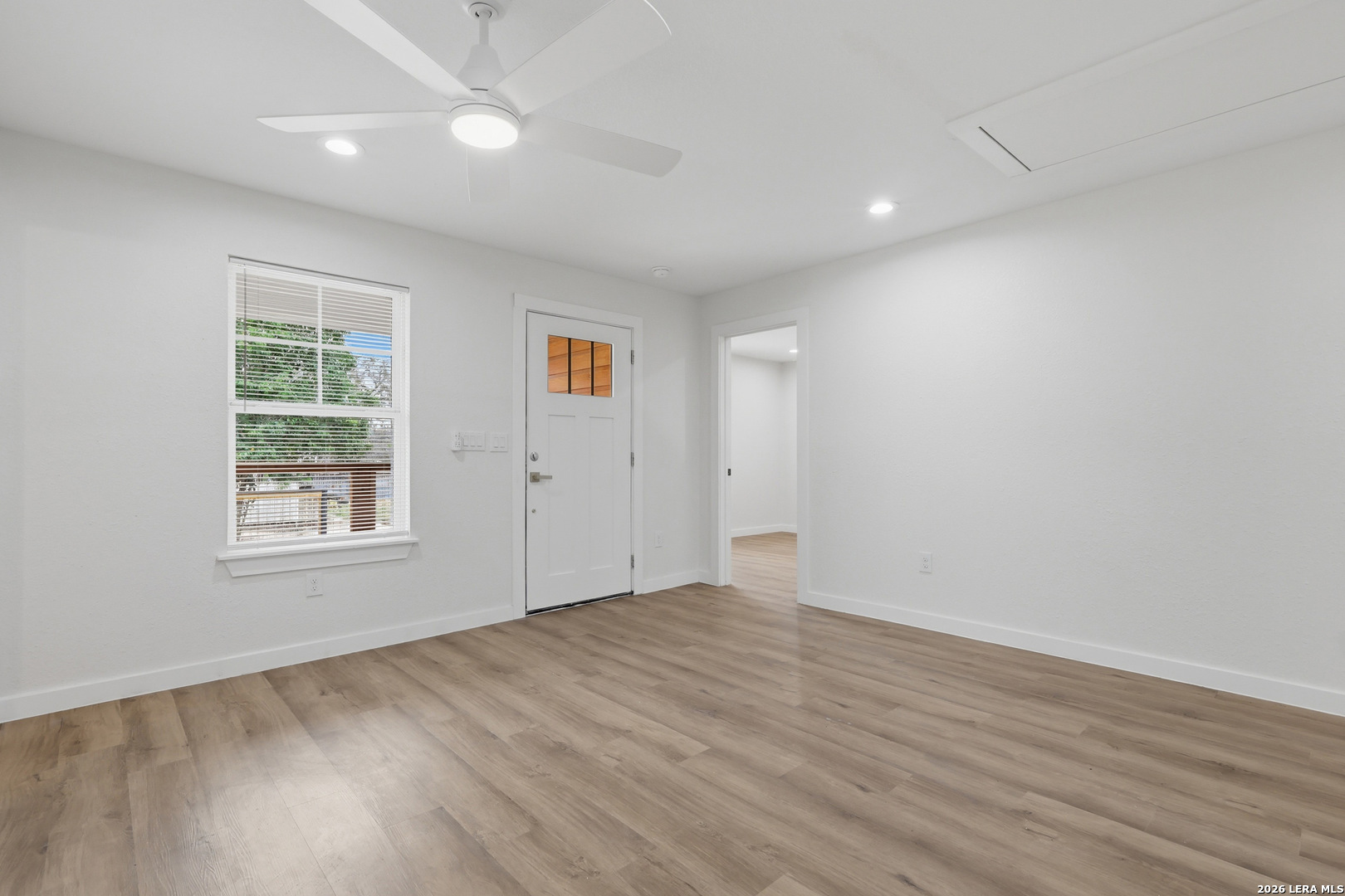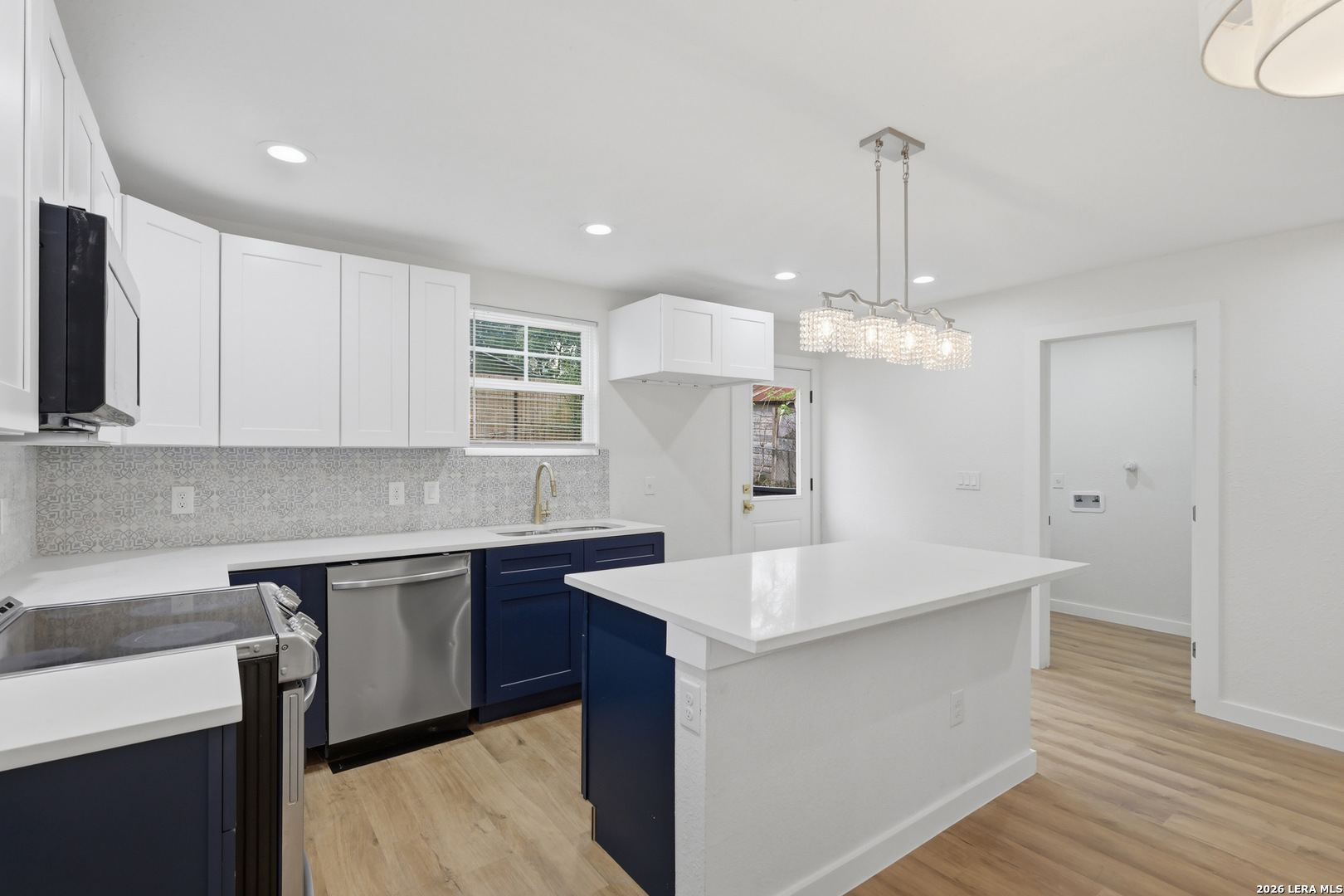 1422 Kayton, San Antonio, Texas. Completely rebuilt from the inside out. This is not a cosmetic flip. Fully permitted renovation with quality work throughout and no corners cut. Major improvements include all new plumbing, new electrical wiring, new HVAC system, and new water heater, giving buyers confidence in the long-term functionality of the home. The interior features an open living space with recessed lighting, updated ceiling fans, and durable wood-style flooring throughout. The kitchen has been fully redesigned with modern cabinetry, quartz countertops, stainless appliances, designer backsplash, and a large center island that opens to the dining and living areas, creating a functional layout for entertaining. Bathrooms feature custom tile work with spacious walk-in showers, updated vanities, and modern fixtures. Bedrooms include walk-in closets providing ample storage. Exterior improvements include fresh siding, new roofline accents, updated windows, and a newly constructed front porch with wood details that adds character and curb appeal. This home offers the feel of new construction while maintaining the charm of an established neighborhood. Ideal for buyers looking for a move-in-ready property with major systems already updated.