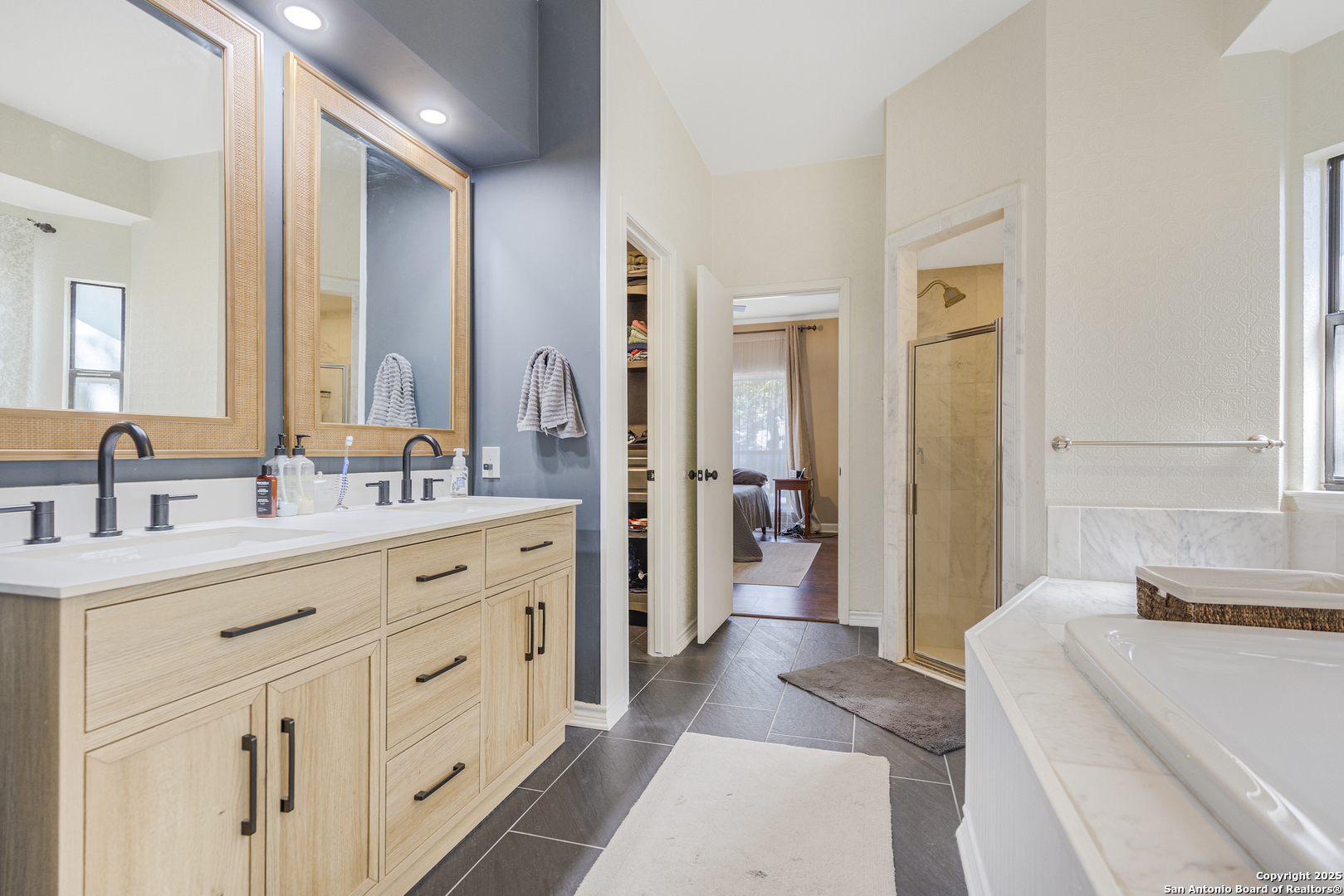 Welcome home to 1422 Vista Del Monte-where classic Tudor architecture meets modern luxury on a beautiful corner lot shaded by mature oak trees. This stunning home has been beautifully renovated while preserving its original character. Step inside to find a fully updated kitchen featuring custom cabinetry, abundant counter space, and high-end finishes-perfect for both daily living and entertaining. The spacious primary suite on the main level is complete with a cozy fireplace, full-wall built-in bookshelves, and a luxurious ensuite bathroom with a separate soaking tub, a walk-in shower and two walk-in closets. Throughout the home, you'll find fresh paint, updated bathrooms, and no carpet-just warm, inviting flooring that flows seamlessly from room to room. Upstairs, three generously sized bedrooms, a loft, and ample storage provide space for everyone. The light-filled living room offers built-in cabinetry, a second fireplace, and French doors that open to a beautifully landscaped backyard with a covered patio-ideal for entertaining or relaxing under the trees. Additional highlights include a rear-entry oversized garage, a privacy fence, and a prime location in sought-after Vista Del Norte. This home is the perfect blend of character, comfort, and convenience-don't miss your chance to make it yours!