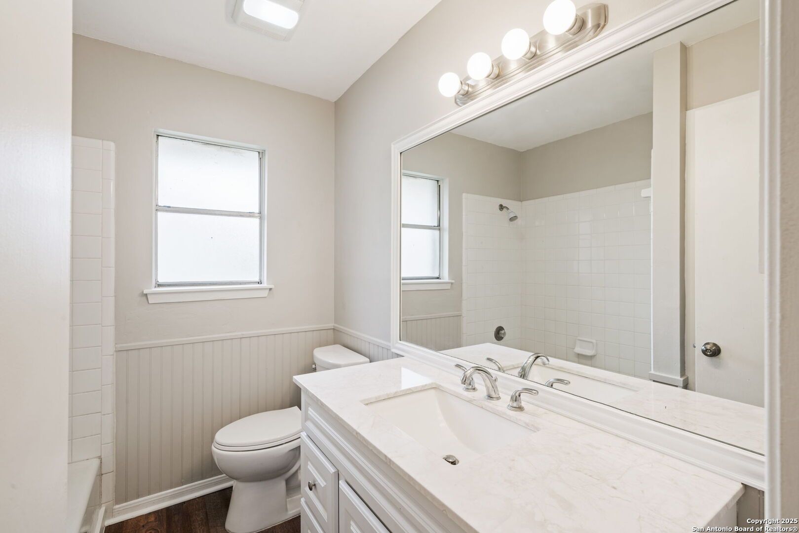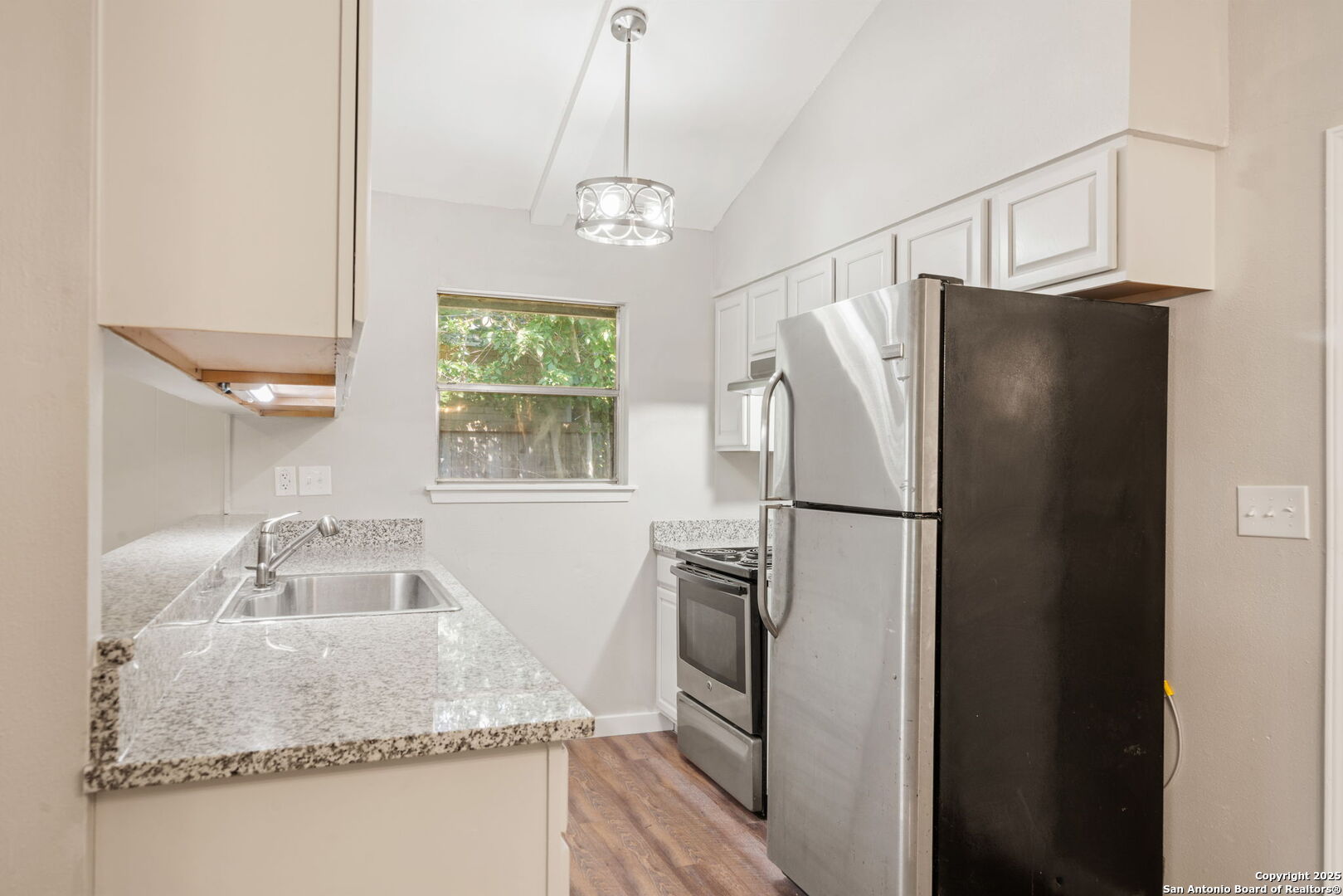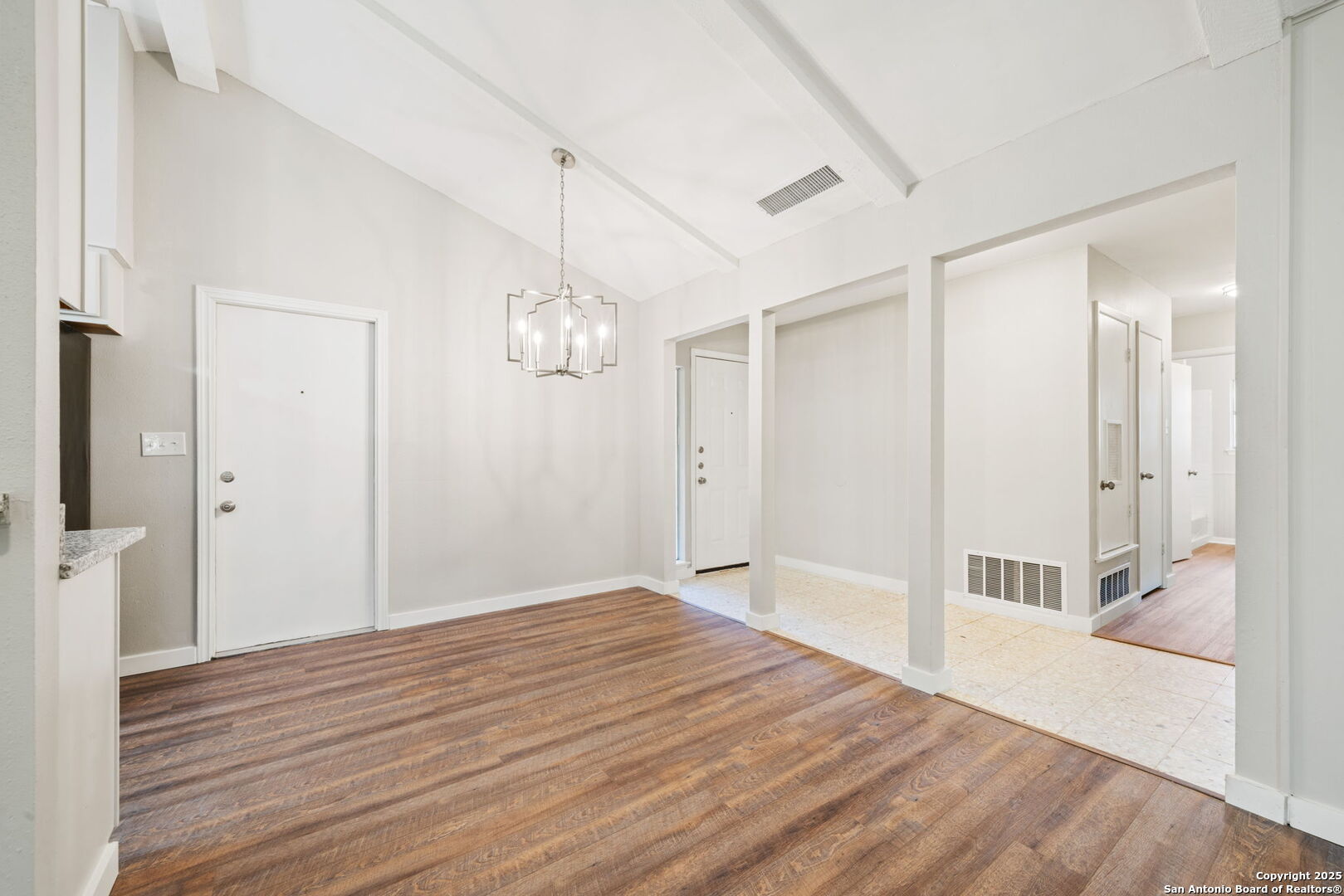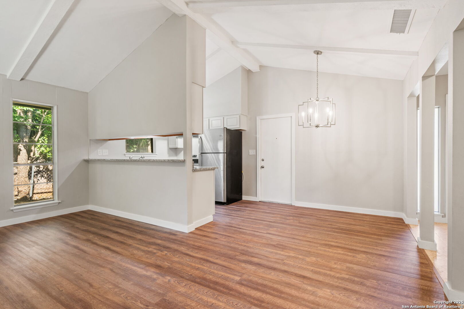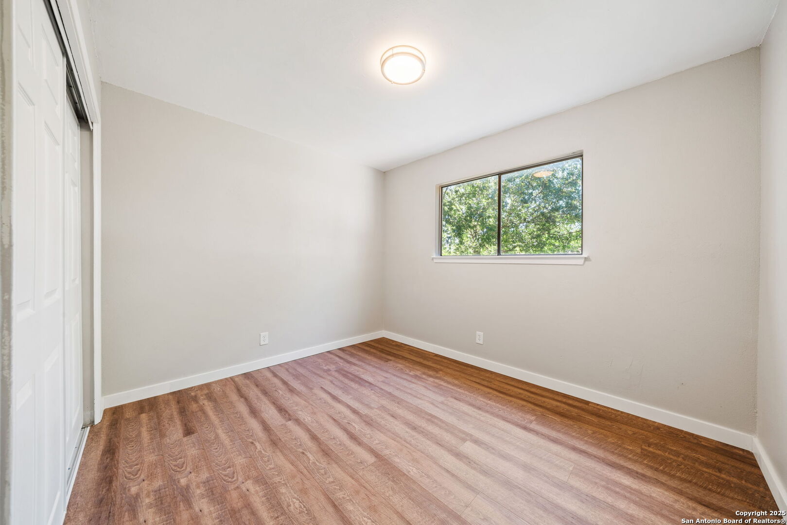 Welcome Home!! As you drive up the house instantly "pops" with the fresh paint, new siding and new roof. Upon walking through the front door the extensive remodel welcome you in with a bit of a throwback with the terrazzo floor in the entry way. The open family room/dining room has a vaulted ceiling with new luxury vinyl plank flooring offer a very comfortable area for gathering. New ceiling fans and light fixtures through the house provide a great new look and help keep you cool and air circulating through out the year. When it is time to retire for a good night of sleep the primary bedroom is a cozy retreat with a vaulted ceiling and walk in closet. As you walk through the house the fresh paint and solid wood baseboards and new flooring showcase the remodel, which extends to throughout the house. The backyard is spacious with large trees providing great shade while the large patio is covered with a new roof providing a great outdoor living space with plenty of room for a grill or smoker. This lovely home located in El Chaparral in desirable Northeast ISD withing walking distance to Northern Hills Elementary.
