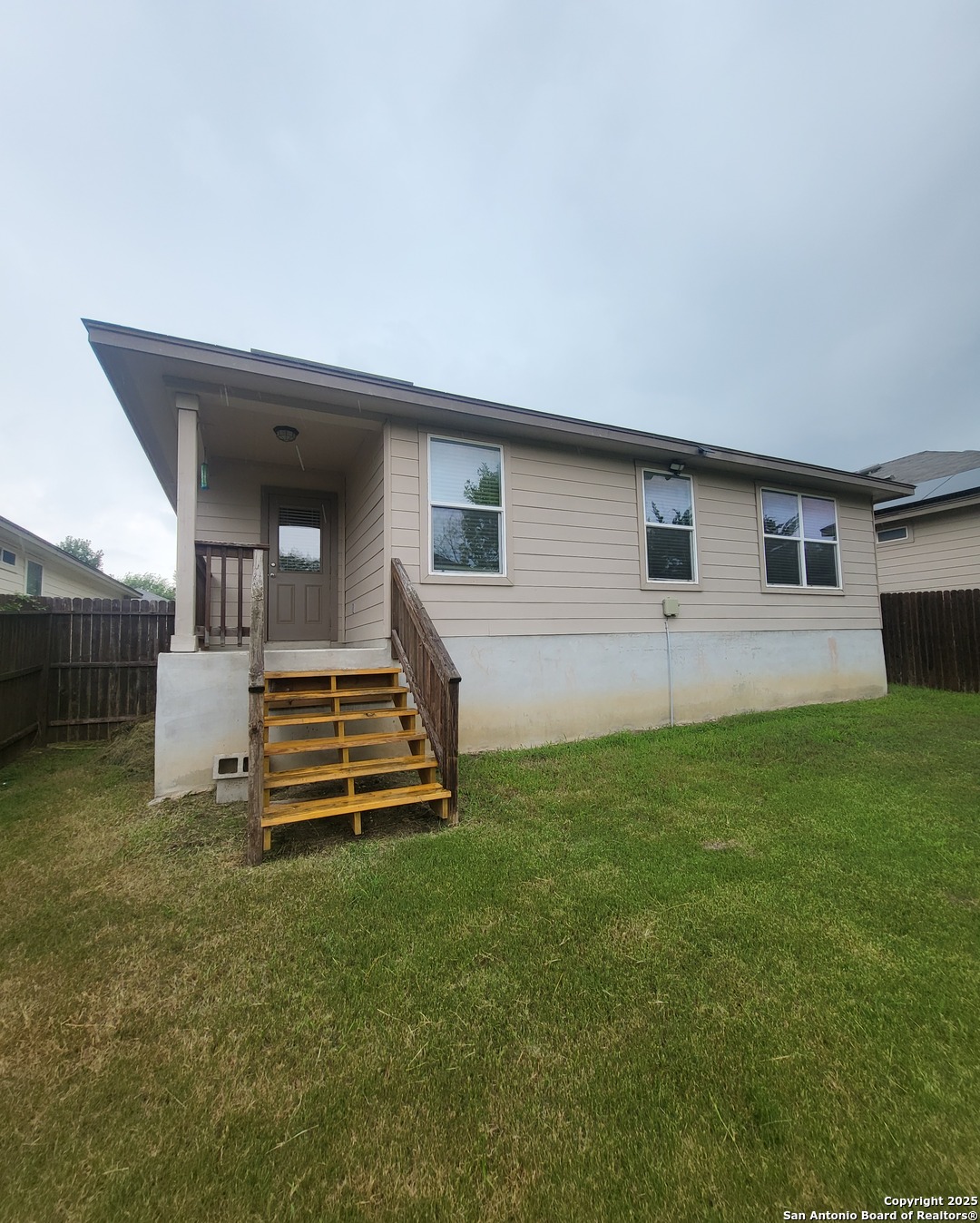 WELCOME HOME! UPGRADED GORGEOUS ONE-STORY HOME LOCATED IN A HIGHLY DESIRED NEIGHBORHOOD. 3 BEDROOMS, 2 BATHROOMS W/ AN INVITING FLOORPLAN! NO CARPET! A SERENE LIVING ROOM ENCOMPASSED W/ DESIGNER PAINT & A SPACIOUS ELEGANT KITCHEN. RECENT UPGRADES INCLUDE LUXURY LAMINATE FLOORING THROUGHOUT THE ENTIRE HOME, STUNNING GRANITE KITCHEN COUNTERTOPS, GLASS DOME SHAD PENDANT LIGHTS, ESPRESSO KITCHEN CABINETS, TONS OF RECESS LIGHTING IN EACH ROOM AND AREA OF THE HOME, AND A SLEEK CEILING FAN IN THE LIVING ROOM. ENJOY RELAXING ON THE COVERED PATIO. SPACIOUS BACKYARD PERFECT FOR ENTERTAINING. VERY NEAR 1604/HWY 151/HWY 9. QUICK DRIVE TO LACKLAND AFB/SEAWORLD/UTSA, AND ENJOY YOUR NEIGHBORHOOD RESTAURANTS AND LUXURY RETAIL SHOPPING!