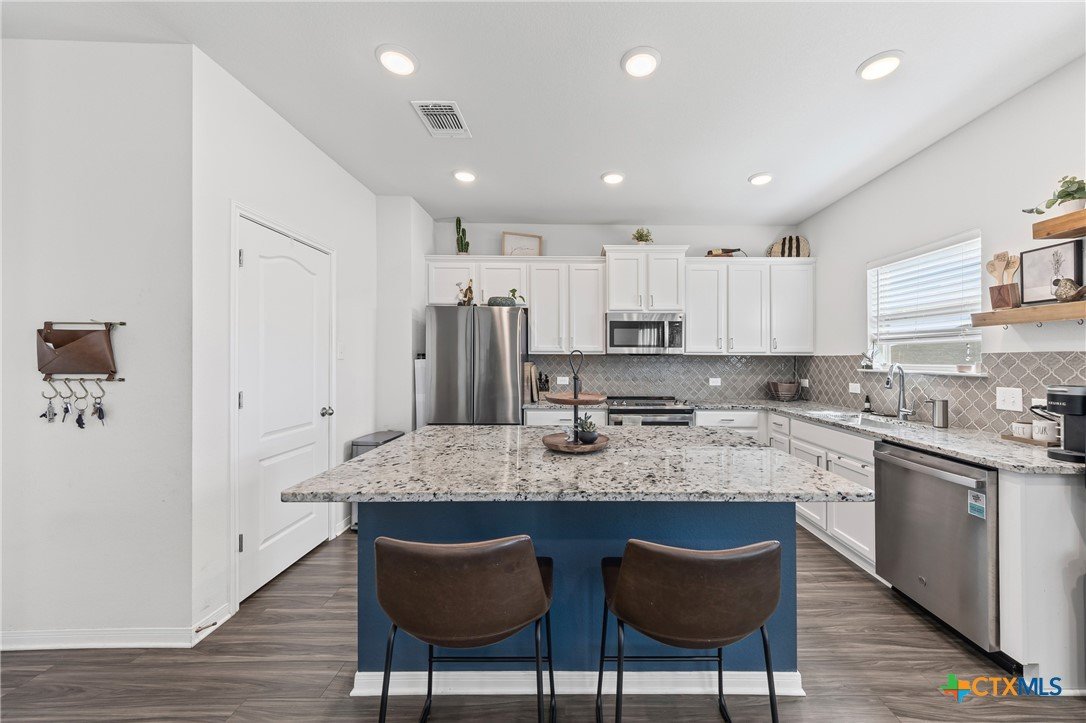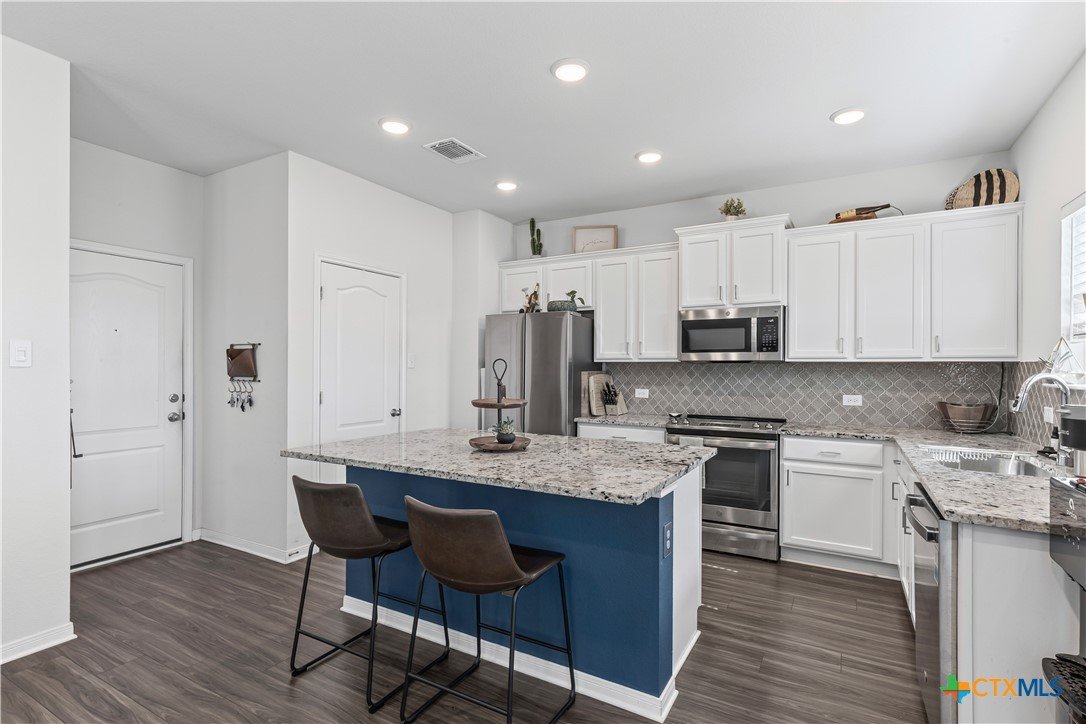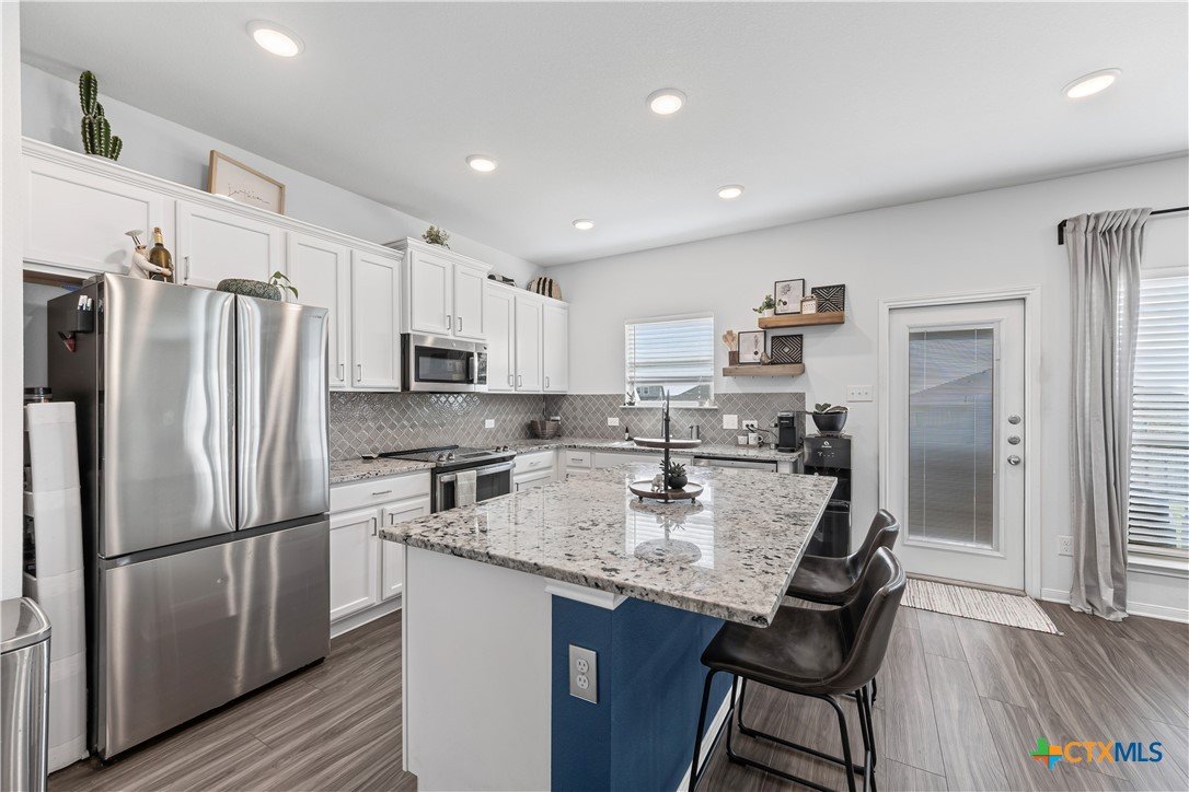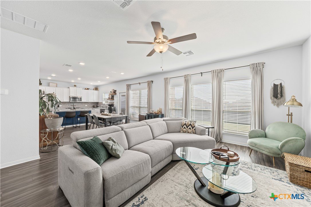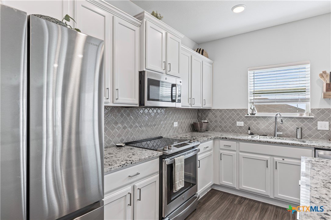 Coveted Wynn floorplan by Omega! Belton ISD! Incredibly spacious 4 bedroom/2.5 bathroom home on one of the largest lots in Westfield! Kitchen features granite counter tops, stainless steel appliances, tiled backsplash, island bar & dedicated dining area. Beautifully designed layout has dining area opening into the family room. Family room features tons of natural sunlight! Primary bedroom suite features a spacious adjacent sitting area with decorative ceiling tray and ceiling fan. Primary bathroom suite features a double-vanity, garden tub, separate walk-in shower, and a separate privacy door for toilet access. Dedicated laundry room with full-size washer & dryer connections has lots of convenient built-in shelving/storage. Yard has sprinkler system. Cozy covered back patio is perfect for morning coffee, evening wine, and family gatherings. Extra large backyard is enclosed by 6-ft wood privacy fence for your enjoyment! Refrigerator, washer & dryer are negotiable and can convey to buyer.