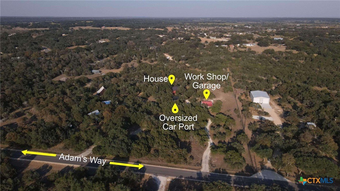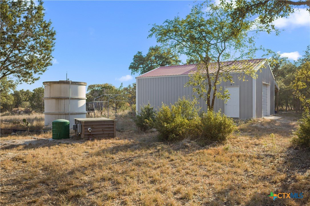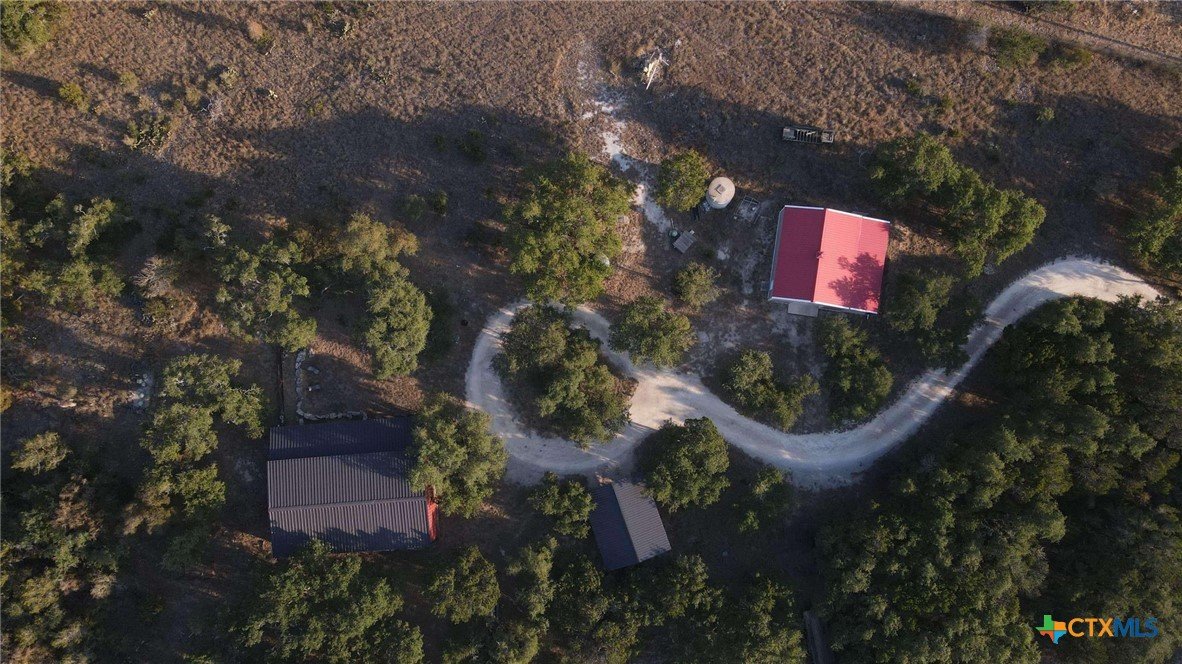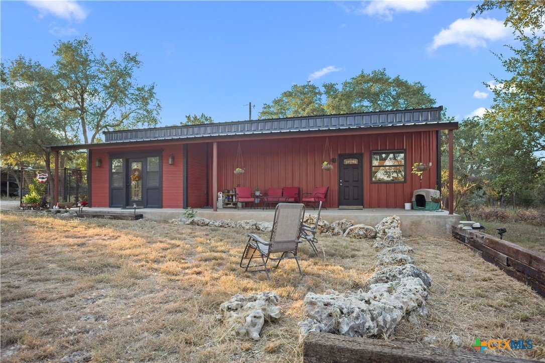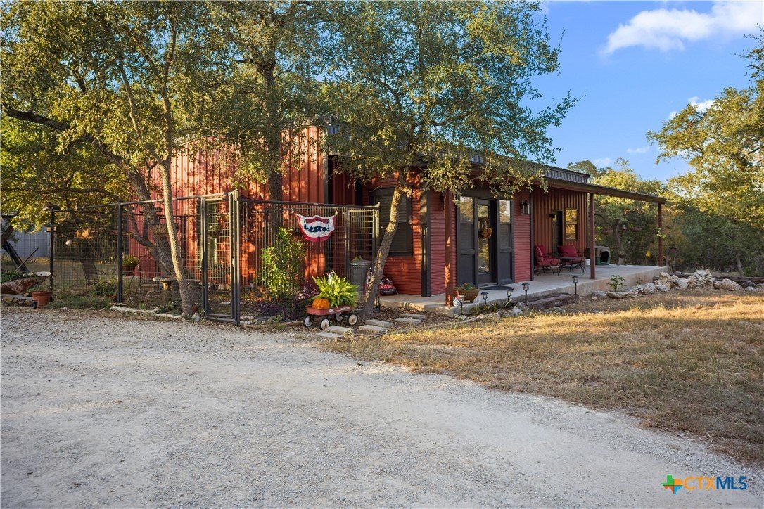Here is your opportunity to make The Texas Hill Country your Home, Vacation Getaway or Rental investment. Located in the desired Eden Ranch subdivision with no HOA! Nestled on 5 acres with beautiful mature oak trees towards the end of a cul-de-sac. This heavy duty steel building home, originally built as a guest apartment and garage, had been lovingly converted to a full two bedroom one bath guest house which can be lived in while you add your main house to the property, or perhaps update further to use as the only home on the property. Electric, well and septic were built to function for two main dwellings and a shop via underground electricity access. Fully spray-foam insulated and constructed with high quality materials help to keep the house cooler in summer and warmer in winter. There is a 720 sq. ft. metal workshop/garage, added after the renovation of the guest house, which is also fully spray-foam insulated, has a front porch and is ready for power and water and could be converted to additional living quarters. There is an oversized 500 sq ft carport to house your toys and vehicles. The entire 5 acres is fully fenced and has a beautiful wooded landscape waiting to be exposed in the back of the lot. Lots of thought and sound construction went into the design / build of this home. Concrete floors need re-staining and the price reflects this to allow buyer to choose their own preference for flooring. Washer/Dryer, Refrigerator and new Stove in recently renovated kitchen will convey with the home. Welcome to your Hill Country Dream Home! Don't miss your opportunity for this great investment.
