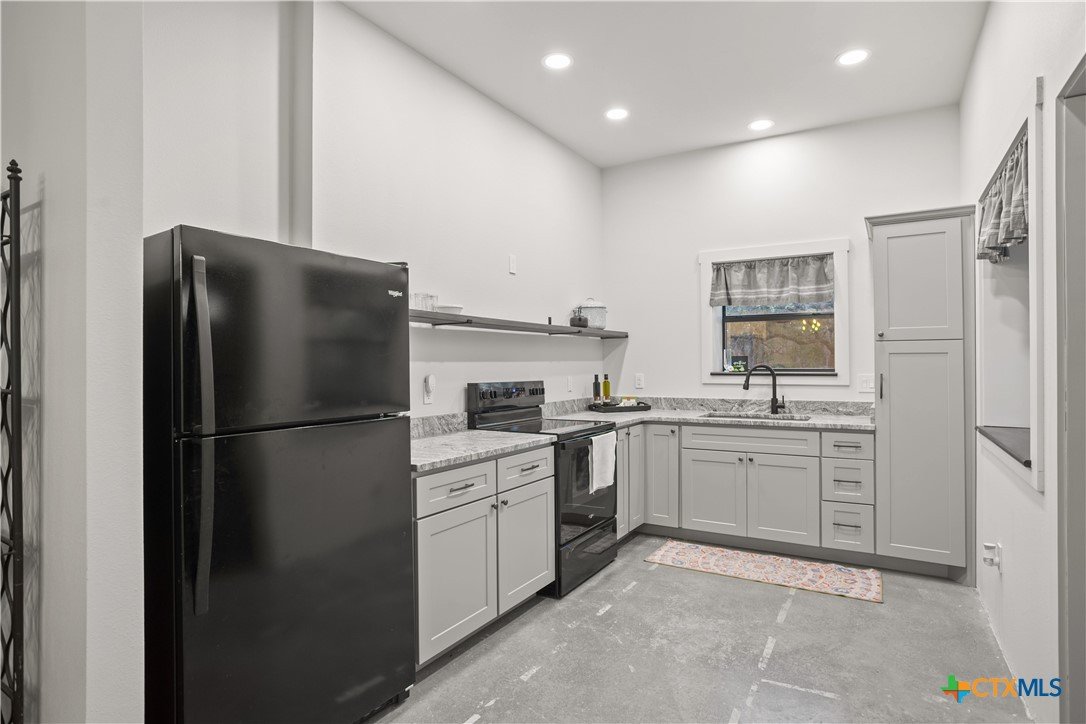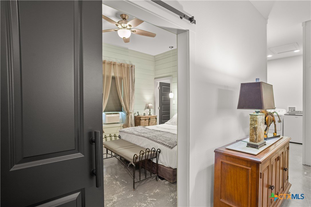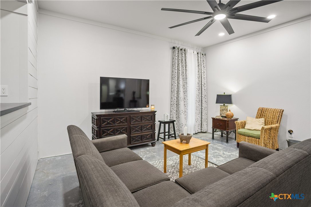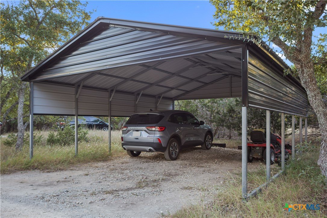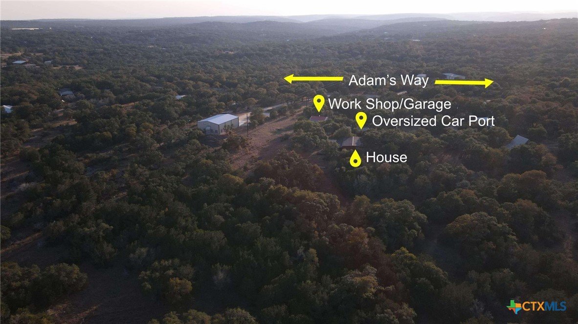 Here is your opportunity to make The Texas Hill Country your Home, Vacation Getaway or Rental investment. Located in the desired Eden Ranch subdivision with no HOA! Nestled on 5 acres with beautiful mature oak trees towards the end of a cul-de-sac. This heavy duty steel building home, originally built as a guest apartment and garage, had been lovingly converted to a full two bedroom one bath guest house which can be lived in while you add your main house to the property, or perhaps update further to use as the only home on the property. Electric, well and septic were built to function for two main dwellings and a shop via underground electricity access. Fully spray-foam insulated and constructed with high quality materials help to keep the house cooler in summer and warmer in winter. There is a 720 sq. ft. metal workshop/garage, added after the renovation of the guest house, which is also fully spray-foam insulated, has a front porch and is ready for power and water and could be converted to additional living quarters. There is an oversized 500 sq ft carport to house your toys and vehicles. The entire 5 acres is fully fenced and has a beautiful wooded landscape waiting to be exposed in the back of the lot. Lots of thought and sound construction went into the design / build of this home. Concrete floors need re-staining and the price reflects this to allow buyer to choose their own preference for flooring. Washer/Dryer, Refrigerator and new Stove in recently renovated kitchen will convey with the home. Welcome to your Hill Country Dream Home! Don't miss your opportunity for this great investment.