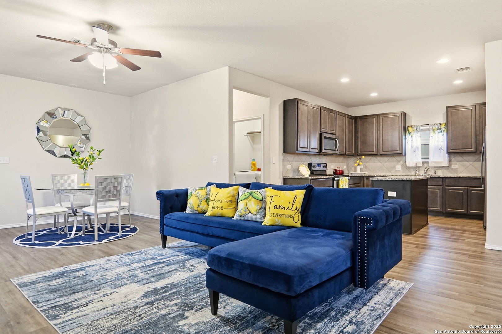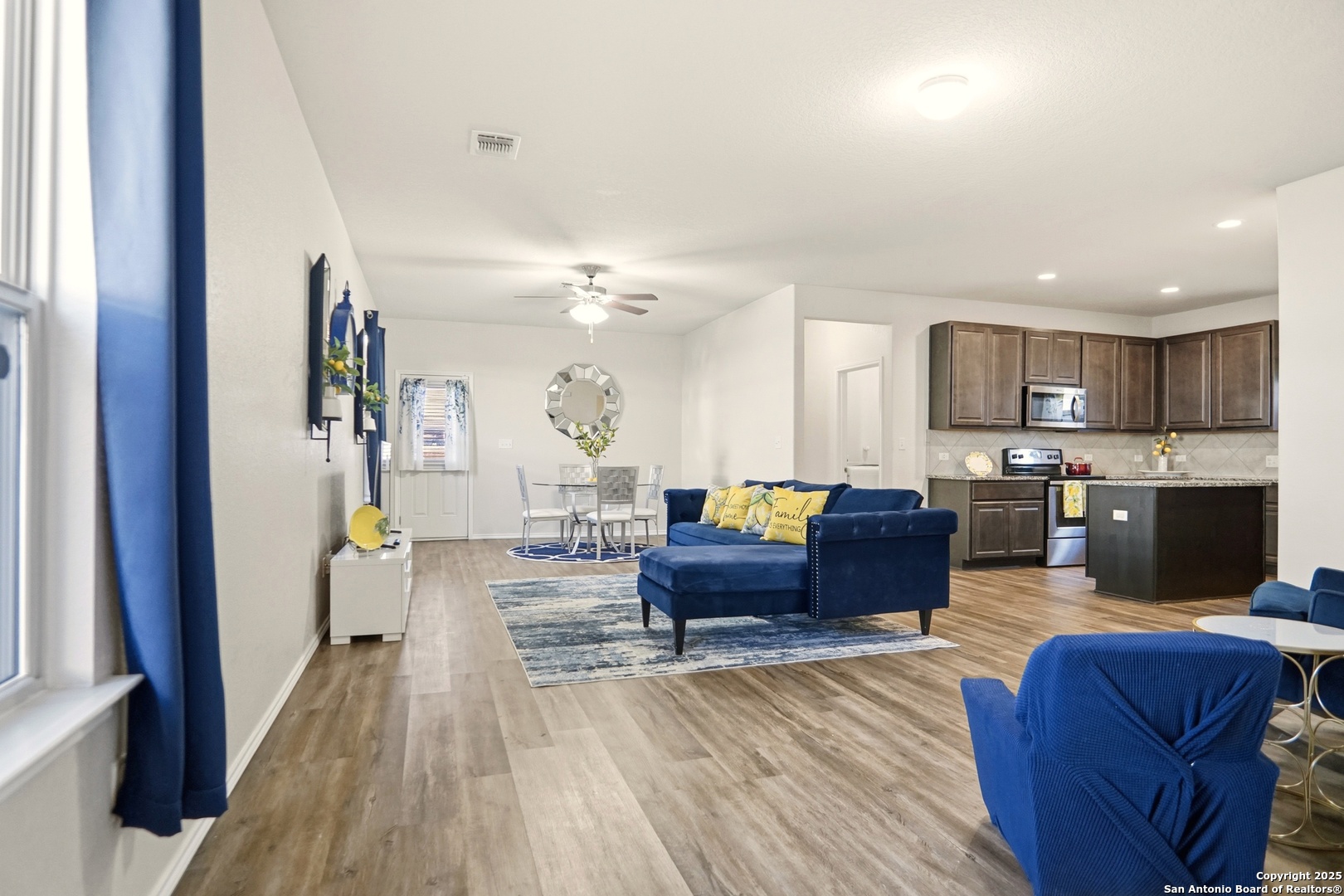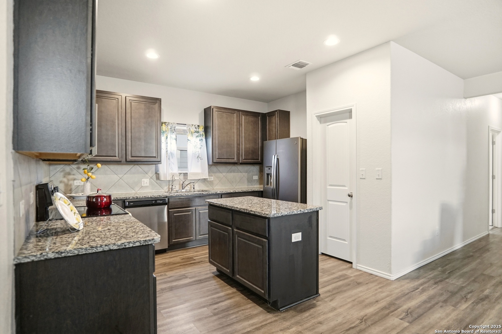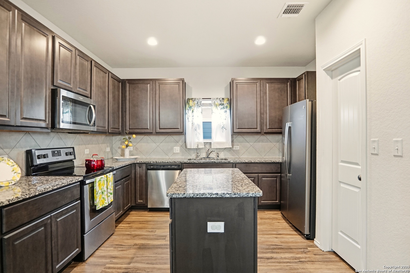 Welcome home! This beautifully maintained one-owner property is the perfect fit for first-time homebuyers or anyone looking for single-story living in a quiet, family-friendly neighborhood. The home's inviting stone exterior, covered porch, and finished garage add plenty of curb appeal. Inside, you'll find a spacious open floor plan that makes everyday living and entertaining easy. The large kitchen features dark mocha cabinets, granite countertops, and an open layout that flows seamlessly into the living area - perfect for your Holiday gatherings! The separate master features laminate flooring and situated in the back of the home for optimal privacy. Conveniently located, you will be minutes away from all of your shopping and dining needs. Pride of ownership shows throughout this well-cared-for home - move-in ready and full of charm!