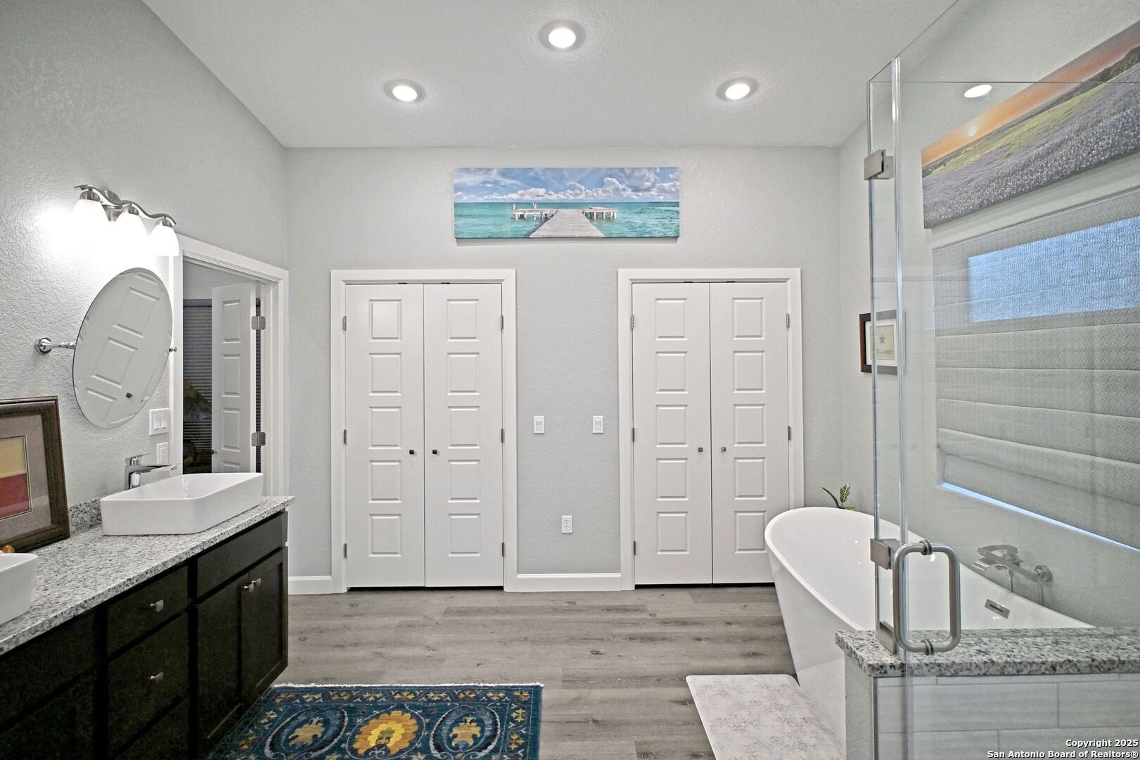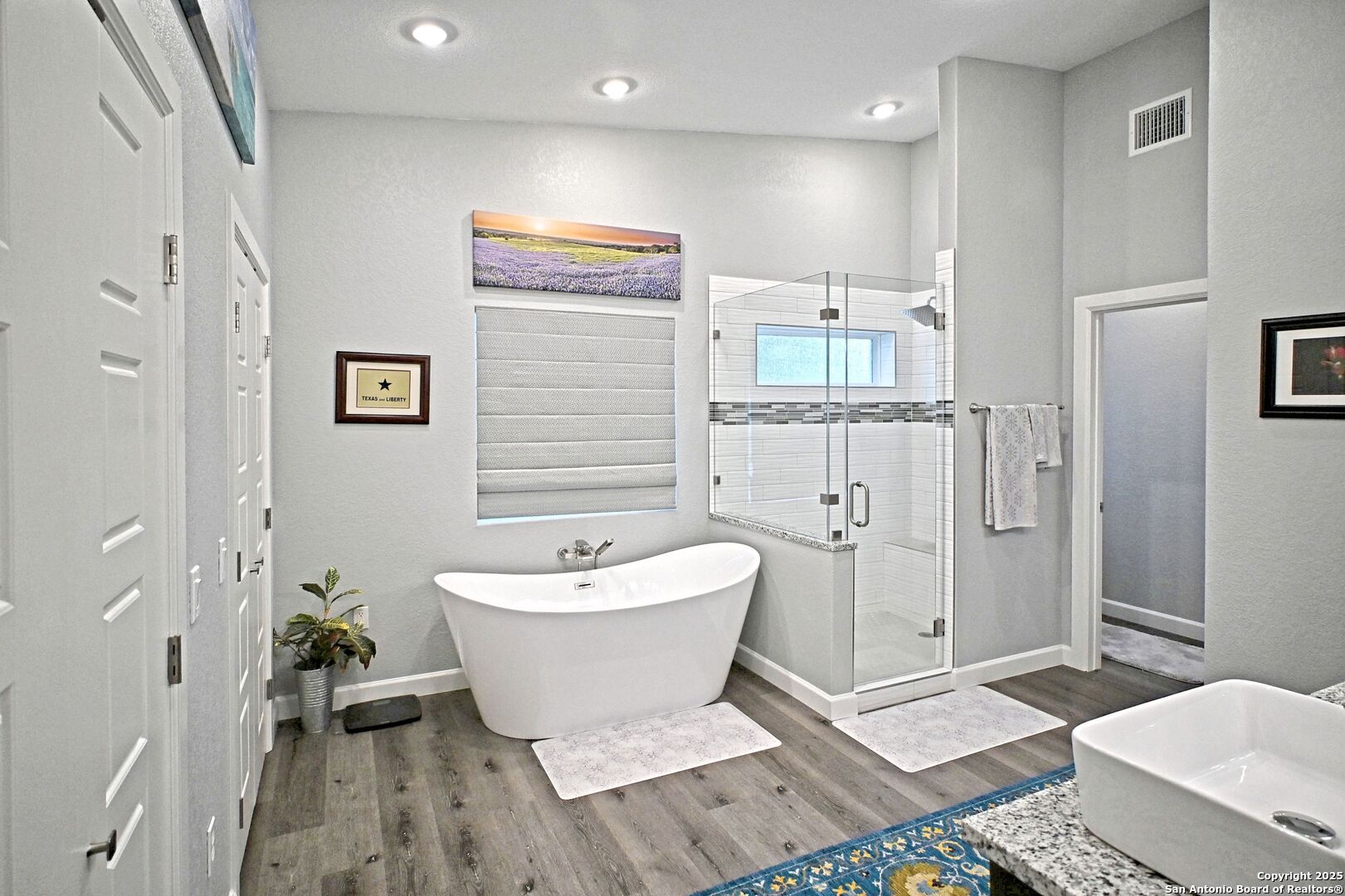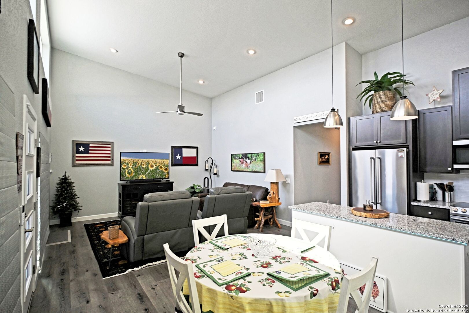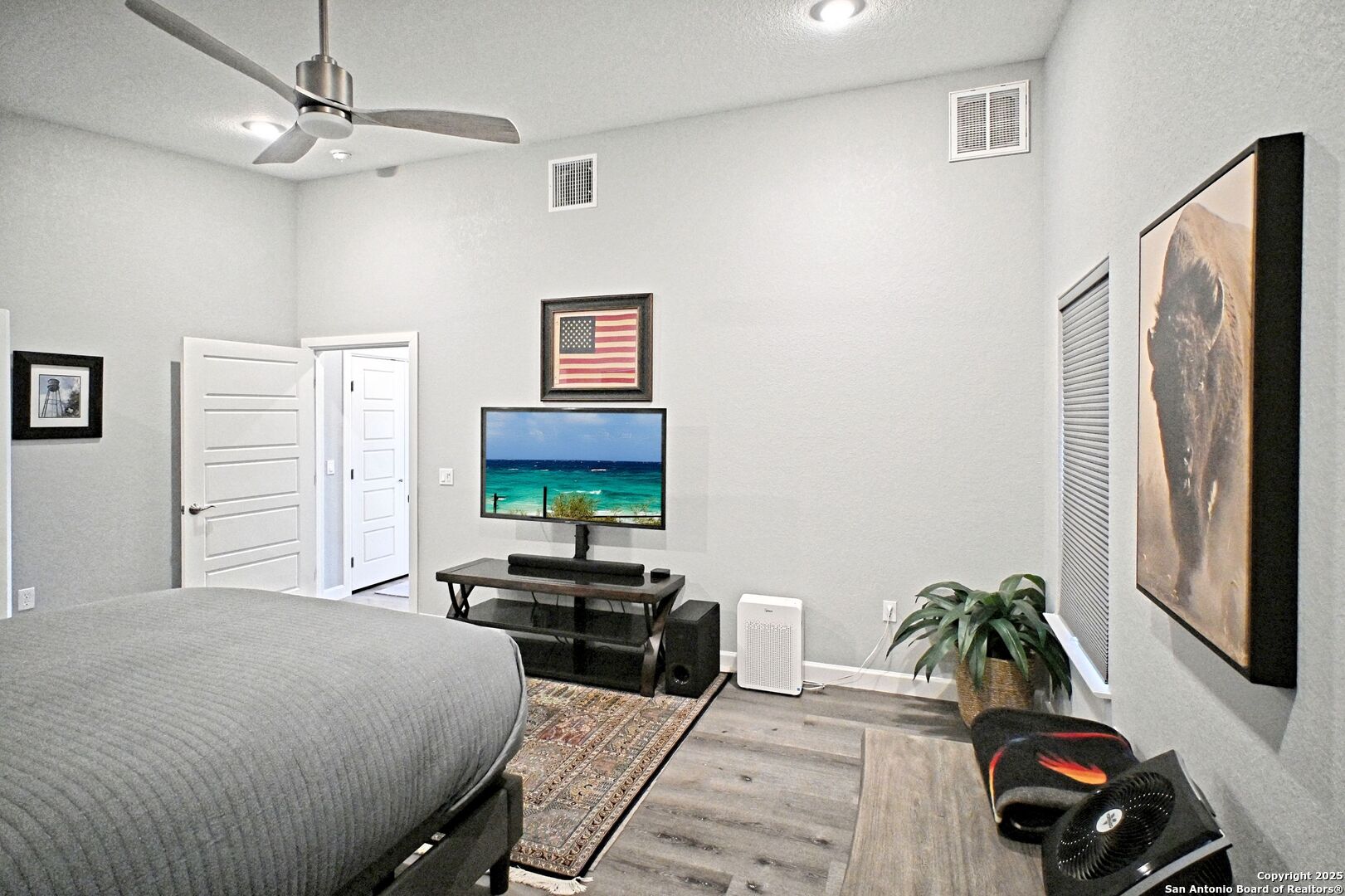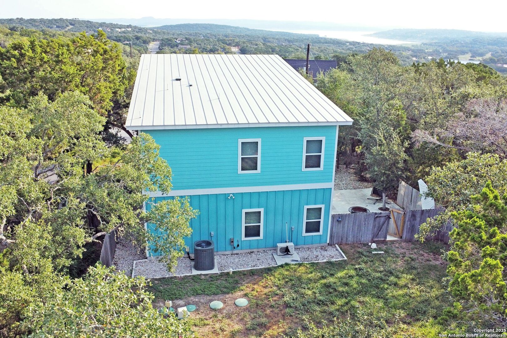 Welcome to 143 Mountainview Drive, a beautifully designed two-story home nestled in the desirable Canyon Lake Forest community. Built in 2019, this 3-bedroom, 3-bathroom residence offers 1,830 square feet of thoughtfully laid-out living space on a 0.21-acre lot. Step inside to an open-concept layout featuring a modern kitchen with granite countertops, stainless steel appliances, a large center island, and durable vinyl flooring that extends throughout much of the home. The upstairs living area is filled with natural light and showcases stunning panoramic views of the Hill Country, creating an inviting space for both relaxing and entertaining. The spacious primary suite is also located on the upper level and includes dual walk-in closets, a luxurious en suite bathroom with a separate soaking tub, walk-in shower, and dual vanities. Downstairs, you'll find a private guest or mother-in-law suite with its own entrance, bathroom, and dedicated HVAC system - ideal for visitors, extended family, or short-term rental potential. Outside, enjoy a fully fenced backyard, a metal roof for long-term durability, a one-car garage with an additional carport, and an owned water softener system. Located just minutes from Canyon Lake, this home is part of a well-maintained neighborhood with low HOA fees and access to amenities such as a pool, clubhouse, basketball court, parks, and boat ramps. Zoned to Comal ISD, with Startzville Elementary, Mountain Valley Middle, and Canyon Lake High School nearby, this home offers both comfort and convenience in a serene, nature-filled setting. Whether you're looking for a primary residence, vacation getaway, or income-producing property, 143 Mountainview Drive is a rare find with tremendous value and versatility.