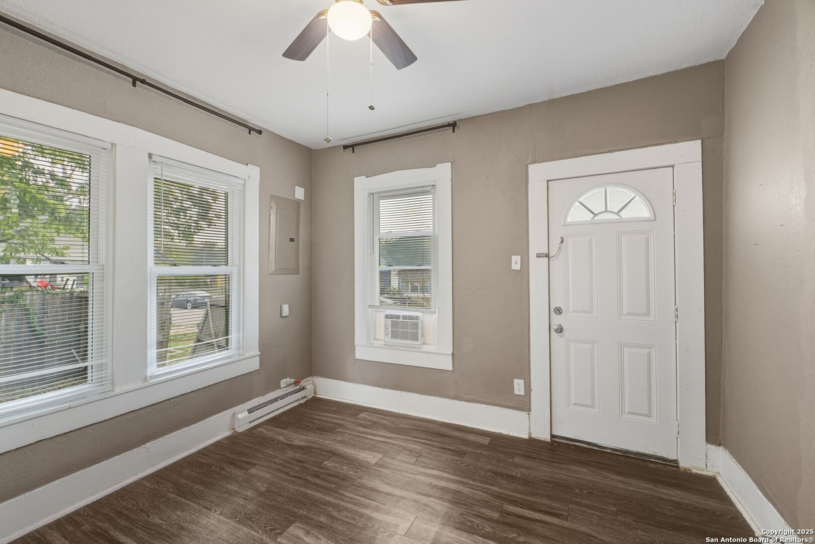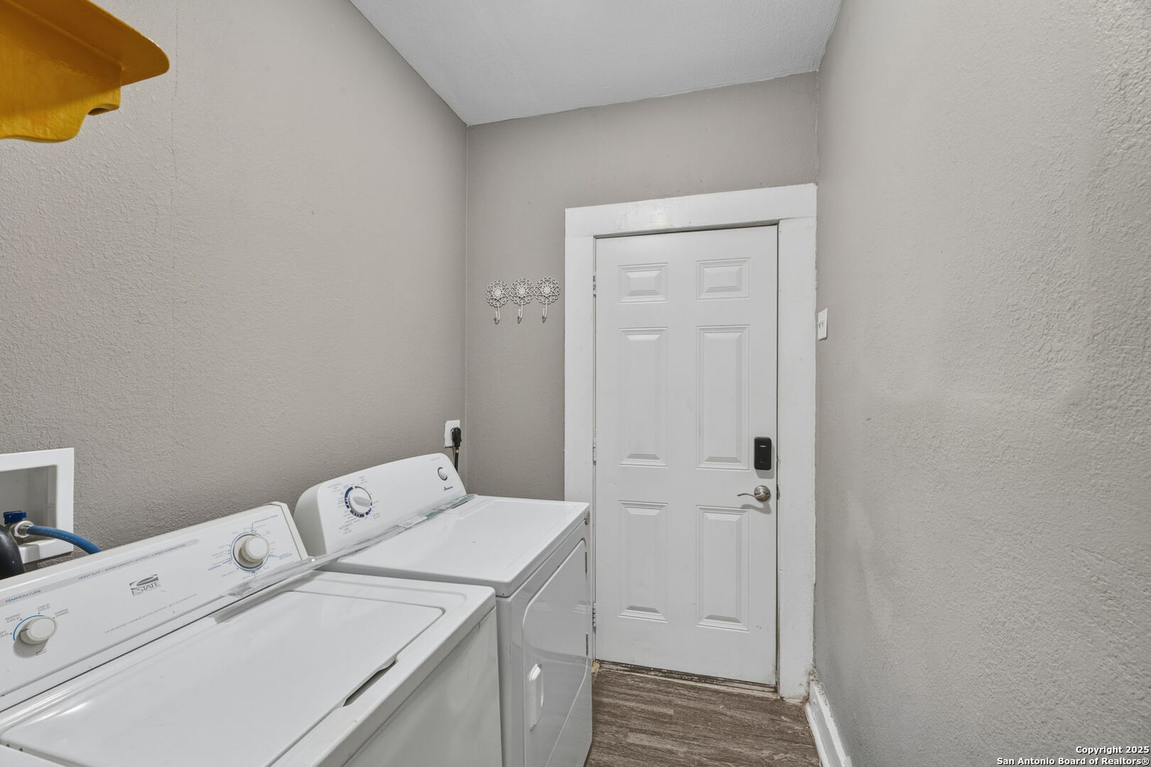 Check out this 2 bedroom 2 bath home in Denver Heights Area, just a few miles from downtown SA ; perfect for easy dining and shopping runs. The open layout connects the living, dining and kitchen areas and a roomy laundry space sits just past the kitchen (washer + dryer included). The primary bedroom includes a bonus room that could work as an office, large closet, or even a nursery. The backyard is spacious and great for gatherings or pets.
