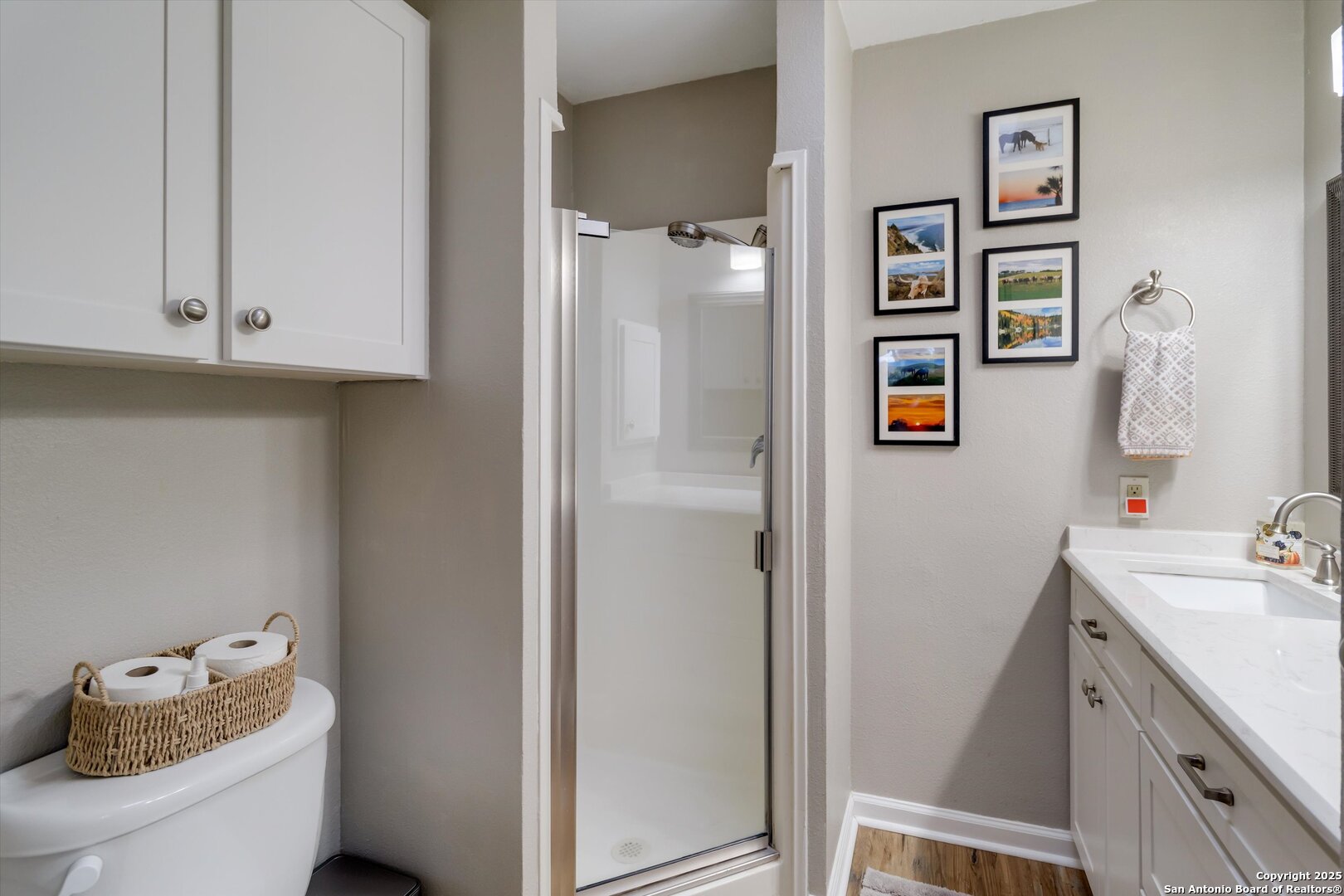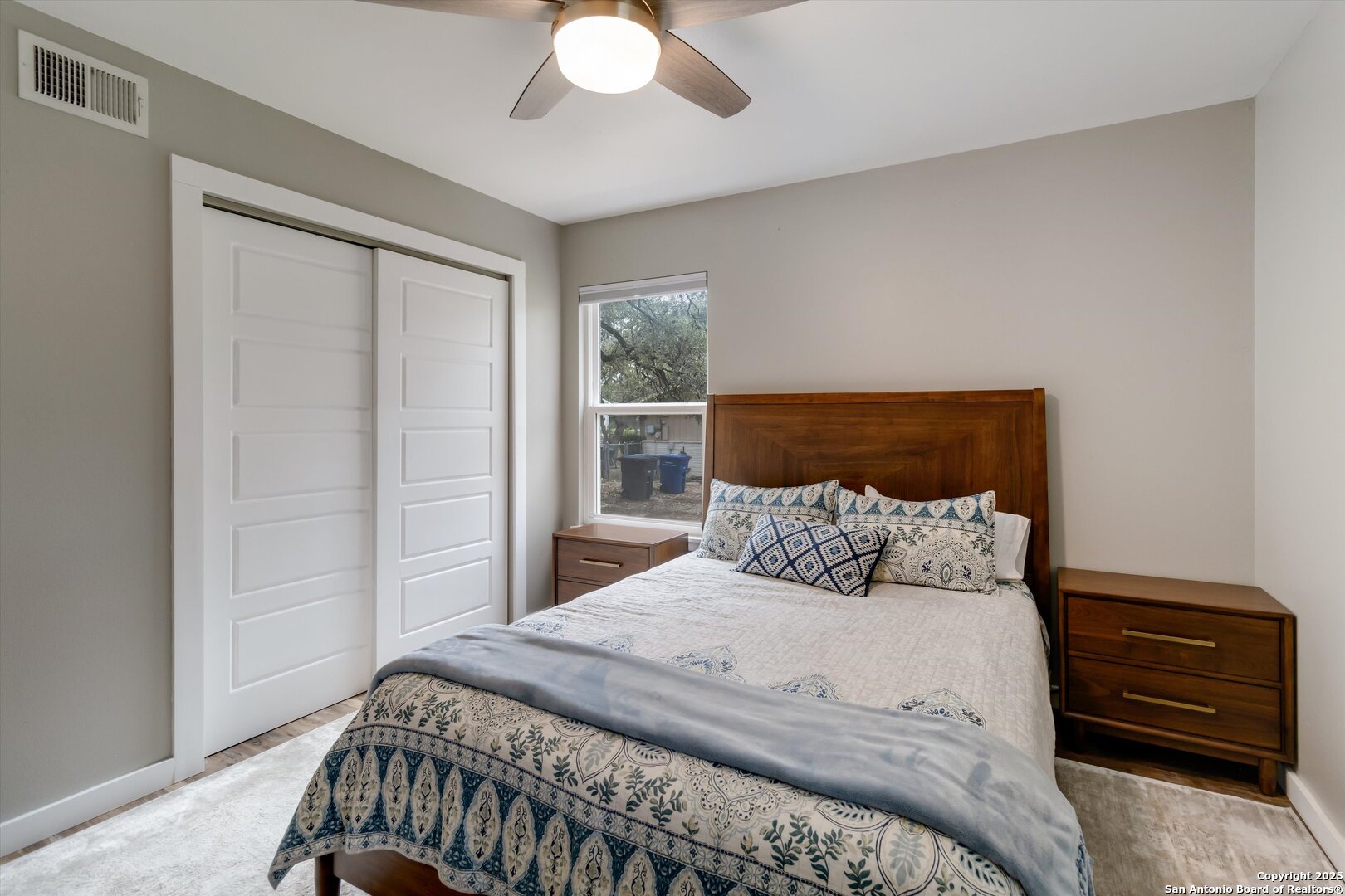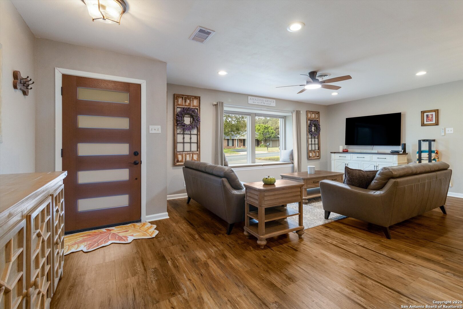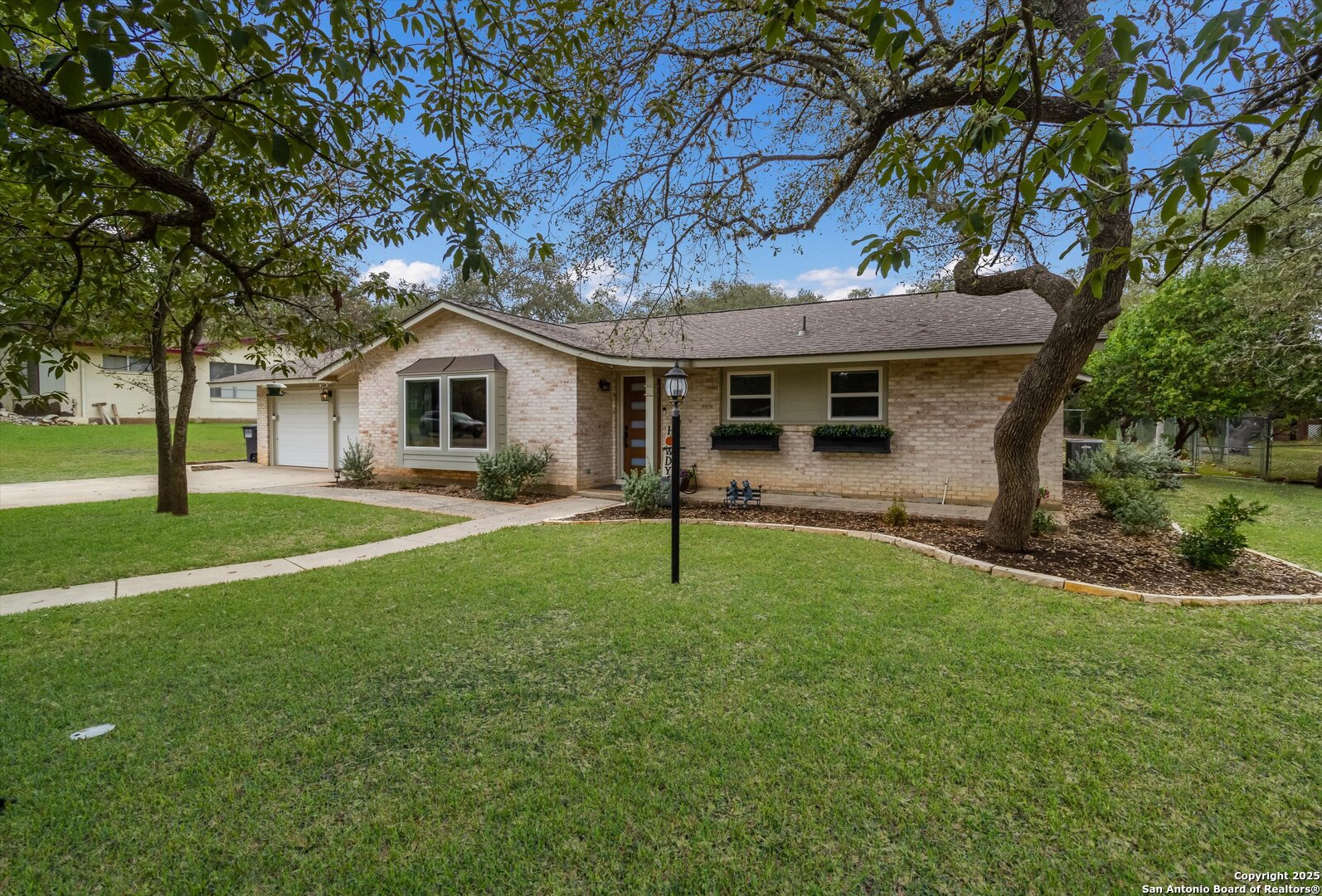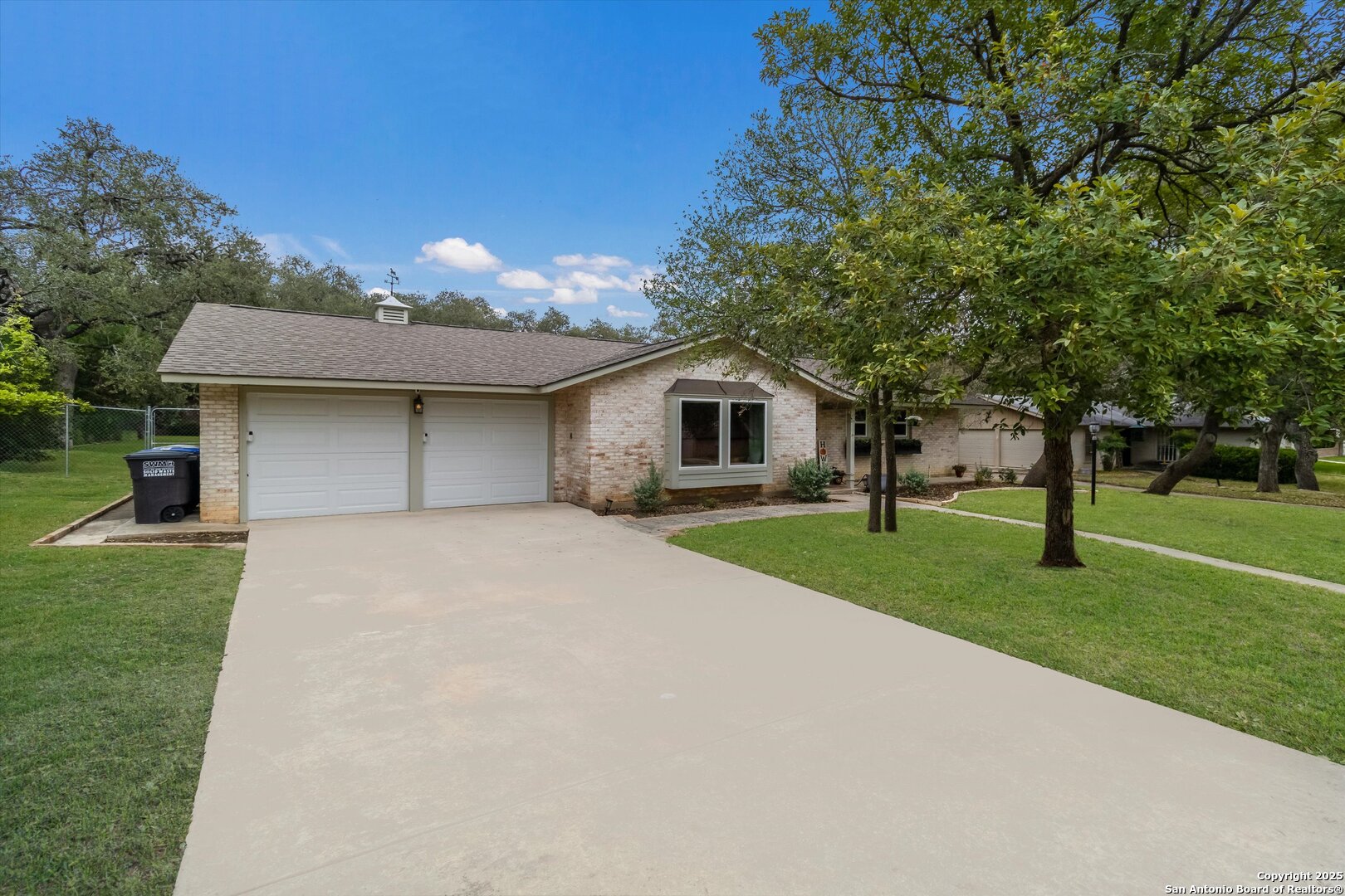 Welcome to this inviting one-story home on a spacious half-acre lot in a prime location just off 281. Pride of ownership shines throughout, as the home has been beautifully remodeled over the years. Enjoy luxurious touches like quartz countertops, new flooring, fresh interior and exterior paint, and a recently installed front door. With three bedrooms and three full baths, there's plenty of space for everyone. Entertain effortlessly in the open living area off the kitchen, complete with a large dining space and an island with extra seating. The cozy family room, featuring a fireplace, is perfect for relaxing evenings. The updated kitchen boasts modern appliances and a gas stove, making it a joy to cook in. Step into the private backyard, where mature trees provide shade and a wonderful setting for gatherings. This home truly is a stunning and welcoming retreat.