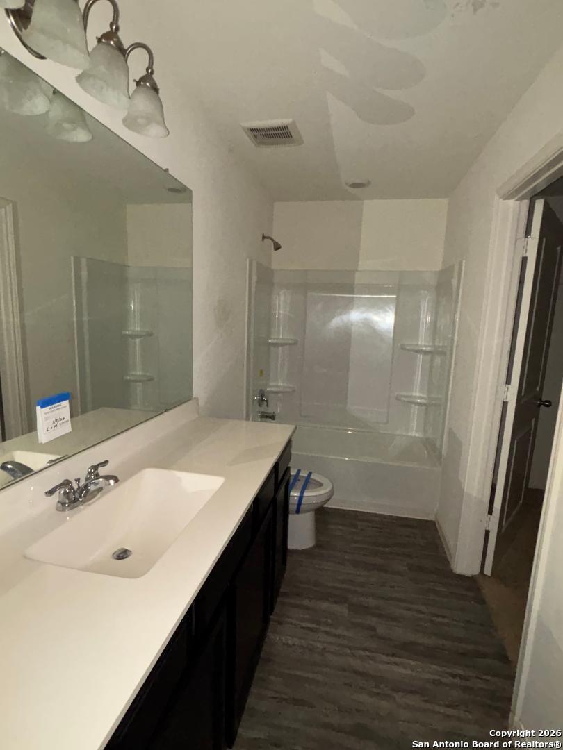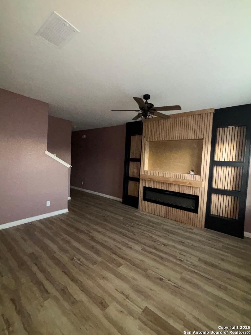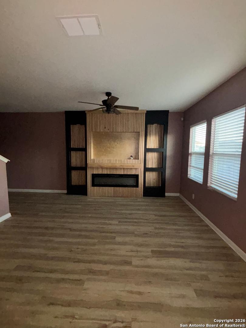 Located at the Trails of Culebra in Northwest San Antonio, the community offers a resort-style pool with a cabana and easy access to 1604 and 151 Hwy, and minutes from popular attractions. This like-new home offers a 3-bedroom, 2.5-bath home built in 2021. Custom-built-in electric fireplace with TV stand and bookshelves. Open floor plan with a large family room opens to an eat-in kitchen. Granite Countertops, nice size pantry, and downstairs storage. Large primary room upstairs with a ceiling fan, a walk-in closet, and a full bath. Experience the perfect blend of style and functionality.