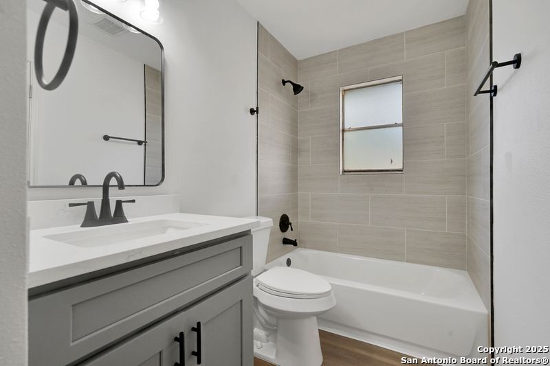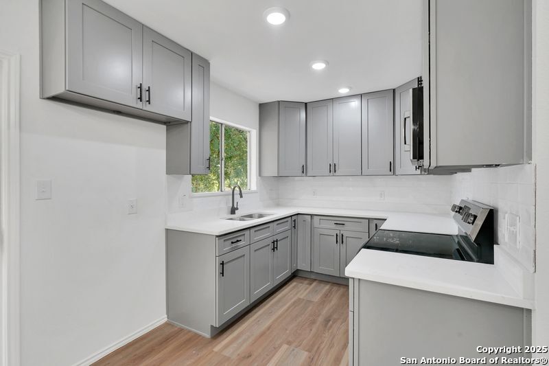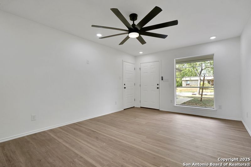 Great split floor plan 4 bedroom home with many new mechanical items and cosmetic finishes! Centrally located to many conveint daily or weekend end points. New HVAC, cabinets, electrical main and subpanel etc., plumbing fixtures & cut valves, flooring, roof, interior & exterior paint and more! Deep 1 car garage. Water softener connection. Large front and back yard with patio slab for gatherings. Quartz countertops.