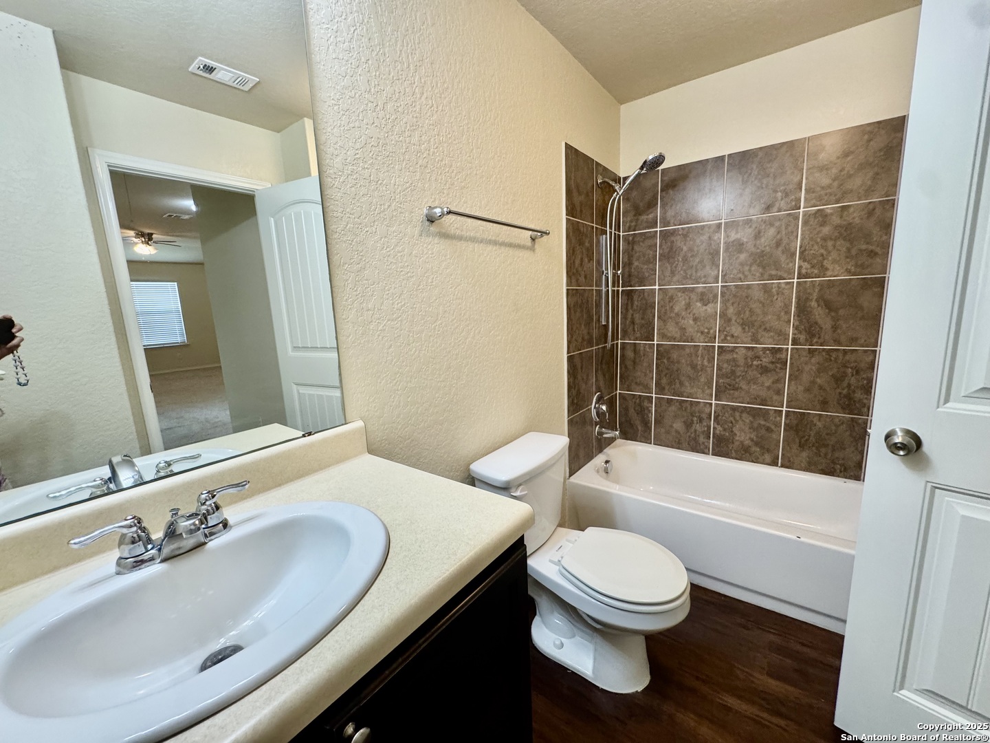 Great location with easy access to major highways, shopping, restaurants, and more! Open, flexible floor plan features high ceilings, separate dining room, good-sized living room. Neutral paint and flooring throughout to compliment any decor. Open kitchen with breakfast bar. Good-sized master boasts nice walk in closet and full bath featuring double vanities and separate tub and shower.