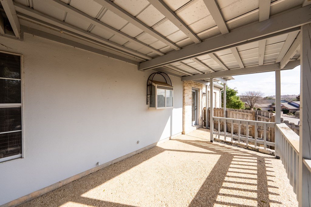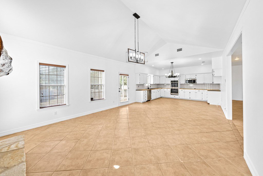 Nestled among mature trees in the Oaks of Riverhill, this beautifully updated single-story home offers an ideal location just minutes from Kerrville's shopping, dining, and premier medical facilities. Inside, warm design elements—including live-edge butcher block countertops and fresh interior finishes—create inviting spaces that feel instantly welcoming. The kitchen opens seamlessly to the main living area, allowing conversation to flow effortlessly whether hosting friends or enjoying quiet evenings beside the stone fireplace. A second living and dining area adds valuable flexibility, ideal for formal gatherings, a cozy den, home office, or additional entertaining space. High ceilings and abundant natural light enhance the home's open, airy feel throughout. A private courtyard invites slow mornings with coffee or relaxing sunset evenings, while the low-maintenance xeriscaped yard allows more time to enjoy what matters most. Residents appreciate Riverhill's scenic walking areas, tranquil pond, and optional access to nearby country club amenities including golf, dining, and social activities, all within one of Kerrville's most established communities. Welcome home.