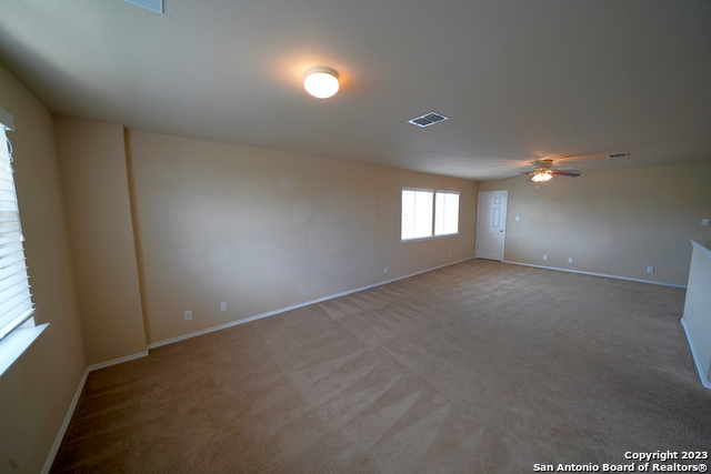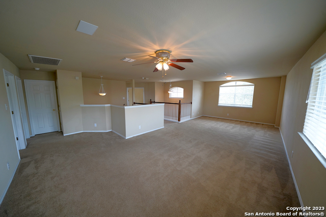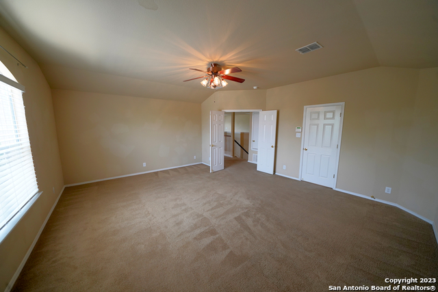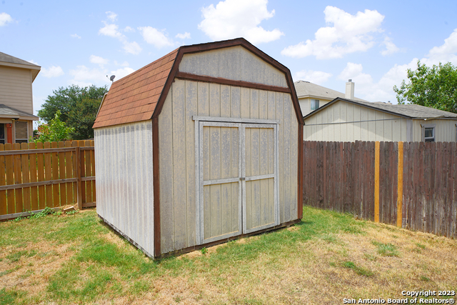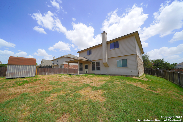 Spacious two-story home with a three-car garage is now available in the coveted Falcon Ridge subdivision of Cibolo, TX. This 4-bedroom, 3-bathroom home is 3034 SQFT and includes dual living areas, a formal dining area, a breakfast area, a downstairs bedroom, and an additional game room upstairs. The family room is open to the kitchen and features a wood-burning fireplace for additional ambiance. The kitchen includes matching stainless steel appliances and connects to an oversized pantry and utility room that is perfect for all of your needs. The master bedroom is located upstairs and includes a full en-suite bathroom that features double vanities, a large garden tub, and a separate shower. The additional secondary bedrooms are also very spacious upstairs. This house sits on a large corner lot, and the backyard includes a covered patio along with an additional storage shed. Highly rated SCUC-ISD and close commute to Randolph AFB. Will be a pleasure to show!