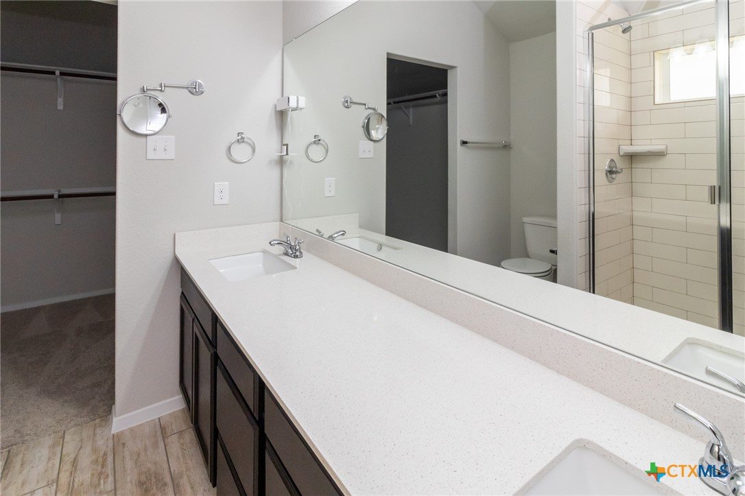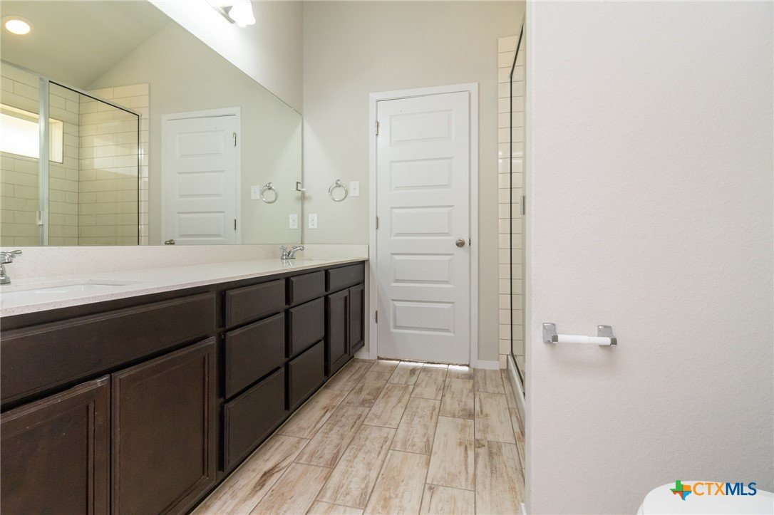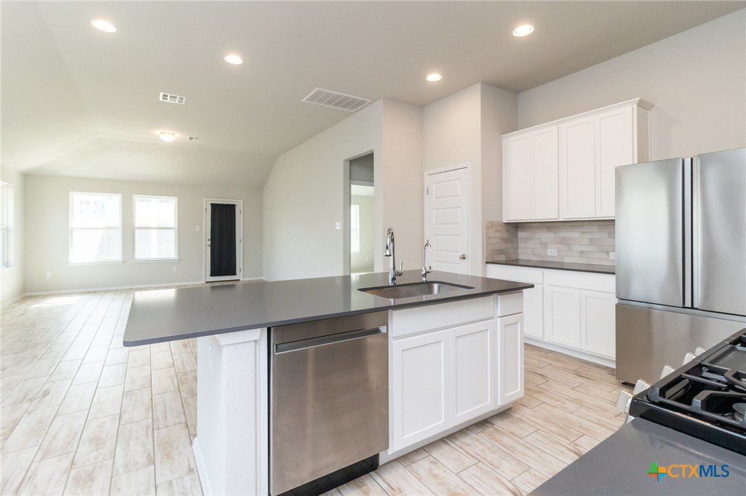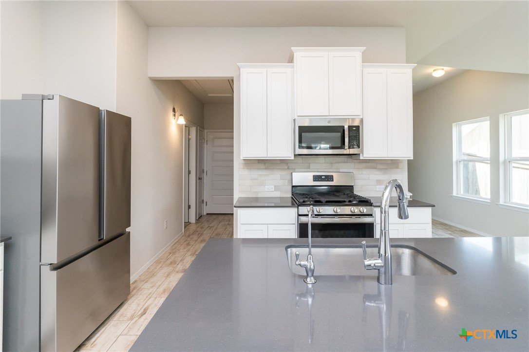 Welcome to your new 3/2 home located perfectly in between San Marcos and New Braunfels Texas. This 2021 Brohn built home has been immaculately maintained. Solar panels have been installed making your utility bills less than half of other homes in the area. The home also includes a new water softener and in-ground irrigation system. The interior boast an open floor plan, tile wood floors, large kitchen island, soft close cabinets, walk-in laundry room, stainless steal appliances and private primary suite. The exterior has a covered patio and is a ready for your garden beds, playscape, and backyard dreams to come to life! The home is located in the Trace community and includes a resort style pool, sport courts, bike/hike trails, playground, and an elementary school within the neighborhood. This property has quick access to highway 35 and is 5 minutes to the famous San Marcos Outlet mall, 10 minutes to Texas State campus, 15 minutes to Gruene, New Braunfels, & Kyle, 45 minutes to Austin and just under an hour to San Antonio. Whether you're looking for a great investment opportunity or a primary residence in a quiet neighborhood, this property is a blank slate ready for you to make it your own.