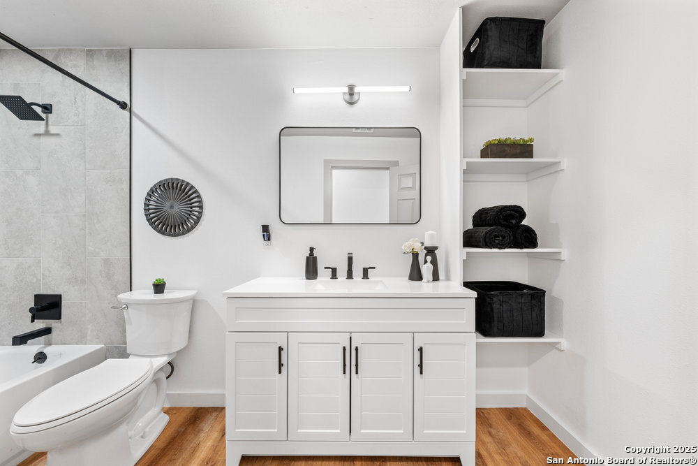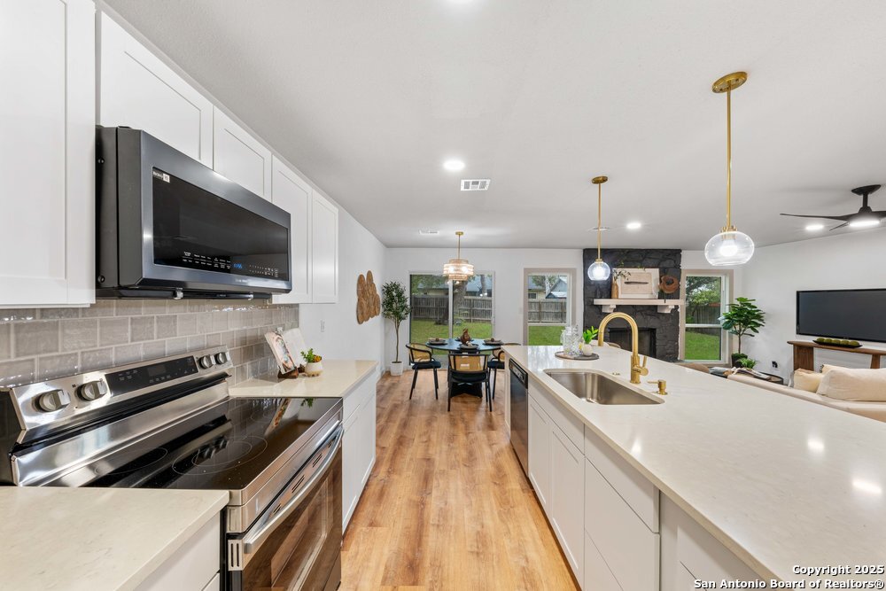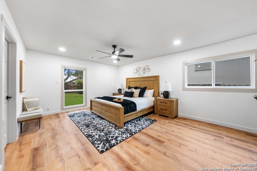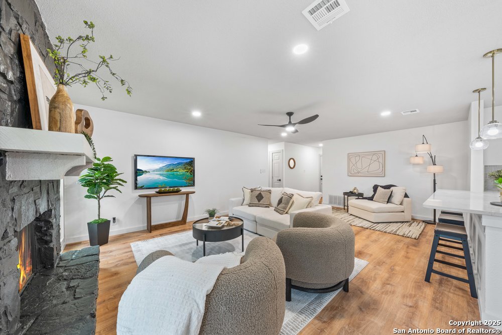 Step into The Briar Haus, a refreshed and thoughtfully improved home in the desirable 78247 zip code. This 3 bedroom, 2 bathroom residence, just under 1,440 square feet, offers a cohesive blend of modern comfort and easy maintenance design. Inside you will find luxury vinyl plank flooring throughout, crisp Sherwin Williams paint on both the interior and exterior, and new cabinetry with quartz countertops in the kitchen. The home also comes equipped with updated electrical fixtures including recessed lighting, new plumbing fixtures, and a full set of new Samsung and Whirlpool appliances. The bathrooms feature contemporary finishes, and the primary suite includes a walk in shower and a spacious walk in closet. Situated in a community with no HOA and convenient access to shopping, dining, and green space, The Briar Haus is within easy reach of major retail centers and the nearby parks and amenities common to 78247. If you appreciate move in ready value, quality upgrades, and a location that balances convenience and community, this home deserves your attention.