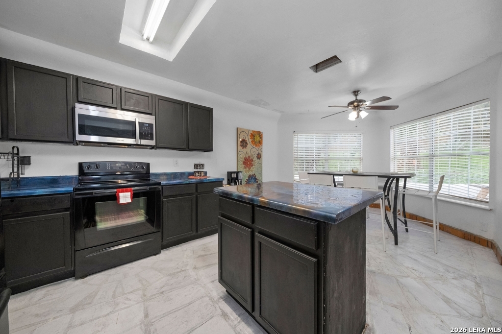 Tucked away on a peaceful, oversized cul-de-sac lot, this delightful Spanish-inspired home radiates warmth and timeless character. Featuring 4 spacious bedrooms and 2.5 bathrooms, the two-story layout provides plenty of room for comfortable everyday living. All bedrooms are located upstairs and offer generous proportions, along with a large family room that can easily serve as a game room or flexible gathering space. Sunlight pours through the windows, creating a bright and welcoming atmosphere throughout. The kitchen is designed to impress, offering extensive cabinet storage and ample counter space for cooking and entertaining. Exit outside to a sprawling backyard with limitless potential-ideal for gardening, hosting guests or simply relaxing outdoors. Modern upgrades enhance the home's appeal, including a Sensi WiFi thermostat with smart-device programmability, a newly installed backyard fence, Ring camera security, and a quick-set smart lock for easy access. Recent improvements such as updated flooring, refreshed bathrooms and new ceiling fans further elevate the space. Blending classic charm with thoughtful modern updates, this home is a true retreat with artistic flair.