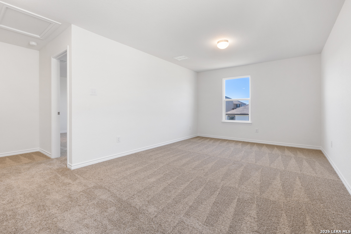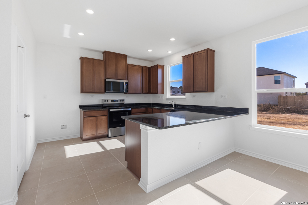 Step into comfort and style with this thoughtfully designed home featuring 9-ft. first-floor ceilings and a versatile den with double doors. The kitchen shines with Whirlpool stainless steel appliances, Woodmont Cody 42-in. upper cabinets, granite countertops in Uba Tuba, and an extended breakfast bar. Relax in the primary bath with upgraded cabinets and a 42-in. shower with Daltile tile surround. Decorative touches include a Carrara-style entry door, Kwikset Polo interior hardware, Daltile ceramic tile flooring in the kitchen and great room, and vinyl plank flooring in the baths. Enjoy a wireless security system, automatic sprinkler system, and fully sodded yard.