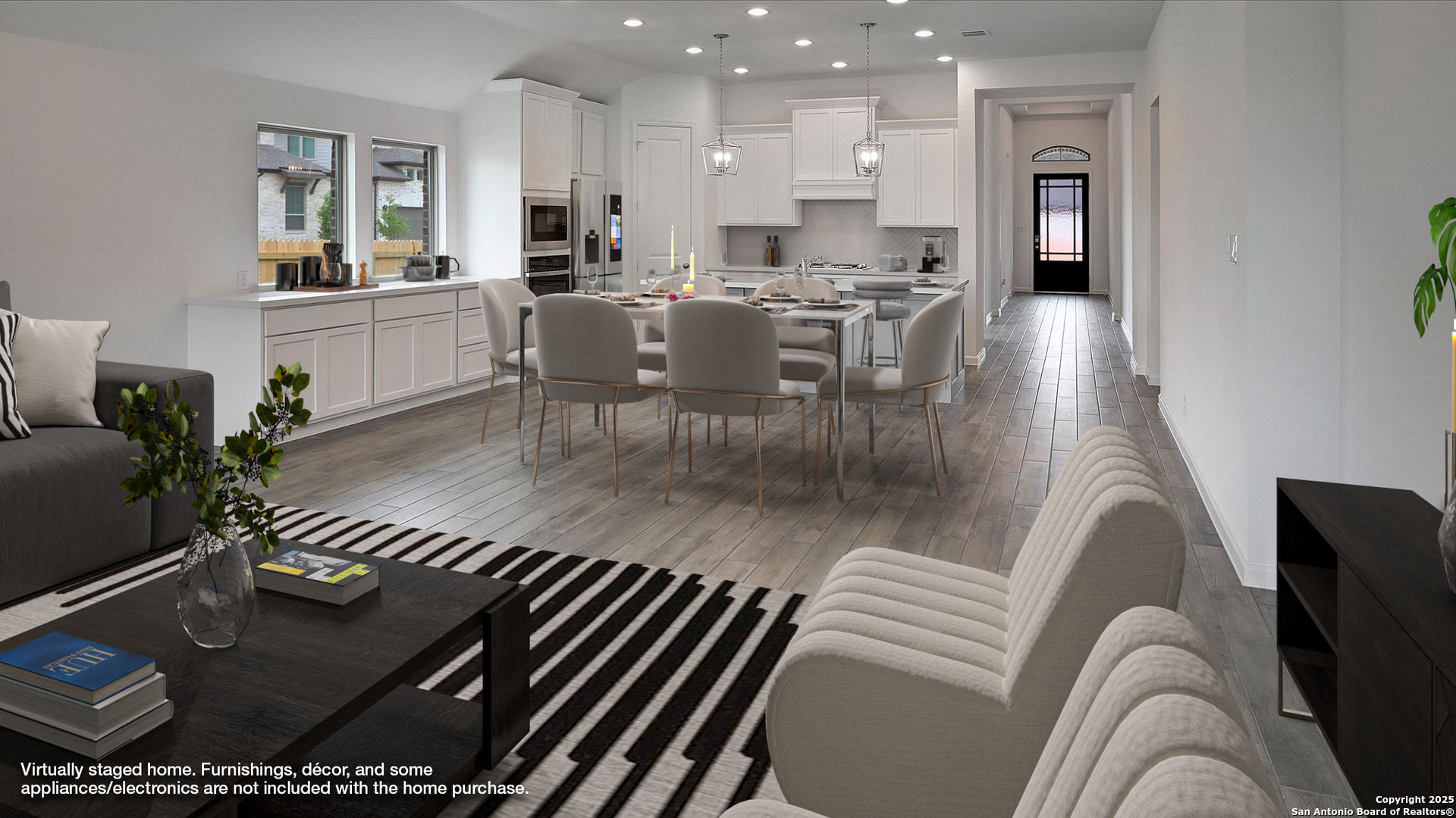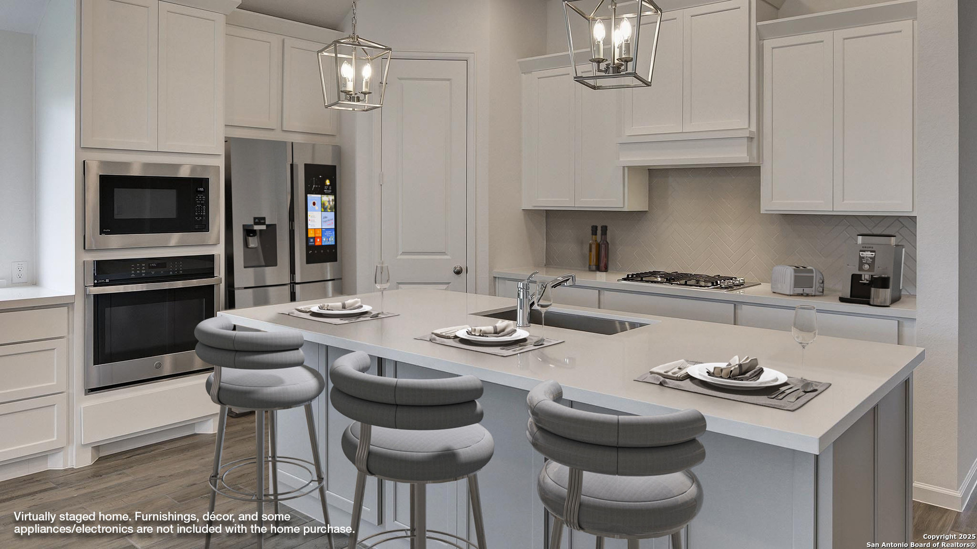 READY FOR MOVE-IN! Extended entry with 13-foot ceiling leads to open kitchen, dining area and family room. Kitchen offers generous counter space, corner walk-in pantry and island with built-in seating space. Dining area flows into family room with wall of windows. Game room with French doors. Primary suite includes double-door entry to primary bath with dual vanities, garden tub, separate glass-enclosed shower and two walk-in closets. Secondary bedrooms feature walk-in closets. Extended covered backyard patio and 5-zone sprinkler system. Mud room off three-car garage.