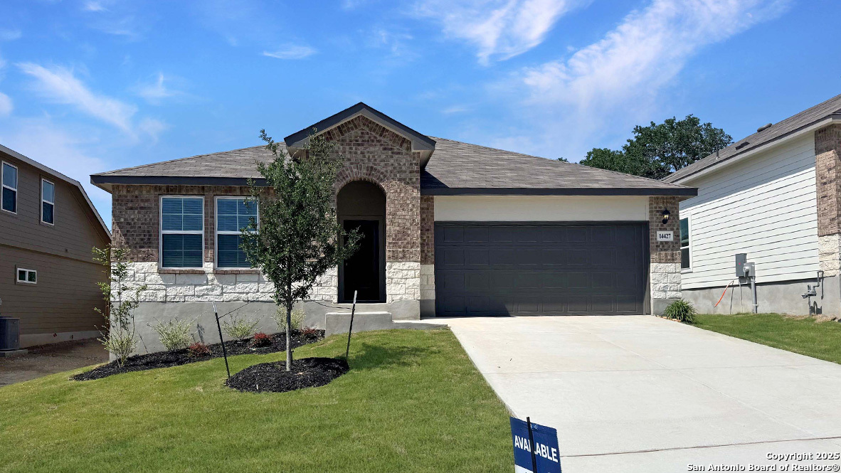 Introducing The Lakeway floorplan, a stunning single story home located in Riverstone at Westpointe in San Antonio, TX. The Lakeway is sure to impress with its classic front exteriors, 2-car garage and 2034 square feet of living space spread across 4 bedrooms, 3 bathrooms and a study. As you enter the spacious foyer you'll see the open study, a guest bedroom, and second full bath at the front of the home. Passing through the foyer, you'll find yourself in the grand combination dining room, kitchen, & li