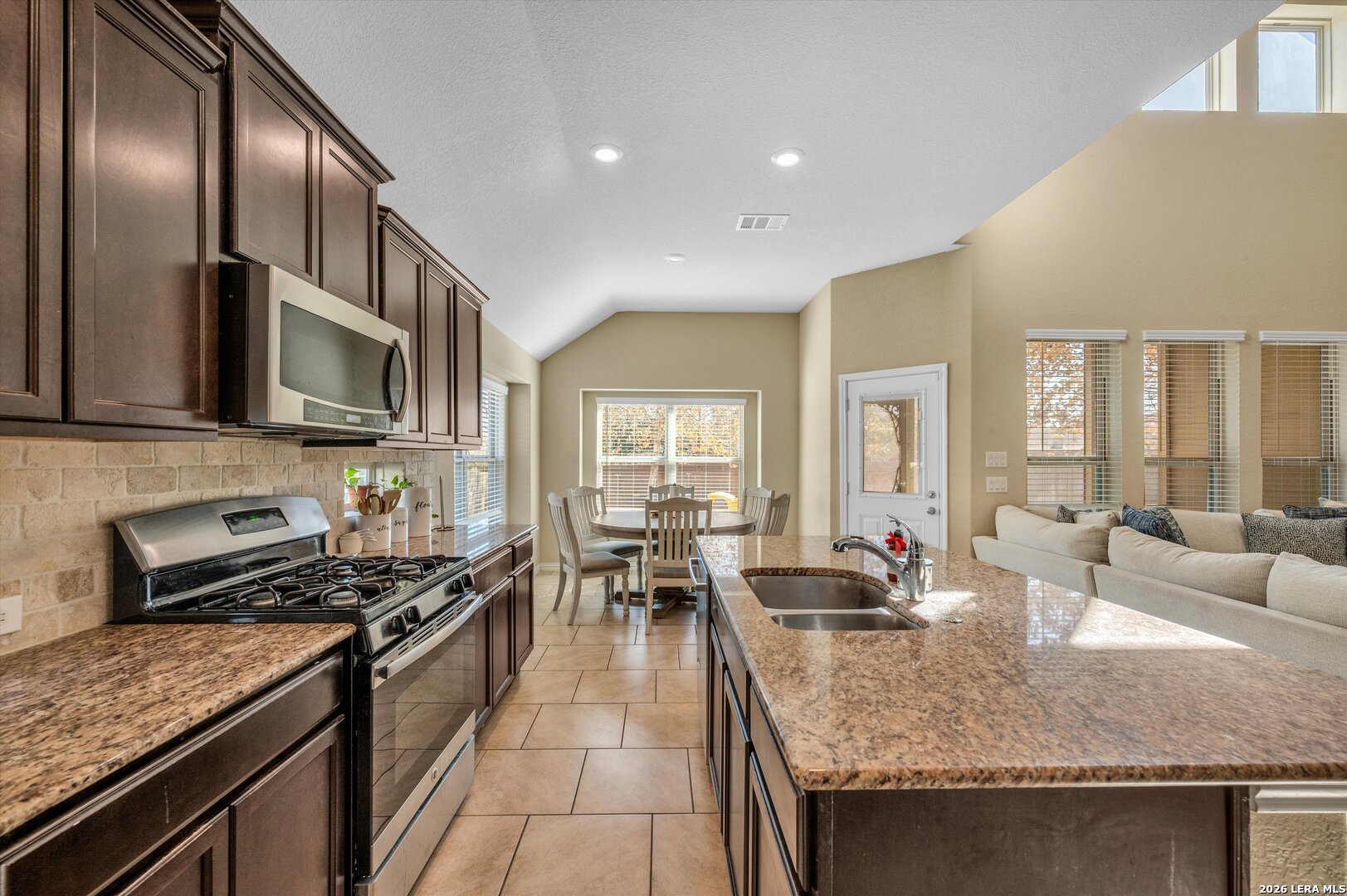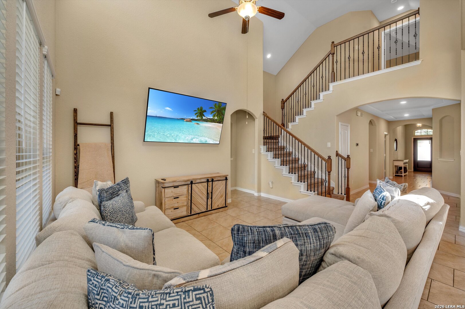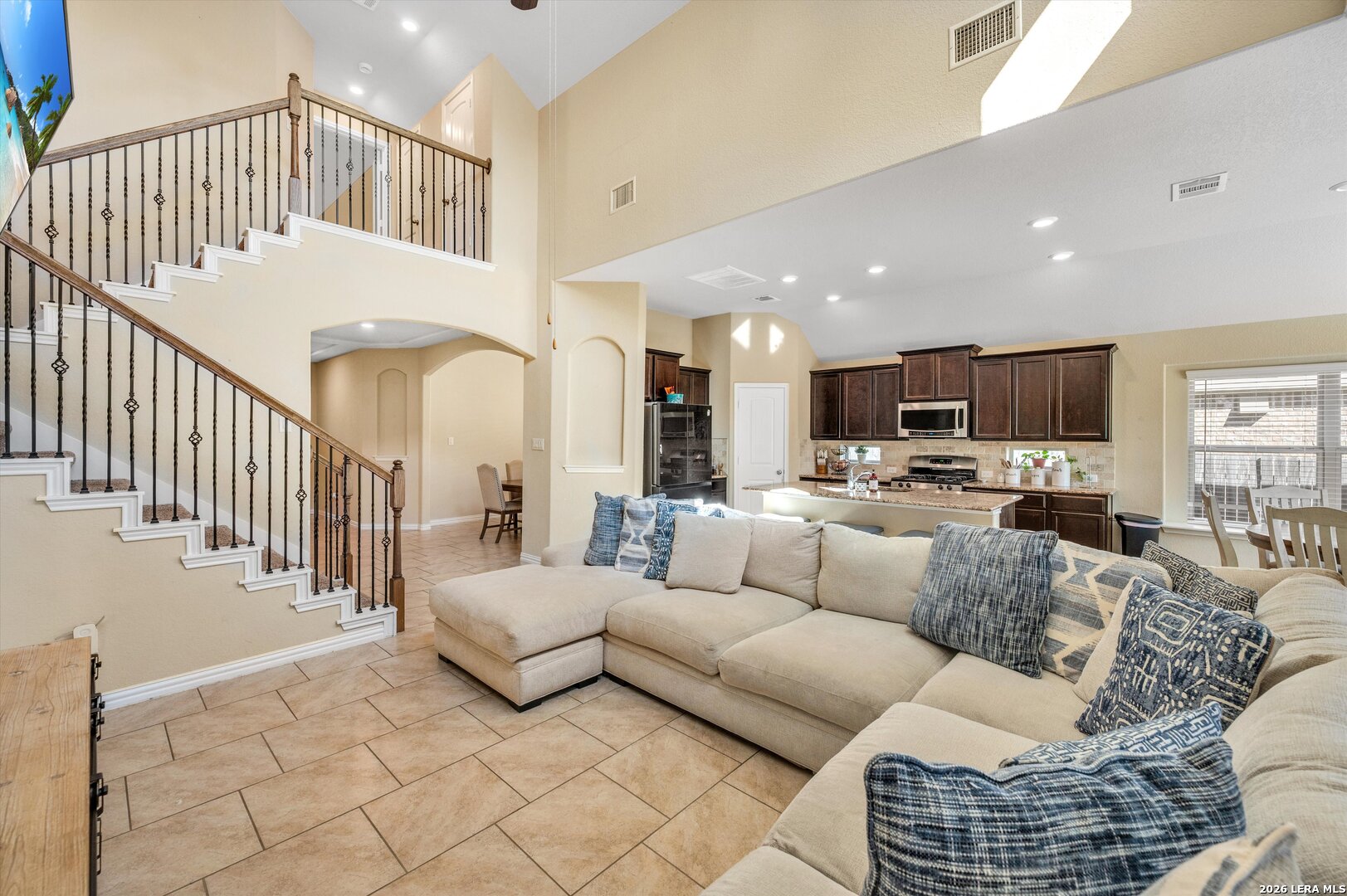 Welcome to 14434 Palomino Place, a beautifully designed 4-bedroom, 3.5-bathroom home located in the highly desirable Kallison Ranch neighborhood. Priced to sell at under $400,000, this charming 1.5-story residence boasts an impressive 25-foot ceiling in the living area, creating a bright and airy atmosphere perfect for relaxing or entertaining. This spacious home offers a thoughtfully laid-out floor plan that maximizes both comfort and functionality. The primary suite features an en-suite bathroom and ample closet space, while the additional bedrooms provide plenty of room for family, guests, or a home office. The Kallison Ranch community is rich in amenities, ensuring that residents can enjoy a vibrant lifestyle. From resort-style pools to playgrounds and scenic walking trails, there's no shortage of activities right at your doorstep. Families will appreciate the convenience of having schools within the neighborhood for easy drop-off and pick-up. Located in a prime area of San Antonio, this home combines convenience with a suburban feel. With nearby shopping, dining, and recreational options, you'll have everything you need just minutes away. Don't miss out on this incredible opportunity to own a beautiful home in one of San Antonio's most sought-after neighborhoods. Schedule a showing today to experience the charm and convenience of 14434 Palomino Place!