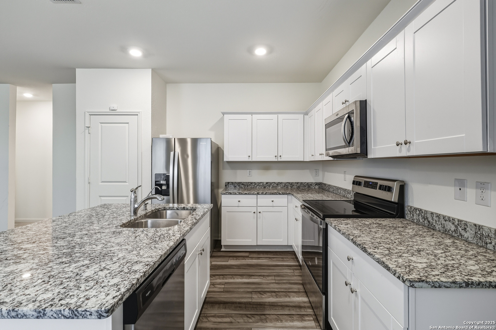 ***MOVE-IN SPECIAL: ONE WEEK FREE***Discover this inviting single-story residence in the desirable Trails at Culebra subdivision. Step inside to find unique luxury vinyl flooring in the entry and kitchen. The kitchen is a standout feature with a center island that includes bar-stool seating and ample workspace. This home comes equipped with essential appliances-including a refrigerator, washer, and dryer-for a smooth and convenient move-in. The primary bedroom serves as a comfortable retreat, complete with a spacious walk-in shower. Outside, enjoy a large and private backyard ideal for relaxation. With easy access to the Canyon State Natural Area, shops, dining, and major conveniences, this home offers both comfort and an exceptional location.
