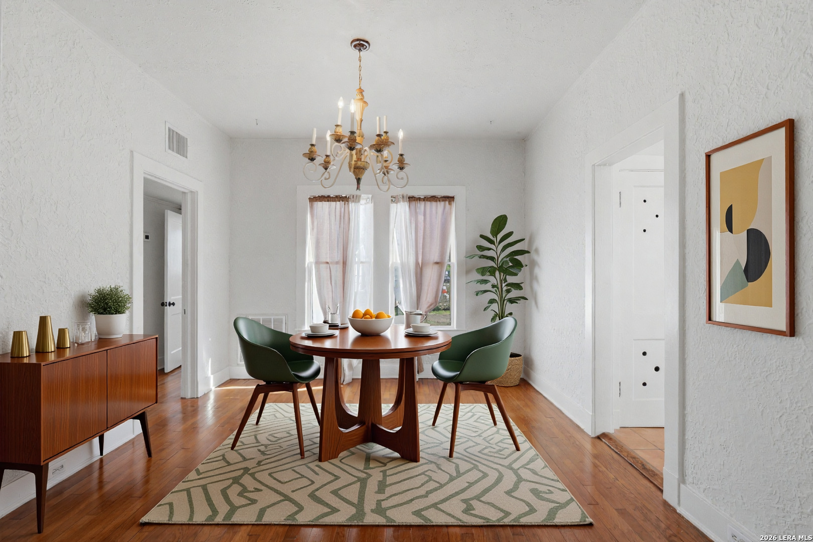 Welcome to 1446 Fulton Ave, the Architect's Home in the Historic Keystone Neighborhood. A beautifully designed 3 bedroom home intentionally restored from the ground up to full historical detail including the stucco exterior, Moroccan red roof tiles, and preserved wood framed windows. With almost 1,300 square feet of thoughtfully appointed living space, step inside to find the family room filled with abundant natural light through original windows, a fireplace, hardwood floors, and an absolutely stunning curved ceiling that is sure to impress. The living area flows seamlessly into a formal dining room opening up the space for gatherings. The kitchen maintains the character of the home built in the 1920's including a gas stove, range hood, abundant cabinets and additional breakfast seating. Three bedrooms enables flexibility for a family or a home office. The bathroom has been fully updated, as well. Outdoors, enjoy the large yard situated on a corner lot and a well-maintained backyard. The enclosed garage and an additional room for work space or a hobby room completes this appealing package. All this within minutes from downtown San Antonio, with major highway access to shopping, dining, The River Walk, The Pearl, and Historic Market Square. This property is beautifully maintained, move-in ready and offers the perfect balance of historic style, modern function, and location!