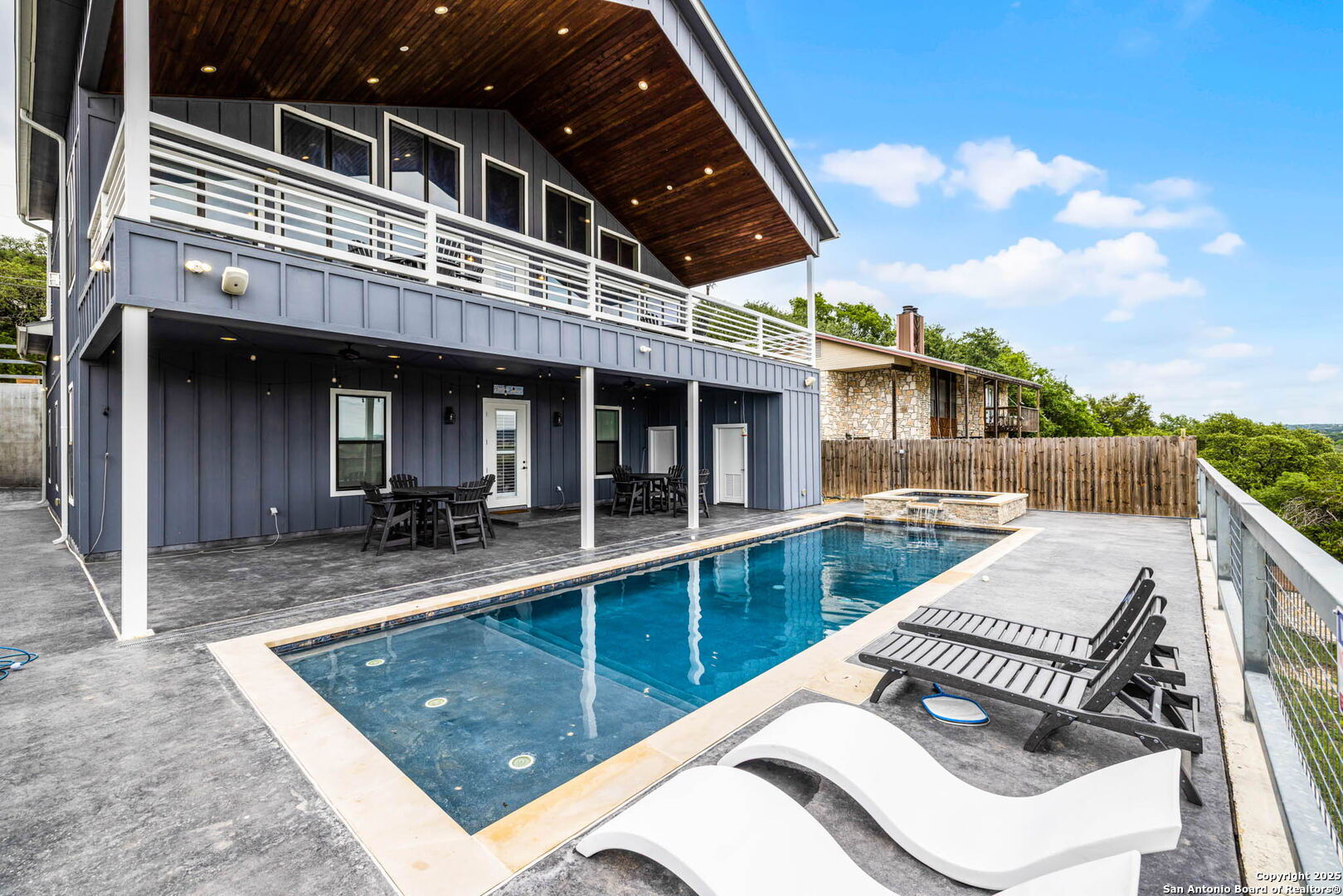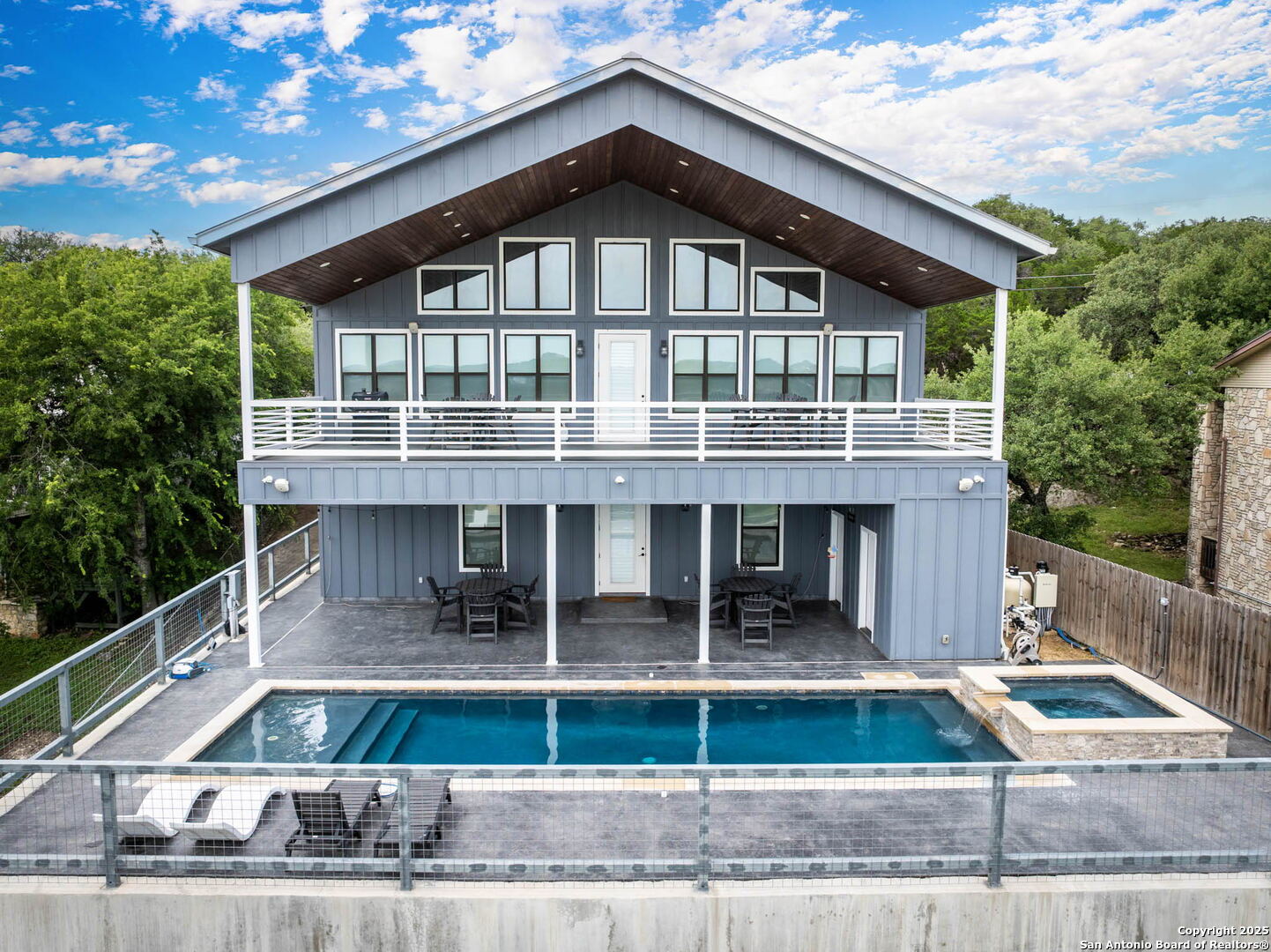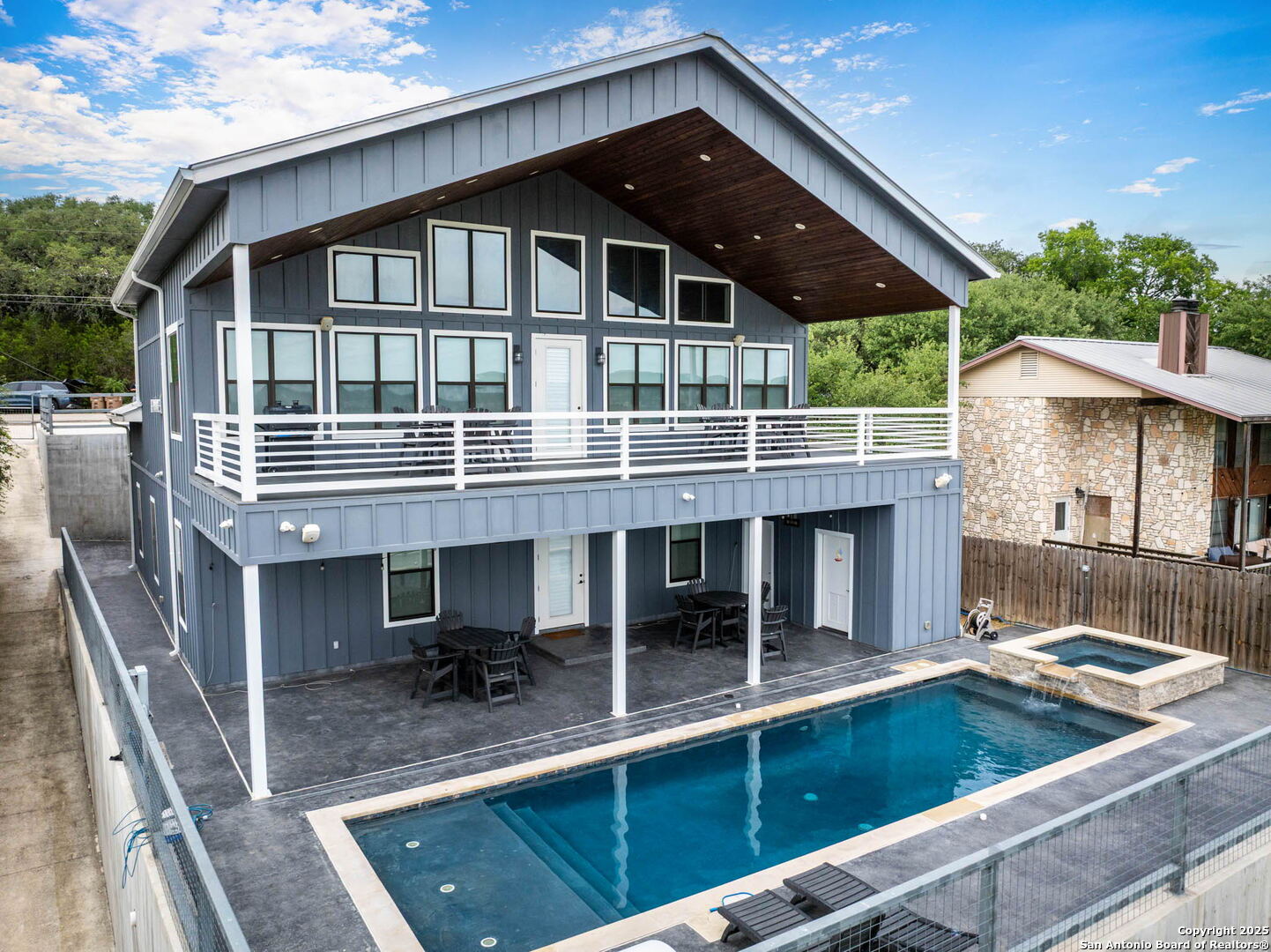 Lakeside Luxury Awaits at Canyon Lake - Sleeps 20+ | Pool * Hot Tub * Waterfront Lot. Welcome to your dream retreat on the sparkling shores of Canyon Lake, Texas! This stunning 6-bedroom, 6 full bathroom waterfront estate offers the perfect blend of luxury, comfort, and convenience-ideal for family reunions, group getaways, or unforgettable weekends with friends. Step inside and be wowed by the open-concept floor plan, where expansive lake views fill the living, dining, and kitchen areas with natural light. Cook up a feast in the chef-style kitchen, then gather around the spacious dining table or spill out onto the oversized patio for al fresco dining under the Hill Country stars. Sleep everyone comfortably with six beautifully appointed bedrooms, each with a private en-suite bath for ultimate privacy and convenience. Two bunk rooms offer fun and functional sleeping space for kids or extra guests-no one gets left out! The home also features three thoughtfully placed half baths, ensuring no one ever has to wait-whether you're hosting a crowd or just relaxing with family. Outside, your personal paradise awaits. Take a dip in the sparkling pool, soak your cares away in the hot tub, or stroll down to the water's edge and feel the breeze off Canyon Lake. Whether you're lounging poolside or enjoying s'mores around the firepit, every moment here feels like a vacation. Located just: 5 minutes to public boat ramp access, 10 minutes to Whitewater Amphitheater, A short drive to local restaurants and Brooks Brothers grocery store. Seller currently has a boat slip leased at the marina, so access to the lake is possible!!! Whether you're here for lake adventures, live music, or simply to relax in style, this home puts you in the heart of it all. Don't miss your chance to experience Hill Country lake life at its finest!