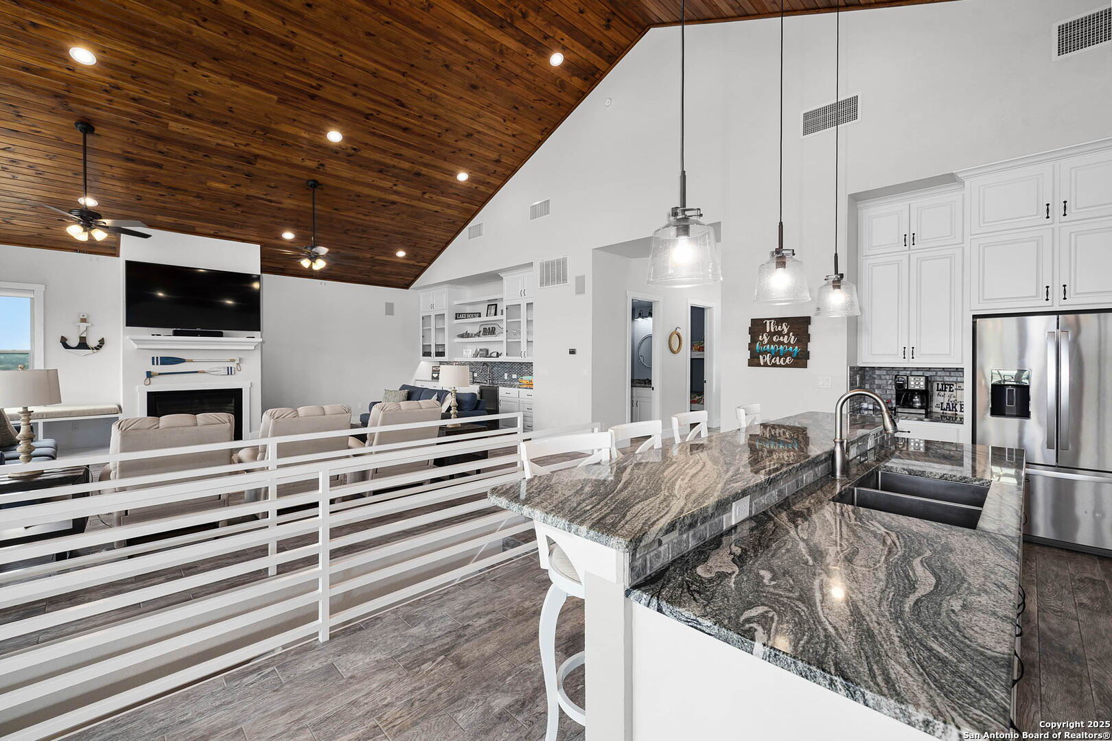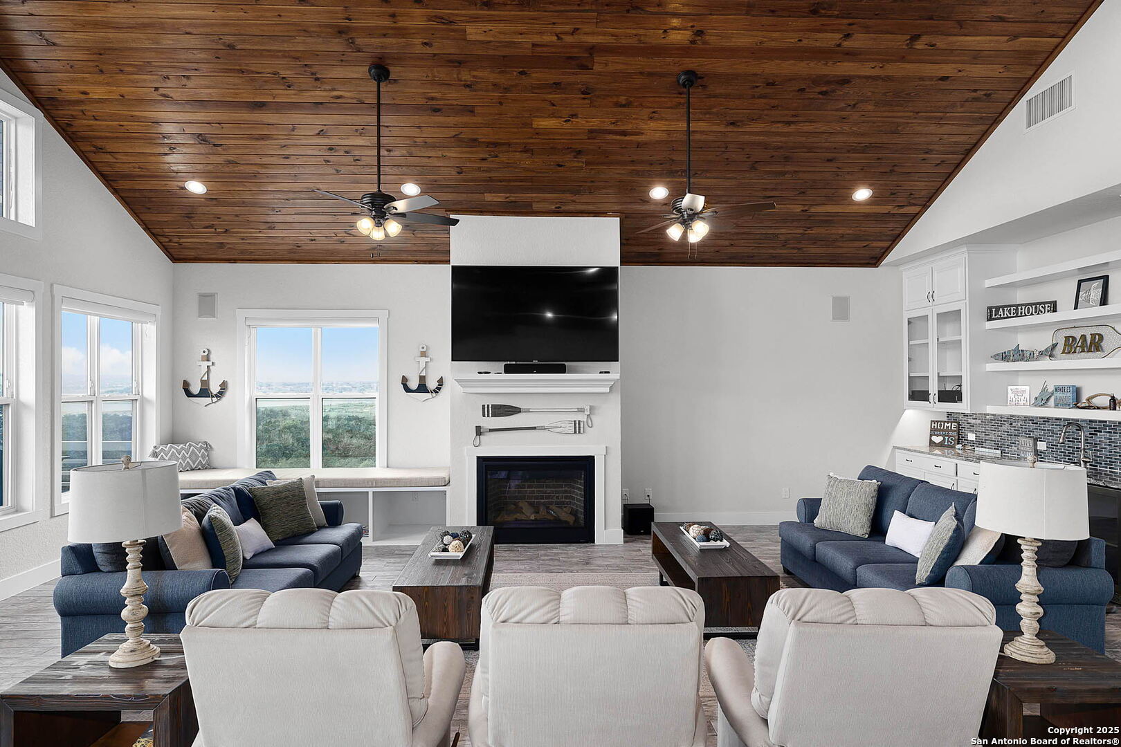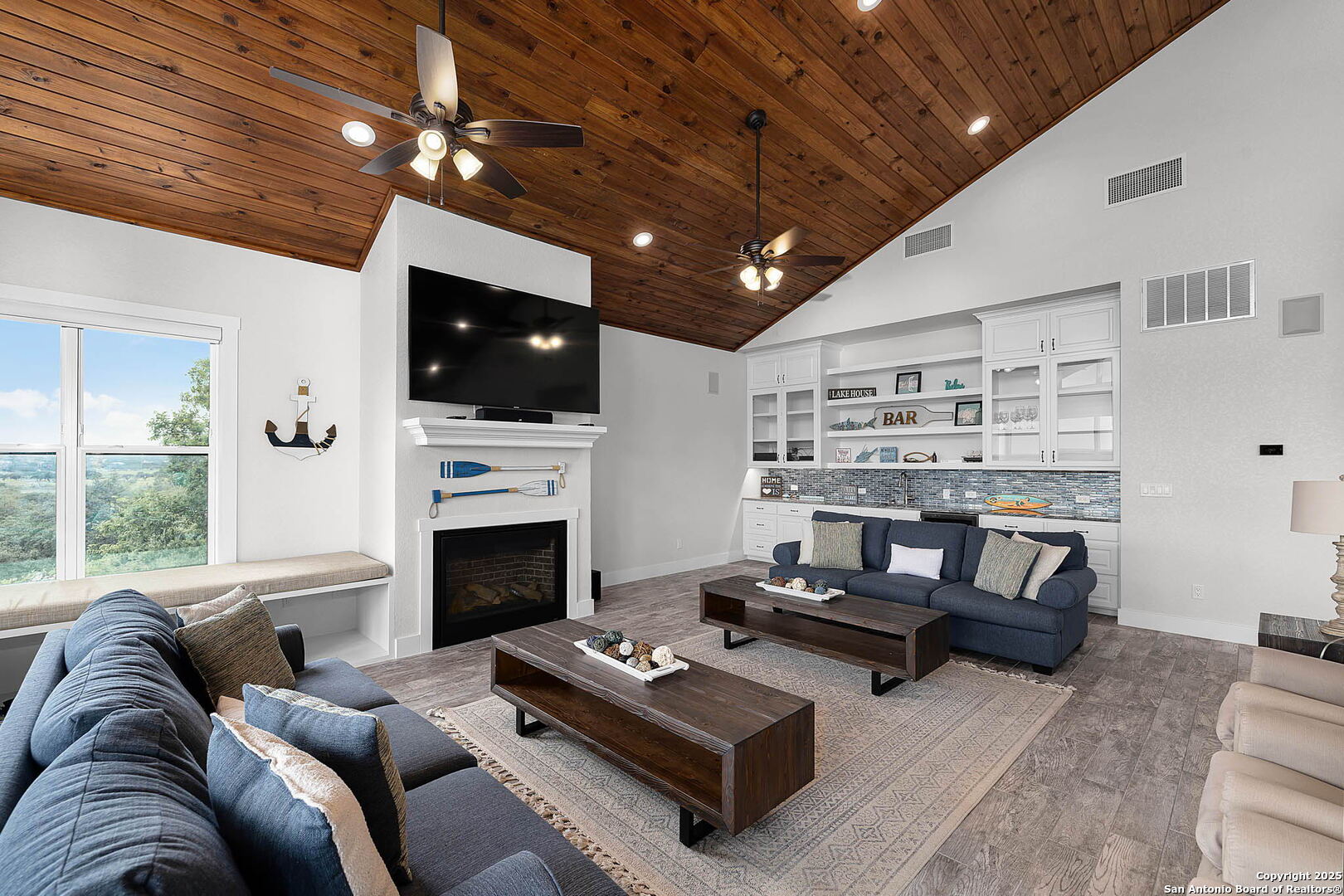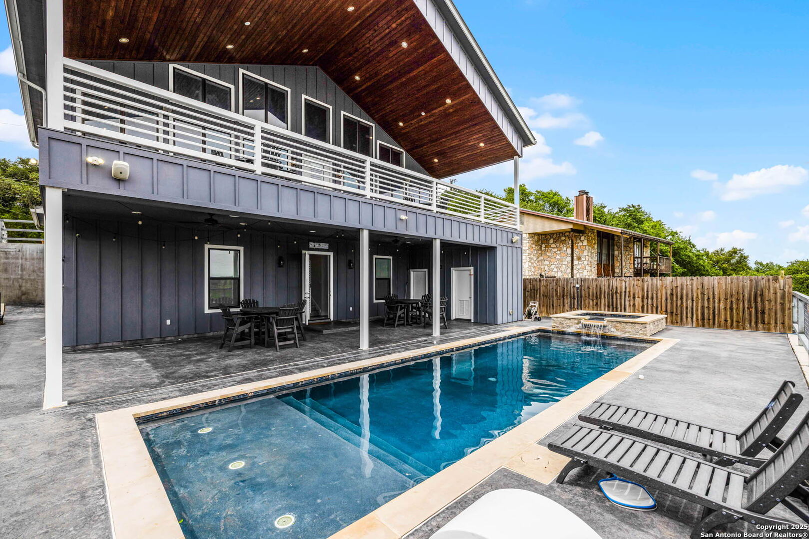 Lakeside Luxury Awaits at Canyon Lake - Sleeps 20+ | Pool * Hot Tub * Waterfront Lot. Welcome to your dream retreat on the sparkling shores of Canyon Lake, Texas! This stunning 6-bedroom, 6 full bathroom waterfront estate offers the perfect blend of luxury, comfort, and convenience-ideal for family reunions, group getaways, or unforgettable weekends with friends. Step inside and be wowed by the open-concept floor plan, where expansive lake views fill the living, dining, and kitchen areas with natural light. Cook up a feast in the chef-style kitchen, then gather around the spacious dining table or spill out onto the oversized patio for al fresco dining under the Hill Country stars. Sleep everyone comfortably with six beautifully appointed bedrooms, each with a private en-suite bath for ultimate privacy and convenience. Two bunk rooms offer fun and functional sleeping space for kids or extra guests-no one gets left out! The home also features three thoughtfully placed half baths, ensuring no one ever has to wait-whether you're hosting a crowd or just relaxing with family. Outside, your personal paradise awaits. Take a dip in the sparkling pool, soak your cares away in the hot tub, or stroll down to the water's edge and feel the breeze off Canyon Lake. Whether you're lounging poolside or enjoying s'mores around the firepit, every moment here feels like a vacation. Located just: 5 minutes to public boat ramp access, 10 minutes to Whitewater Amphitheater, A short drive to local restaurants and Brooks Brothers grocery store. Seller currently has a boat slip leased at the marina, so access to the lake is possible!!! Whether you're here for lake adventures, live music, or simply to relax in style, this home puts you in the heart of it all. Don't miss your chance to experience Hill Country lake life at its finest!