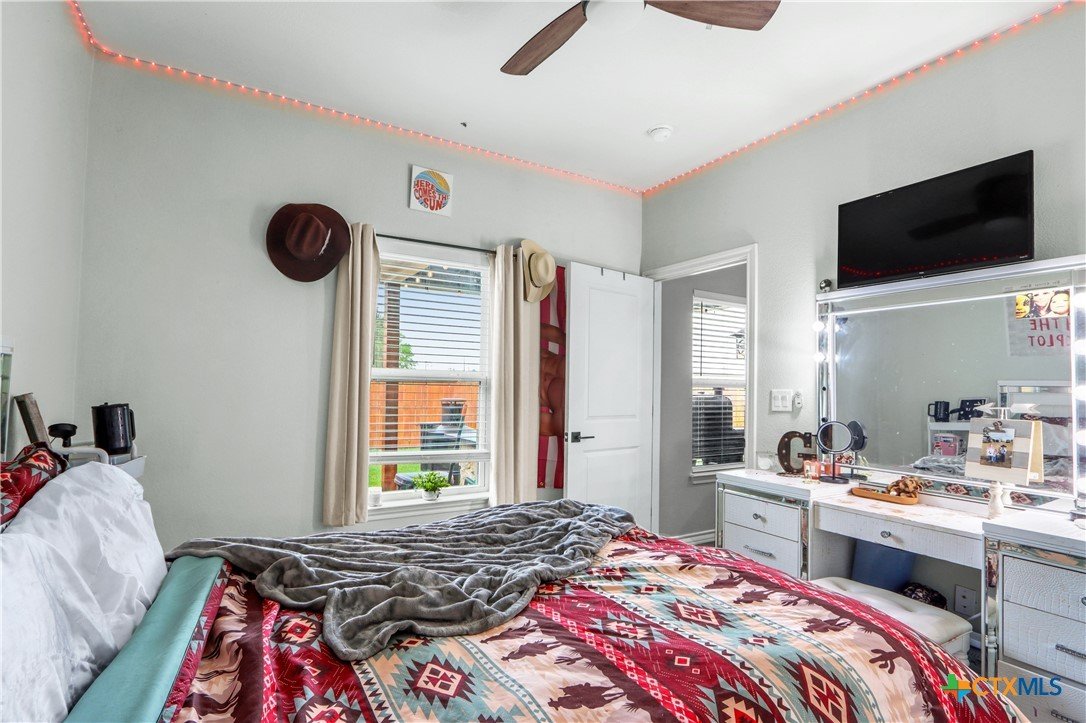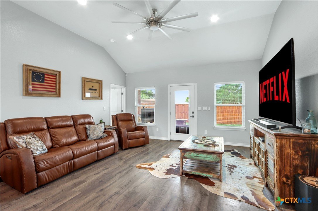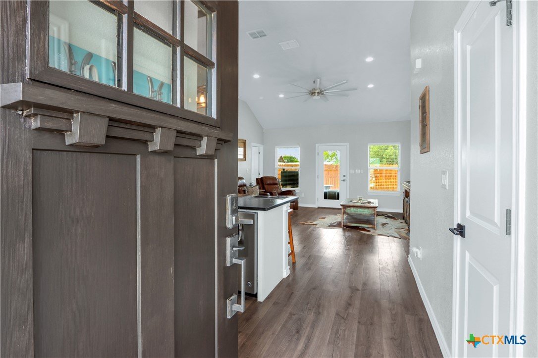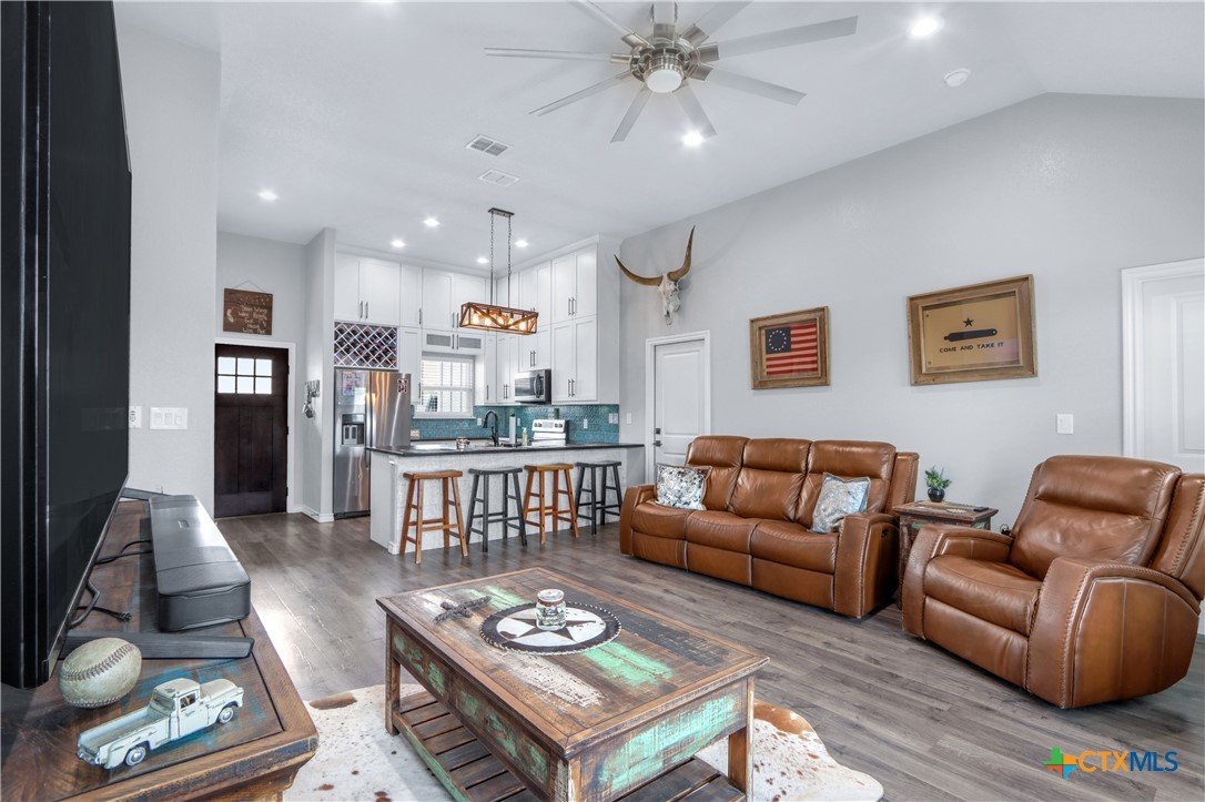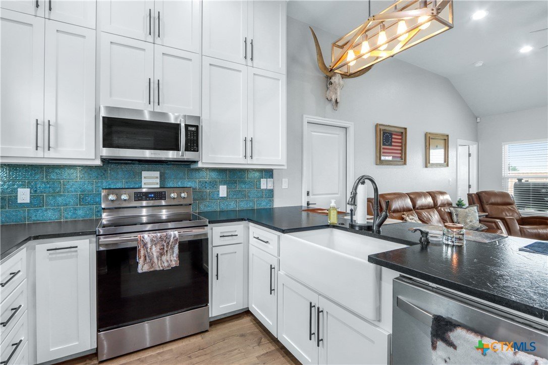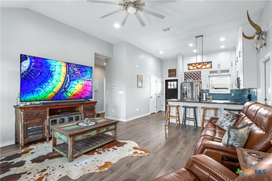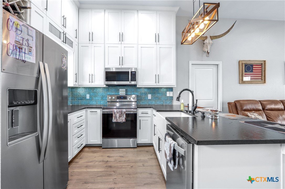 Modern Living in this upgraded 3 Bedroom 2 Bathroom Condo with exterior maintenance and lawn care provided by HOA. It features several custom finishes! Upgraded cabinets all the way to the ceiling, wood style tile flooring, ceiling fans, custom tile work in primary bedroom on interior wall and both bathrooms have custom tile work baths. Granite countertops and open Kitchen/Living Room design. The backyard is ready for entertaining with oversize covered patio, outdoor kitchen area, privacy fencing.