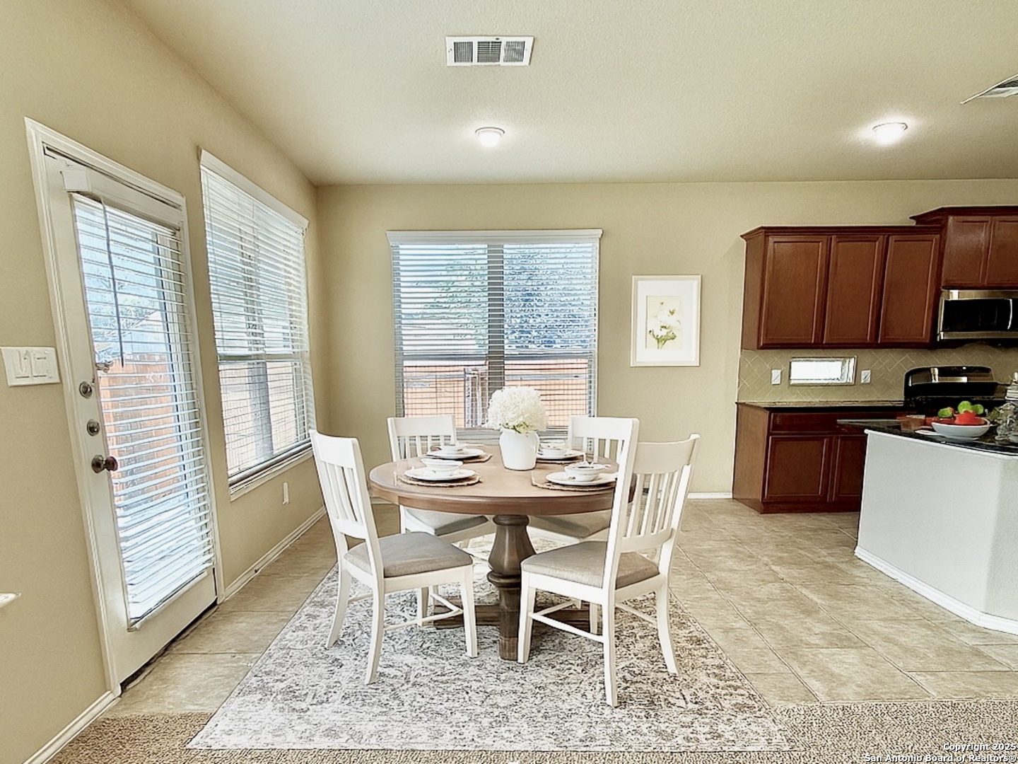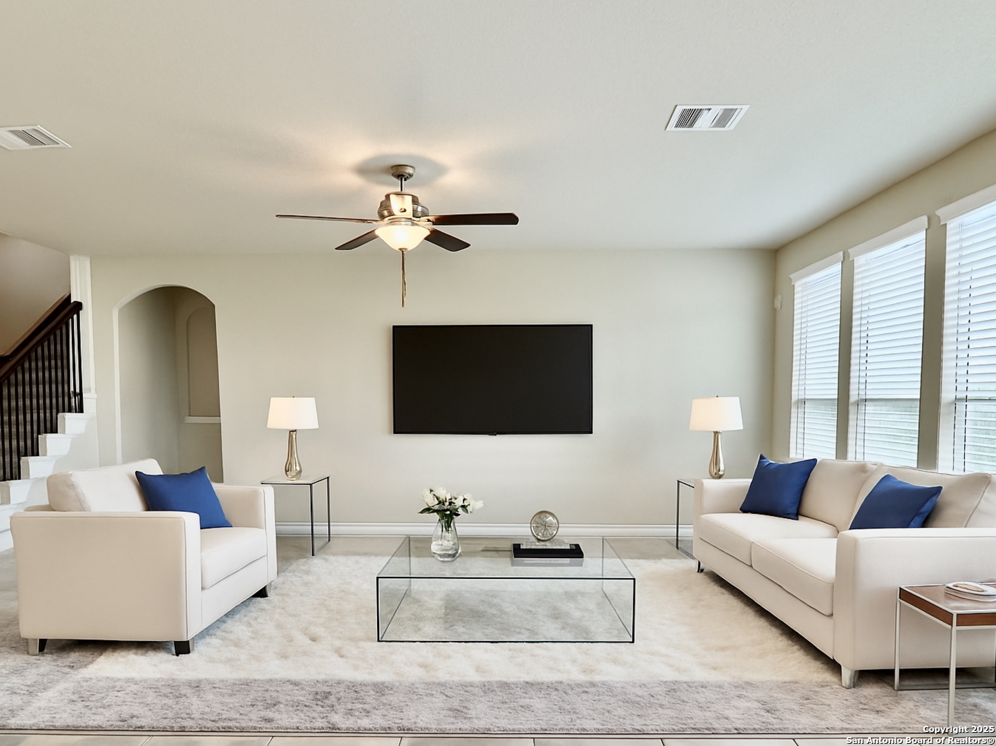 Searching for a larger home with lots of space at the right price? You just found it! **$10K seller credit, 3.5 VA loan assumption, motivated seller, so share your best offer!** On a large corner lot, welcome home to gorgeous high ceiling entry/foyer, arched entryways, large kitchen with lots of granite countertop space and substantial 36" kitchen cabinets, with molding. Tiled backsplash, recessed lighting, walk-in pantry and under sink Reverse Osmosis system joined by 2-unit water softener in garage. Refrigerator, dishwasher, gas range, and over the range microwave/hood included. Kitchen nook and a breakfast bar opens to the first living area. Large front porch and backyard with covered patio. Stained fences and flower garden in the front. Open second living area upstairs with vast views of neighborhood and lot of natural lighting. Primary suite with walk-in closet and an extra half-bath for guest near enty. Tile in all wet areas on first and second floors, and easy to care laminate wood in the study. A very energy-efficient home with ceiling fans in every room. Walking distance to pools, playgrounds, walking and bike trails, dog park and fishing pond nearby. Visit Today!