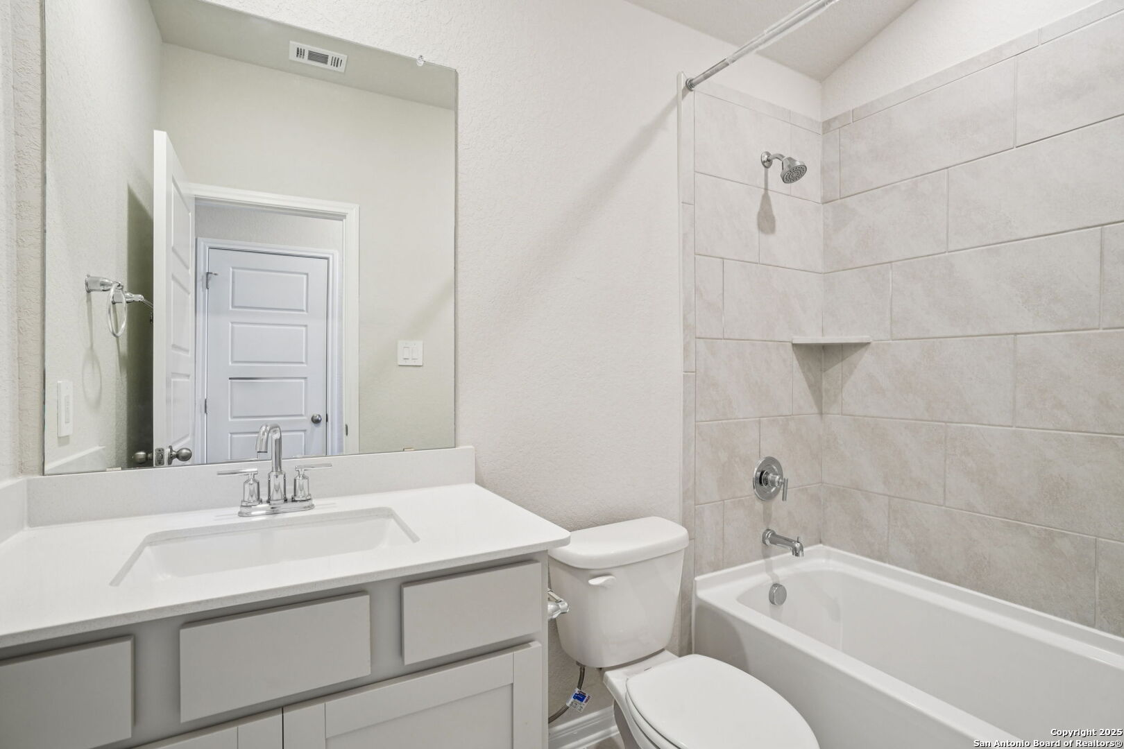 Brand new, energy-efficient home available by Dec 2025! The Callaghan's welcoming covered entry and foyer open to a stunning living room and gourmet kitchen. The walk-in pantry can accommodate everyone's favorite snacks. The fourth bedroom is perfect for guests, or even a study or hobby room. Starting in the $300s, Kallison Ranch is a vibrant community off Culebra Road in Northwest San Antonio, with easy access to Highway Loop 1604 and Highway 151. Residents enjoy a resort-style pool, lounge area, playgrounds, fishing pond, and dog park. The community has an onsite elementary school and is near Harlan High School. With a prime location, great amenities, and Move-In Ready homes, Kallison Ranch is a fantastic place to call home. Each of our homes is built with innovative, energy-efficient features designed to help you enjoy more savings, better health, real comfort and peace of mind. Photos are of similar model but not that of exact house. Pictures, photographs, colors, features, and sizes are for illustration purposes only and will vary from the homes as built.