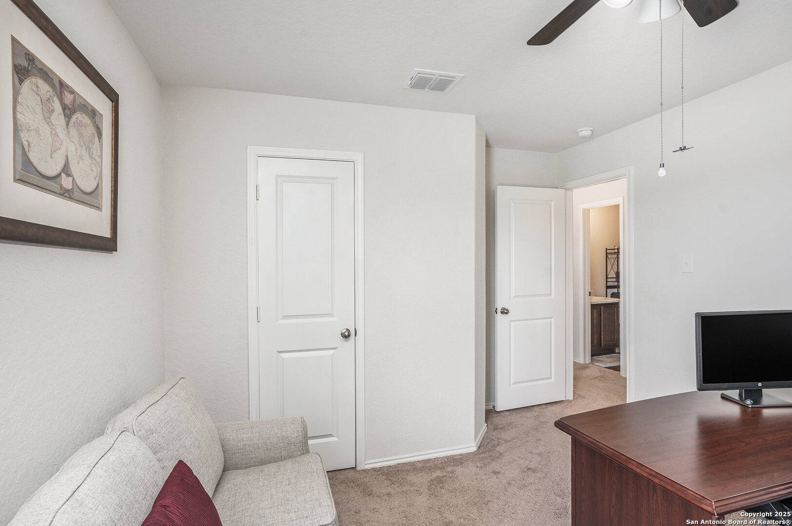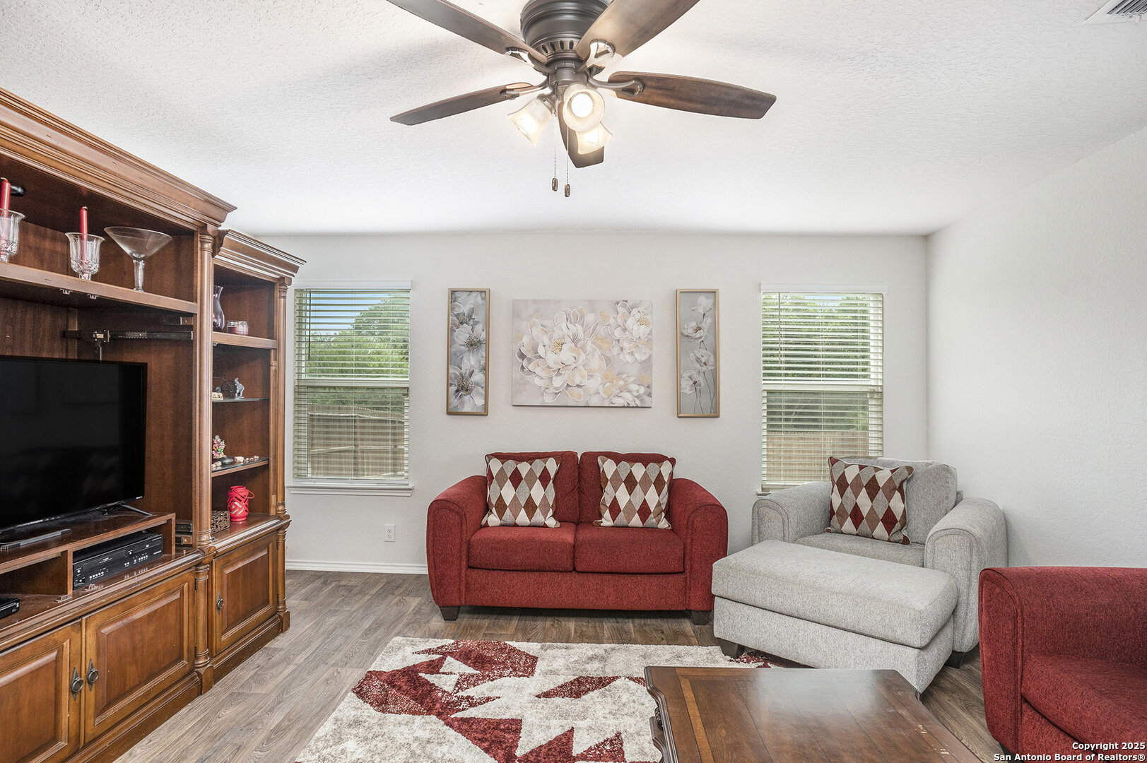 Discover this beautiful 2-story DR Horton home for sale in San Antonio, featuring 4 spacious bedrooms and 2.5 bathrooms on a premium greenbelt lot with no rear or side neighbors-offering rare privacy and views. This move-in ready home boasts an open-concept floor plan with seamless flow between the kitchen, dining, and living areas-perfect for entertaining. The sunlit primary suite provides a peaceful retreat. Enjoy upgraded features like ceiling fans in all bedrooms, living room, loft, and back porch, a water softener with reverse osmosis, security system with window and motion sensors, and a garage door opener. Located in highly sought-after Redbird Ranch, residents enjoy resort-style amenities including pools, clubhouse, tennis courts, playgrounds, sports court, and scenic jogging trails. This well-maintained home is a must-see-schedule your private showing today and experience one of the best values in West San Antonio real estate!
