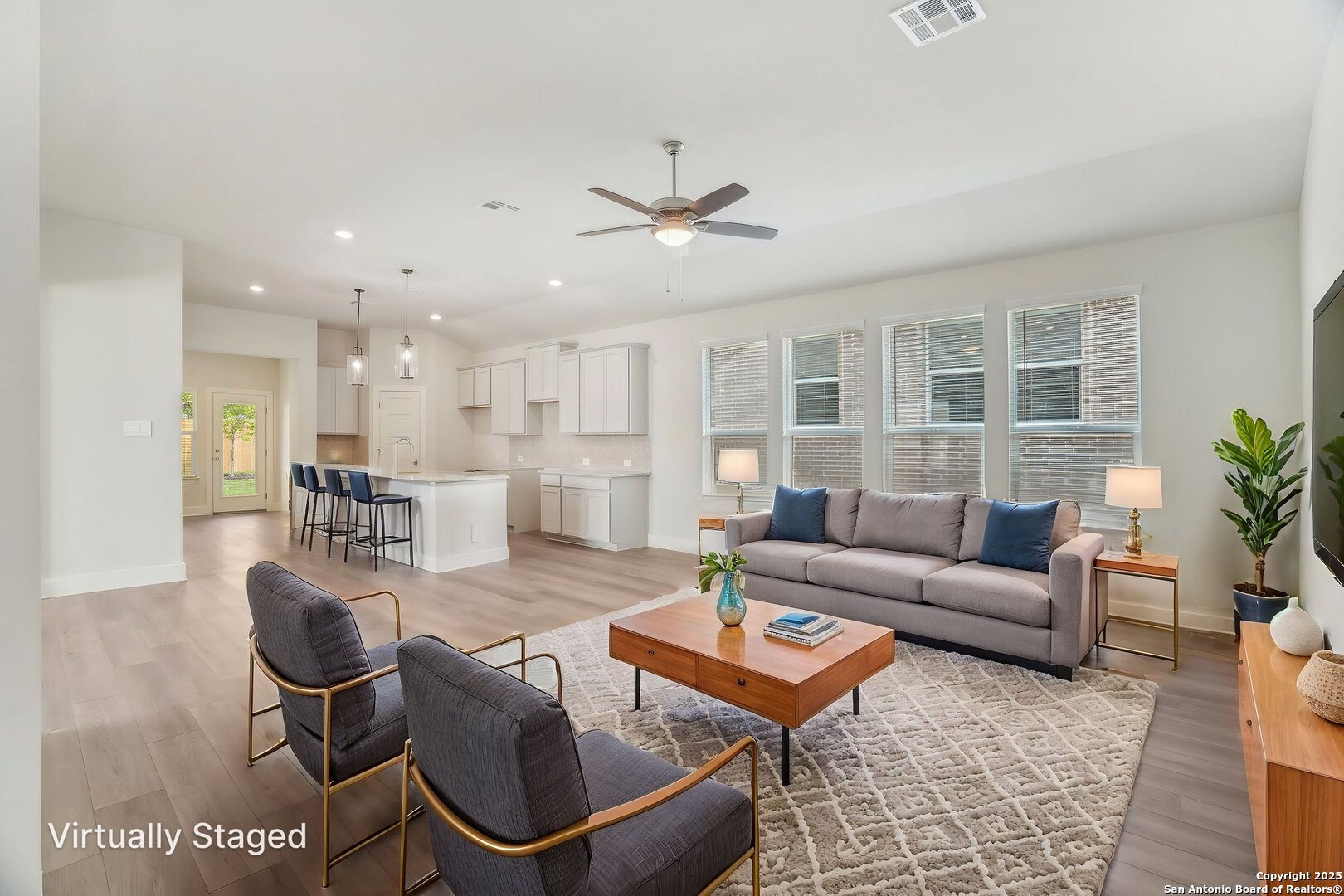 Brand new, energy-efficient home available NOW! The Rio Grande's sprawling single-story layout features a bright, open concept living area, dining space, and kitchen. The primary suite boasts a sizeable walk-in closet and dual sinks. Starting in the $300s, Thomas Pond offers something for everyone. With over 300 homesites, this community provides convenient access to Loop 1604 and a variety of shopping and dining favorites. Located less than 30 minutes from Joint Base Lackland, it offers the perfect blend of city convenience and Hill Country charm, where you can enjoy stunning Texas starry nights. With Move-In Ready homes. Each of our homes is built with innovative, energy-efficient features designed to help you enjoy more savings, better health, real comfort and peace of mind.
