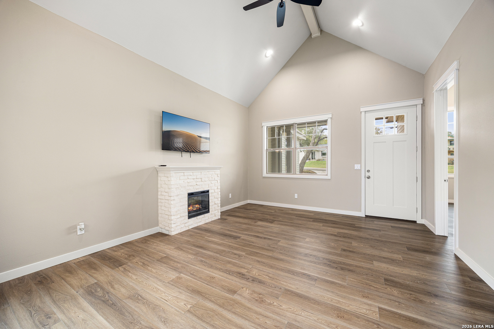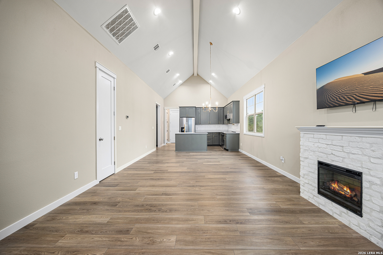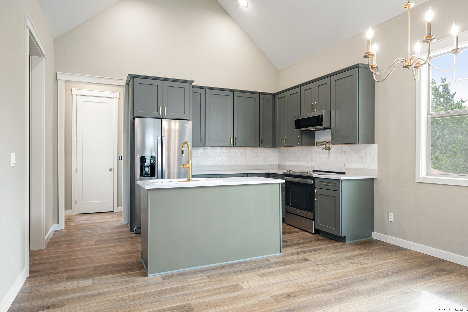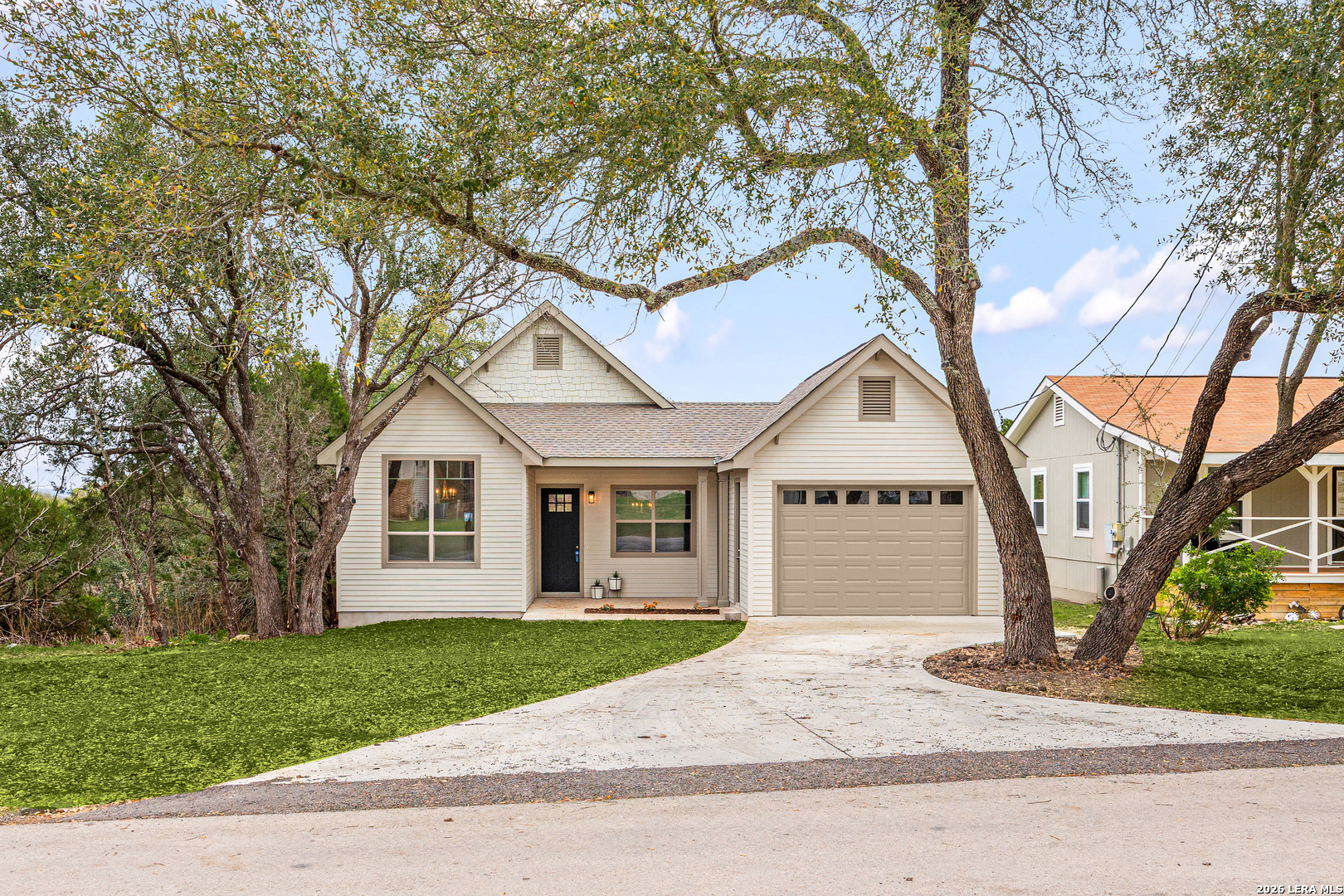 Experience high-end living at an attainable price in this brand-new 3 bedroom + loft home, thoughtfully designed with premium materials and a modern layout. With 1,217 sq. ft. of main living space and an additional 87 sq. ft. loft, this home offers luxury finishes in a low-maintenance footprint. The open-concept floor plan features soaring 14' ceilings, Pella windows, recessed lighting, and high-end LVP flooring throughout. The kitchen is a standout with quartz countertops, custom cabinetry, Moen faucets, a pot filler, and top-tier appliances-including a high-end stove, microwave and dishwasher. Both bedrooms are well-appointed, and the loft (accessed by a custom retractable ladder) adds flexible space for an office, reading nook, or guest area. The spa-style bathroom includes a Schluter waterproofing system, one-piece toilets, and space-saving pocket doors. Built to last with heavy-duty framing, Trane HVAC, GAF shingles, Hardie siding, and Sherwin Williams Rain Refresh and Emerald paints for a lasting finish. Enjoy outdoor living on your 14' x 12' covered deck with views of the scenic Hill Country. Upscale living, smart design, and modern comfort-this Canyon Lake home proves you don't have to sacrifice quality for value.Book your personal tour today!