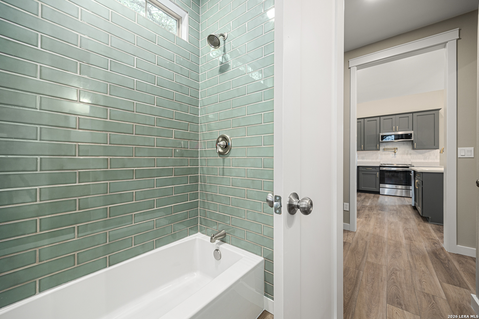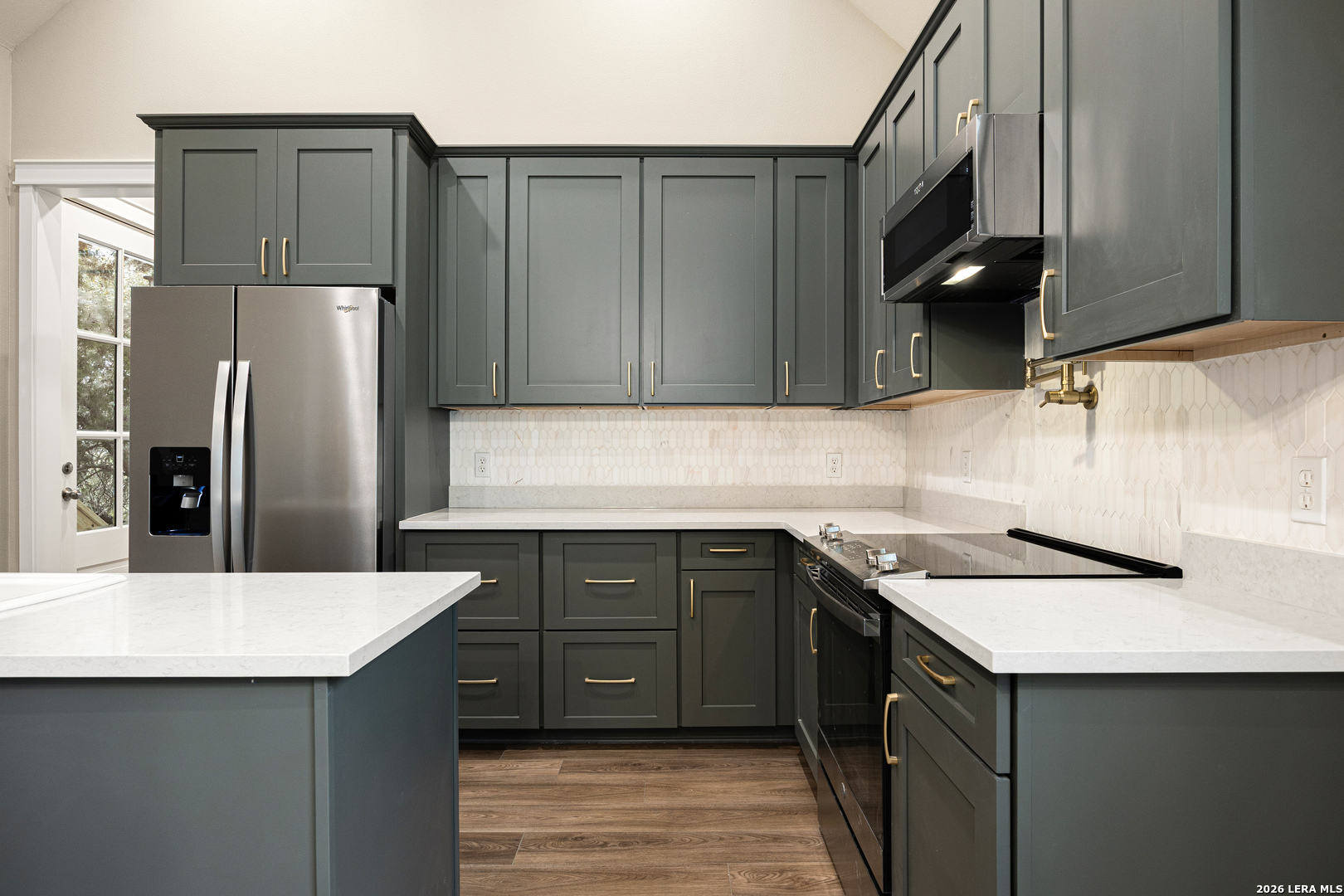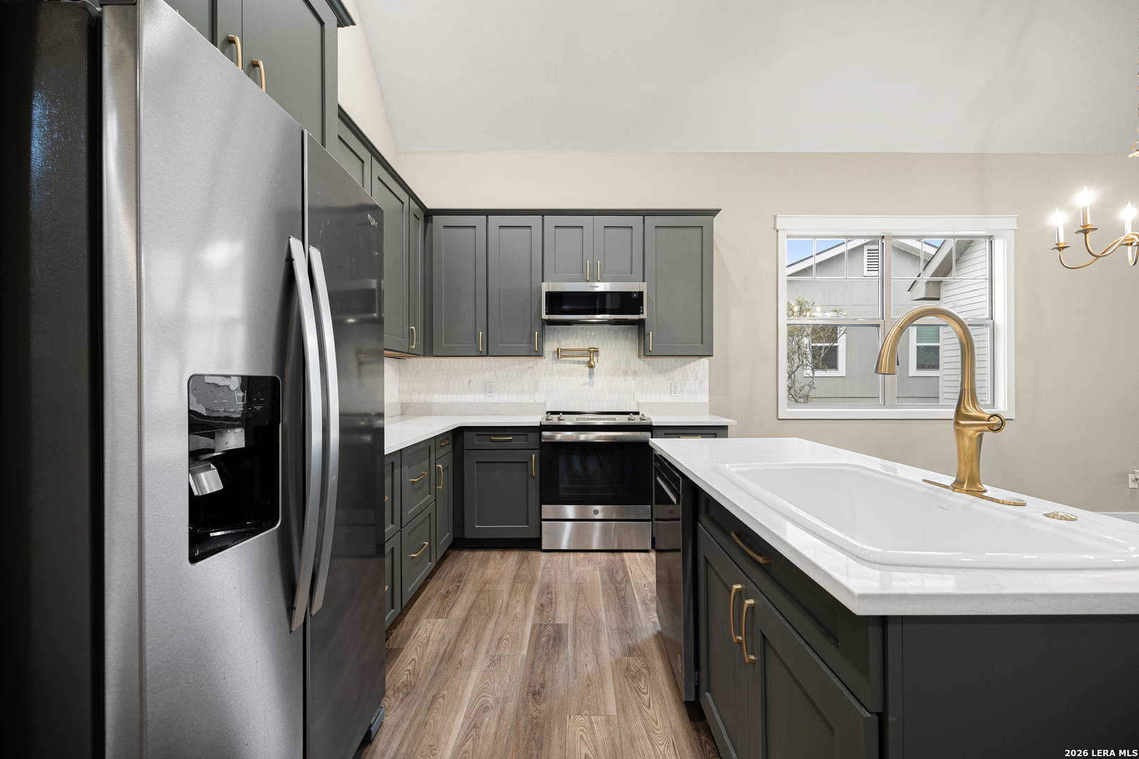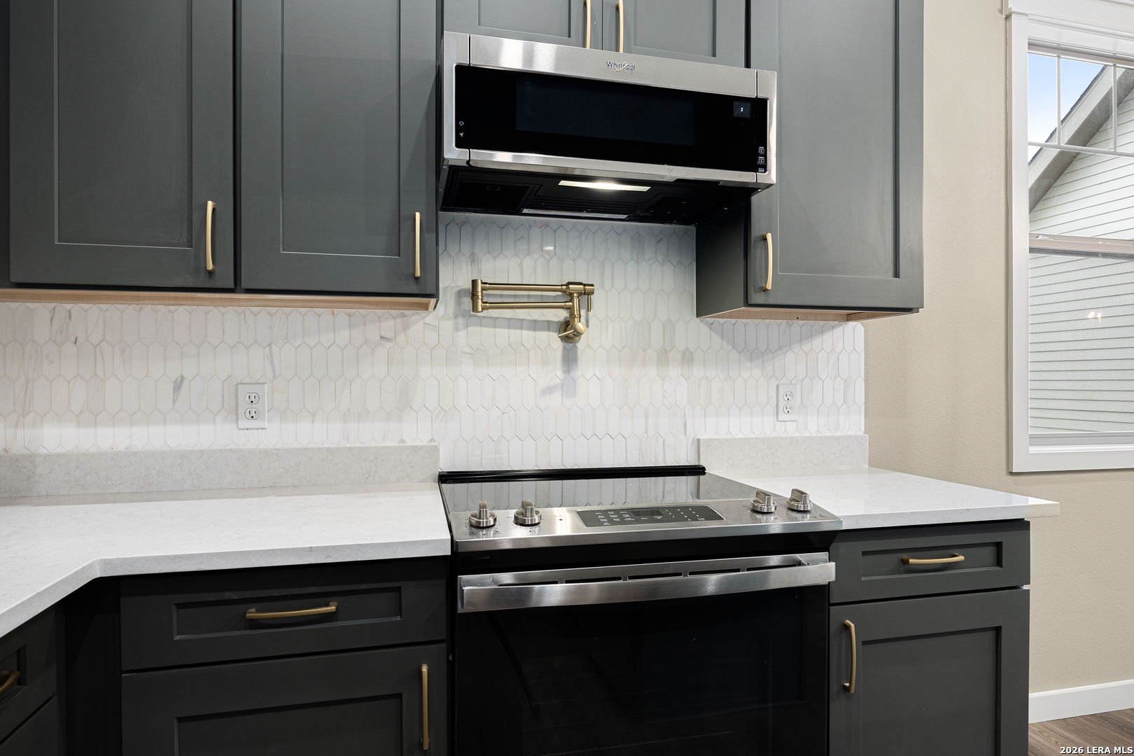 Experience high-end living at an attainable price in this brand-new 3 bedroom + loft home, thoughtfully designed with premium materials and a modern layout. With 1,217 sq. ft. of main living space and an additional 87 sq. ft. loft, this home offers luxury finishes in a low-maintenance footprint. The open-concept floor plan features soaring 14' ceilings, Pella windows, recessed lighting, and high-end LVP flooring throughout. The kitchen is a standout with quartz countertops, custom cabinetry, Moen faucets, a pot filler, and top-tier appliances-including a high-end stove, microwave and dishwasher. Both bedrooms are well-appointed, and the loft (accessed by a custom retractable ladder) adds flexible space for an office, reading nook, or guest area. The spa-style bathroom includes a Schluter waterproofing system, one-piece toilets, and space-saving pocket doors. Built to last with heavy-duty framing, Trane HVAC, GAF shingles, Hardie siding, and Sherwin Williams Rain Refresh and Emerald paints for a lasting finish. Enjoy outdoor living on your 14' x 12' covered deck with views of the scenic Hill Country. Upscale living, smart design, and modern comfort-this Canyon Lake home proves you don't have to sacrifice quality for value.Book your personal tour today!