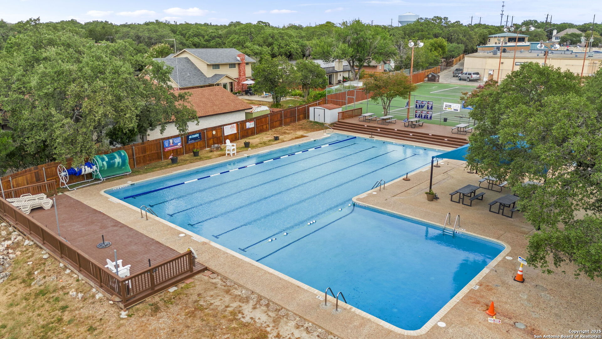 Discover the potential of this 3-bedroom, 2-bath home, perfectly situated in the desirable Woods of Shavano neighborhood. With quick access to both Loop 1604 and I-10, you'll enjoy the best of convenience and serenity. Step inside and be greeted by a spacious living room with a vaulted ceiling and a stunning floor-to-ceiling brick, wood-burning fireplace-perfect for cozy evenings. Sunlight pours in through large windows, creating a warm and inviting atmosphere throughout. The functional layout includes three generously sized bedrooms, offering comfort and versatility. Outside, the backyard boasts a charming deck, shaded by mature trees-ideal for outdoor gatherings or peaceful mornings with your coffee. This home is brimming with potential, waiting for your personal touch to make it uniquely yours.
