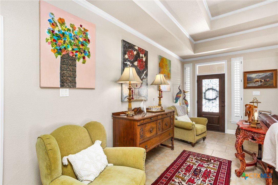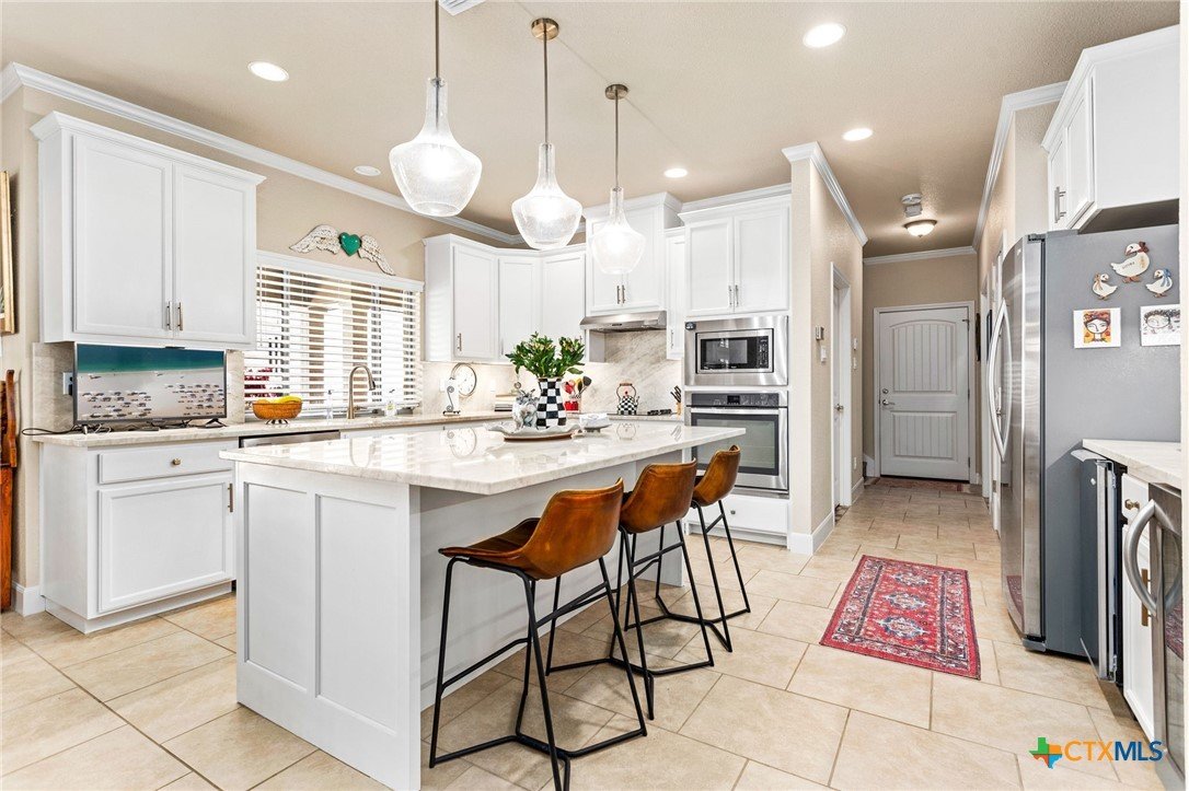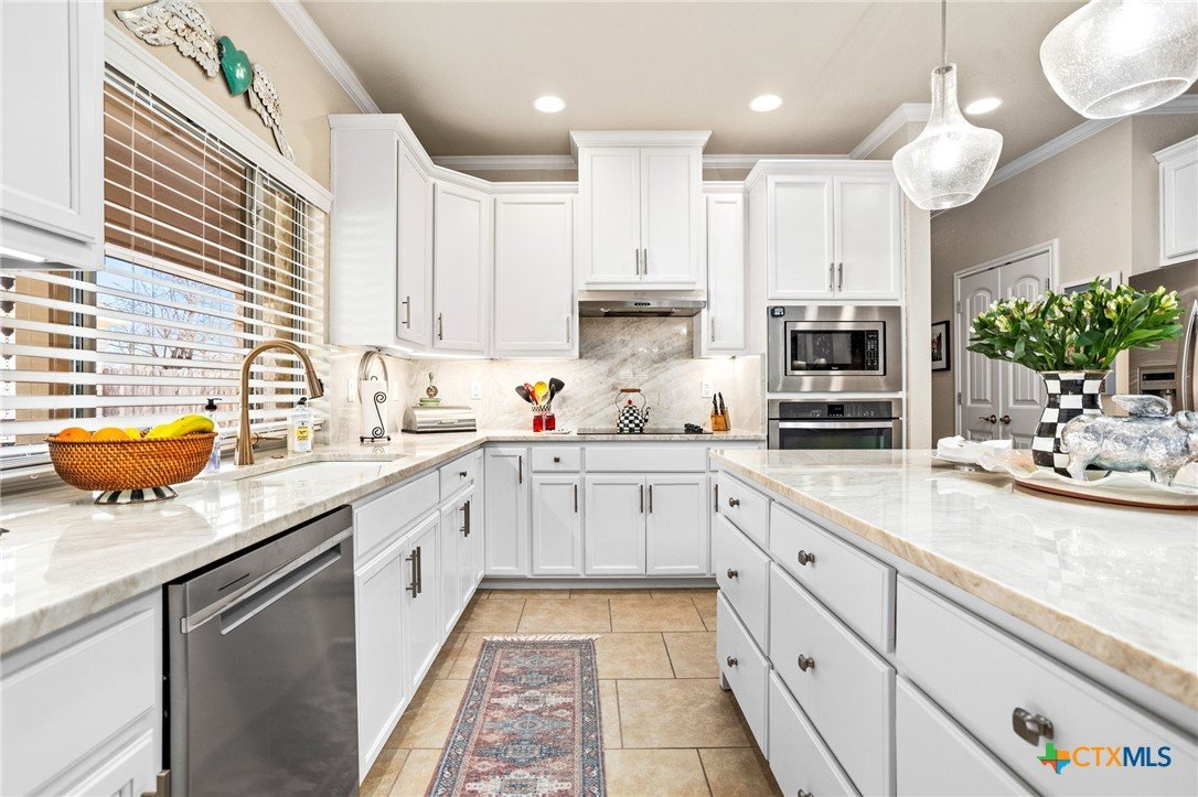 REDUCED TO $699,000….1458 Janets Way, New Braunfels, Texas 78130… a hop, step & jump from historic Gruene, Texas! This remarkable 4 bedroom, 3 bathroom, 2 car garage, Austin-stone home located in a stonesthrow distance to “Gruene’s Hall”, quaint shops, charming restaurants, live entertainment, and the Comal River. This spectacular home main features include an “Open Living Concept”, luxury tray-ceilings with crown molding & recessed lights, plantation shutters, and wrap-around porch to enjoy the nature, gardening and/or relaxing. Breathtaking Kitchen includes gigantic island, Window sink, electric cook-top , single oven, microwave, ice-maker, wine fridge, pantry, and luxury white-cabinets. Upstairs is an enormous room with a bathroom, great for guest or home office. Primary Suite includes bathtub, separate shower, two vanities private commode, & walk-in closet. Watch the YouTube video and call the listing agent for more information.